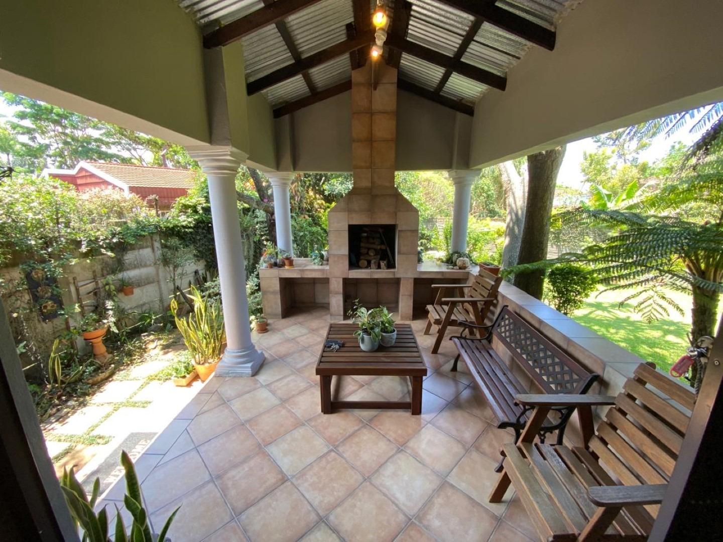 This charming property features a spacious 3-bedroom, 2-bathroom main house, with the master bedroom boasting an en-suite bathroom. The living room/lounge is generously sized and opens onto a patio equipped with a built-in braai, perfect for entertaining. The lovely garden offers ample space for children and pets to play. Additionally, the property includes a separate 2-bedroom, 2-bathroom garden cottage, each bedroom with its own en-suite. The cottage has an open-plan kitchen and living area that also opens to a patio with a built-in braai. Both the main house and the cottage have pre-paid electricity, and the property is complete with a double garage and fiber connection.