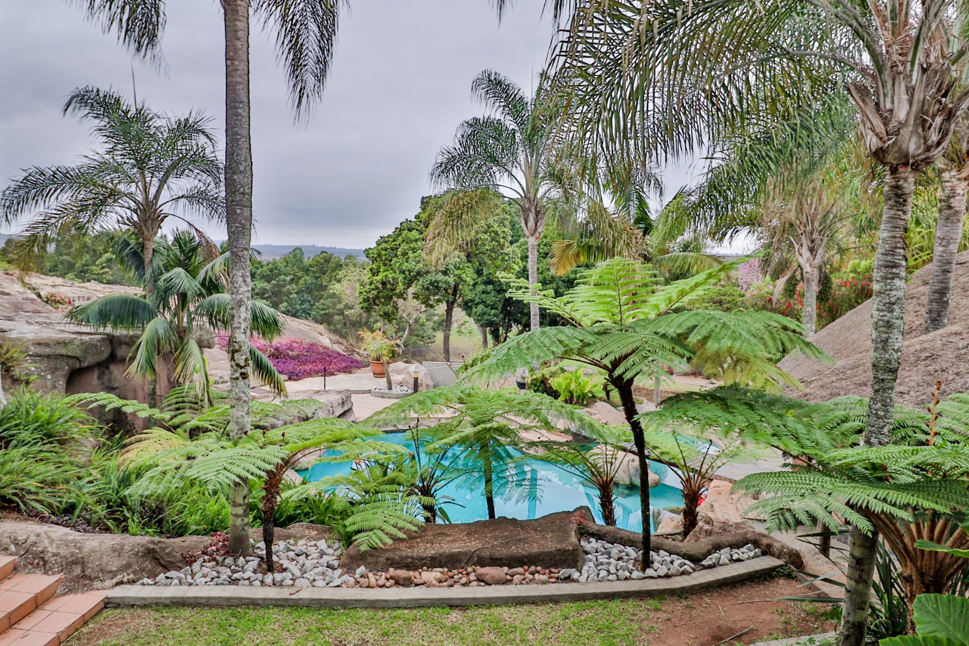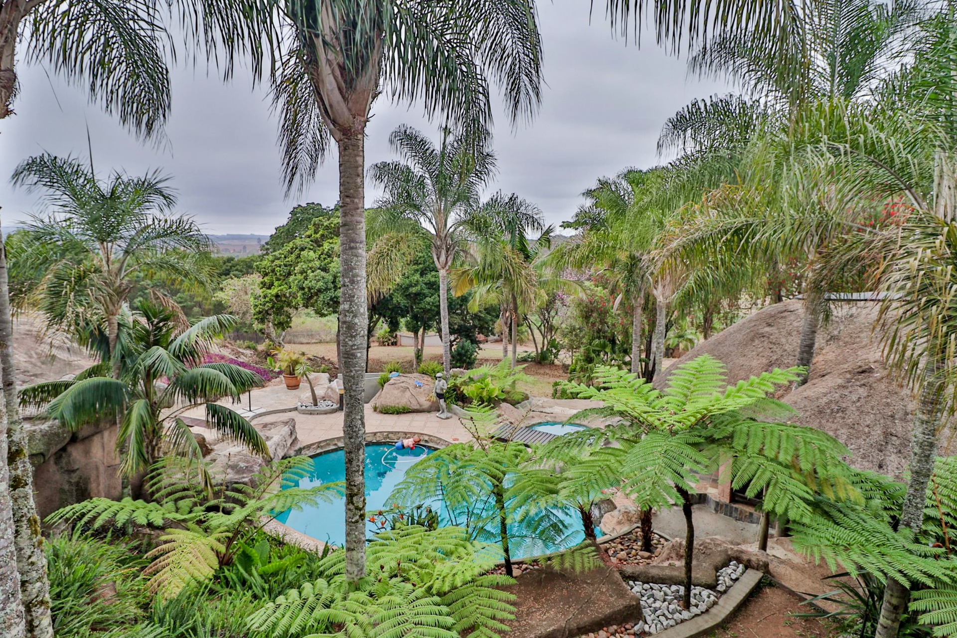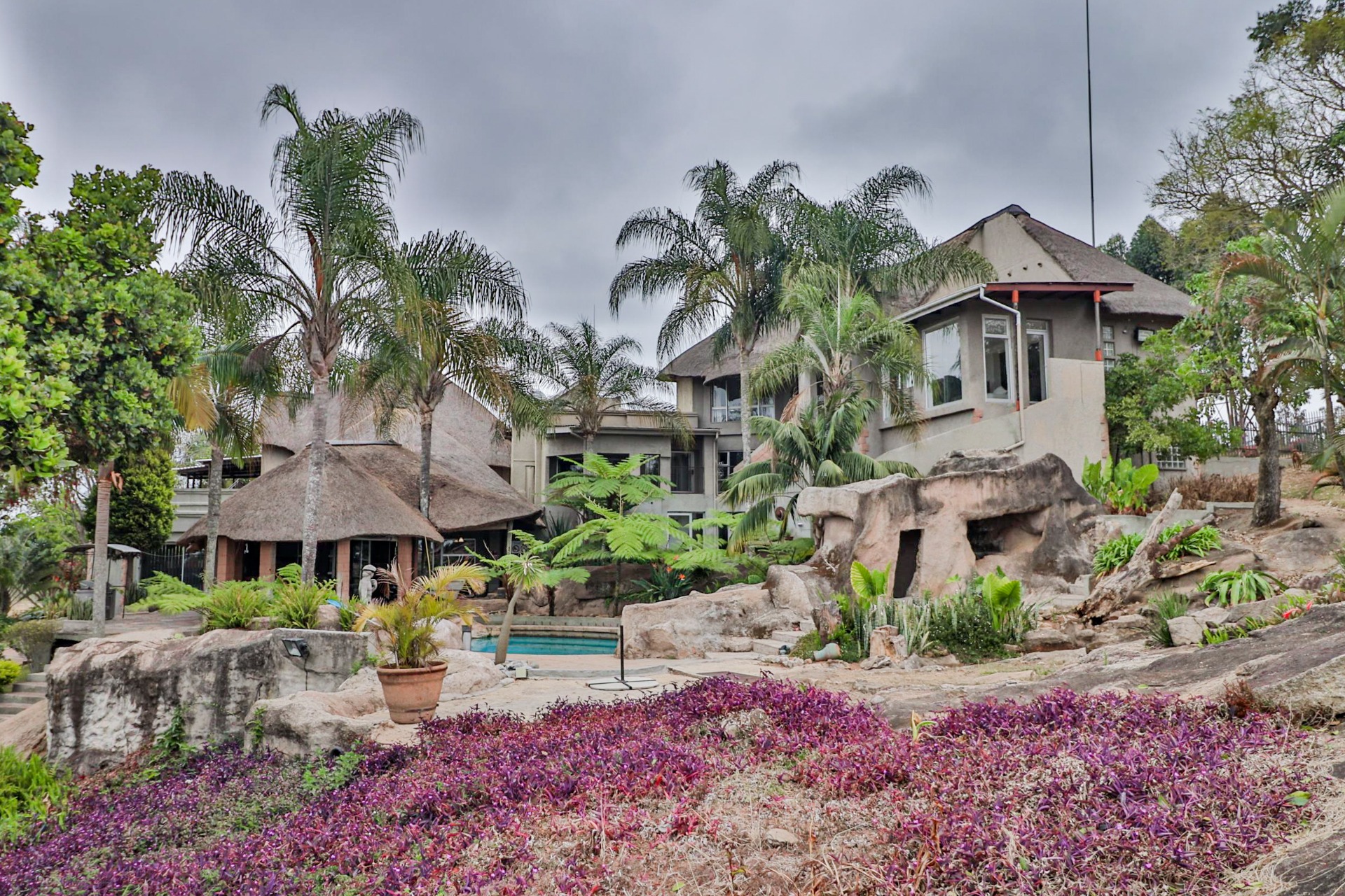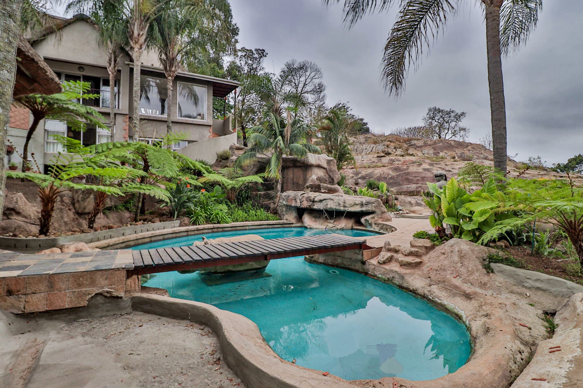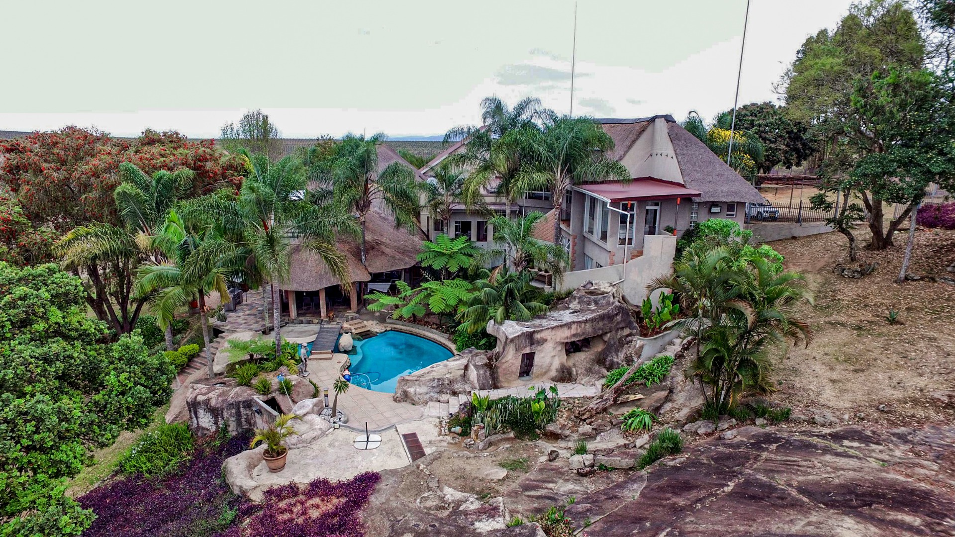 Situated close to Uplands College on 3.5ha of prime land lies an opportunity of a lifetime, offering 1200m2 of accommodation, a 500m2 workshop, and an open-plan office. The remarkable multi-level accommodation, with its palatial features and character, captivates from beginning to end. This property also holds incredible potential as a guest farm or wedding venue.