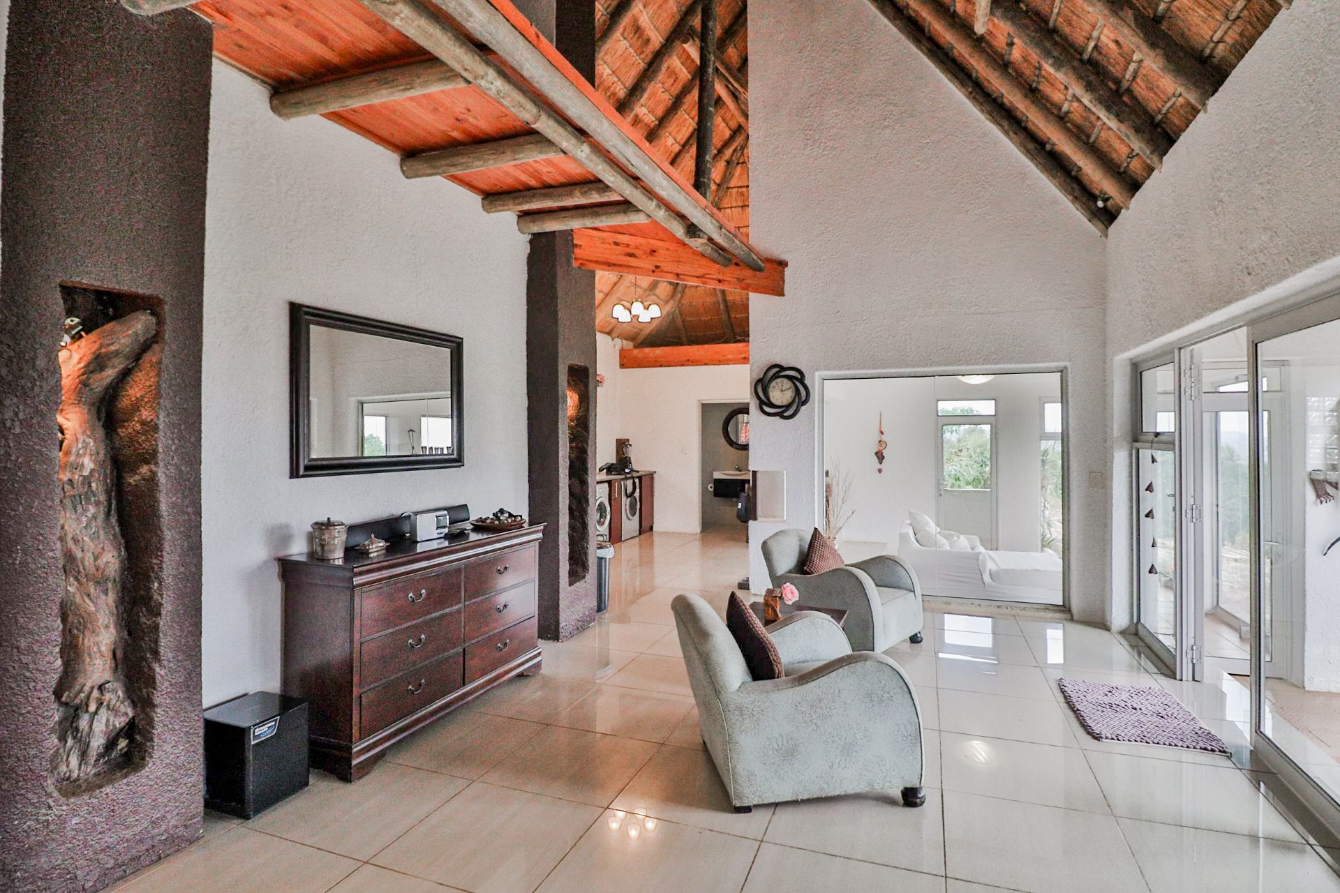 Power is supplied by Eskom three-phase electricity, with three boreholes servicing the property. It is surrounded by fully electrified neighboring properties for added security.