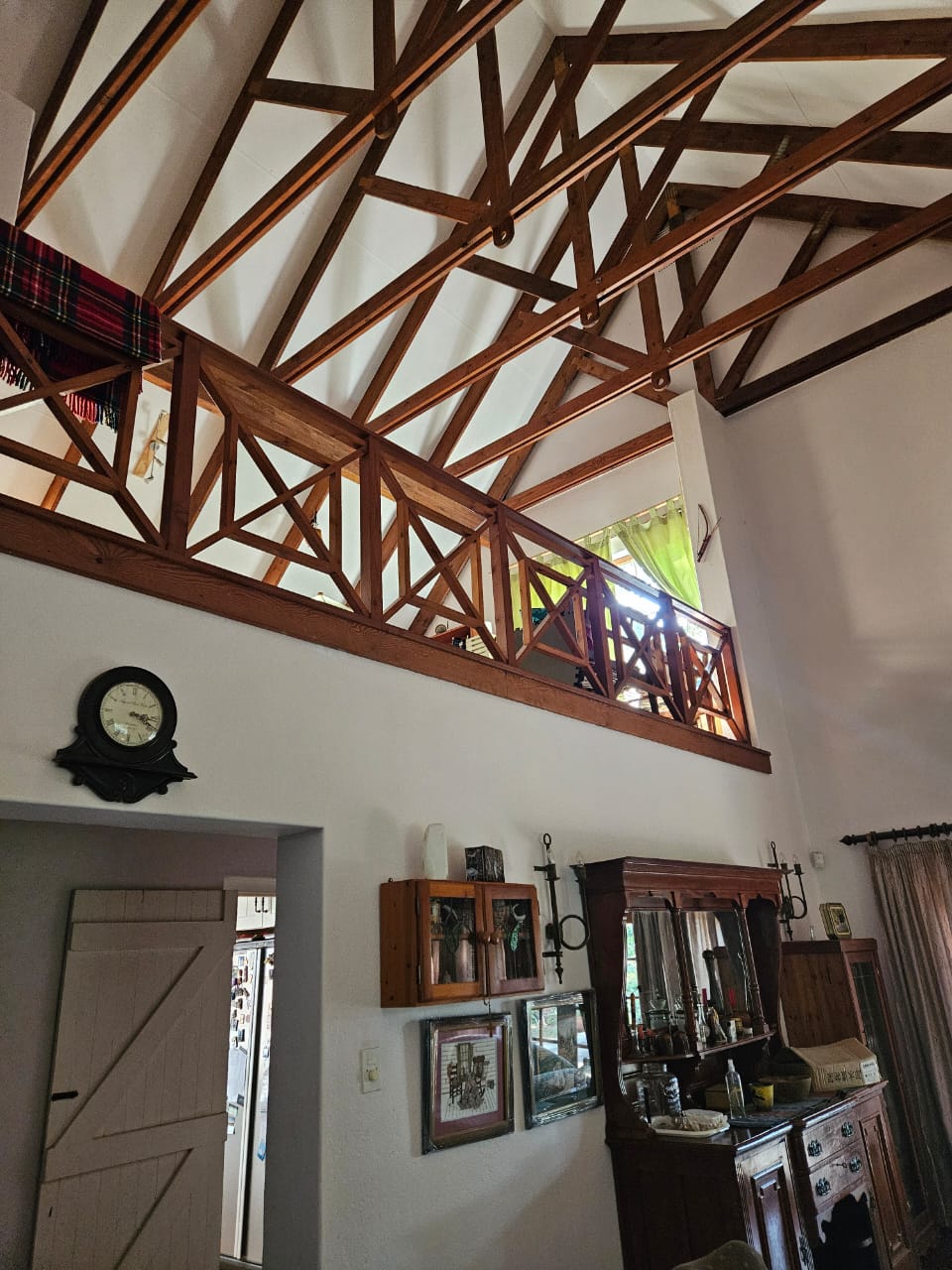 The main double-storey house of this property for sale in White River includes three large bedrooms and three bathrooms, two of which are en-suite. The home features two comfortable lounges, each with its own fireplace, as well as a spacious kitchen and open-plan living areas designed for relaxed family living. Security features include an alarm system, outdoor beams, an electric fence and an automated gate.