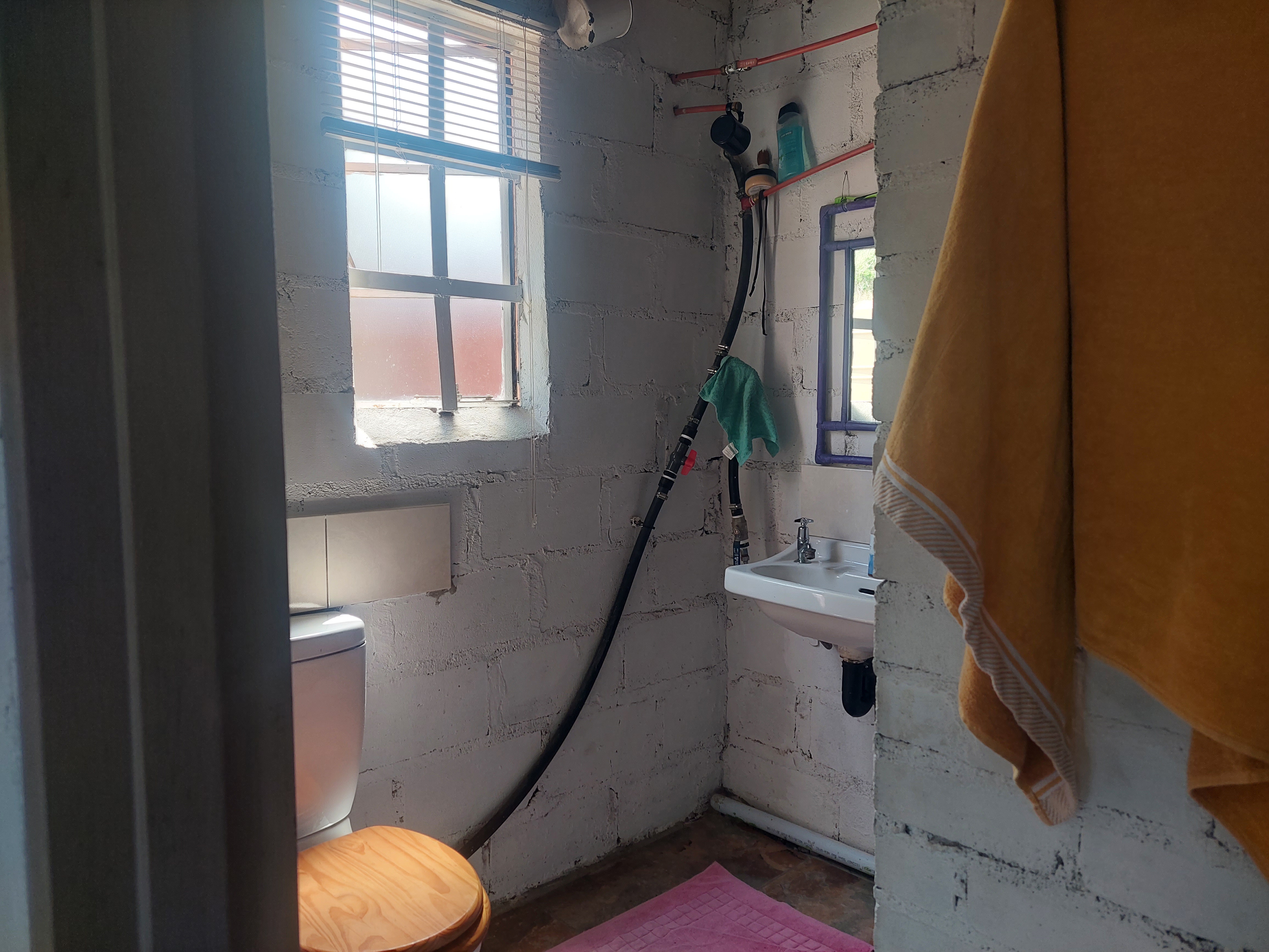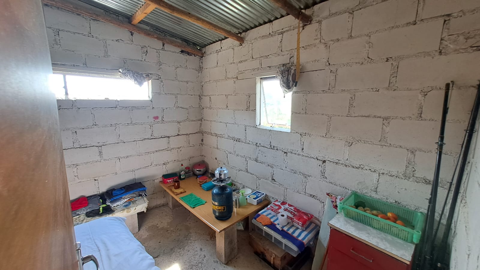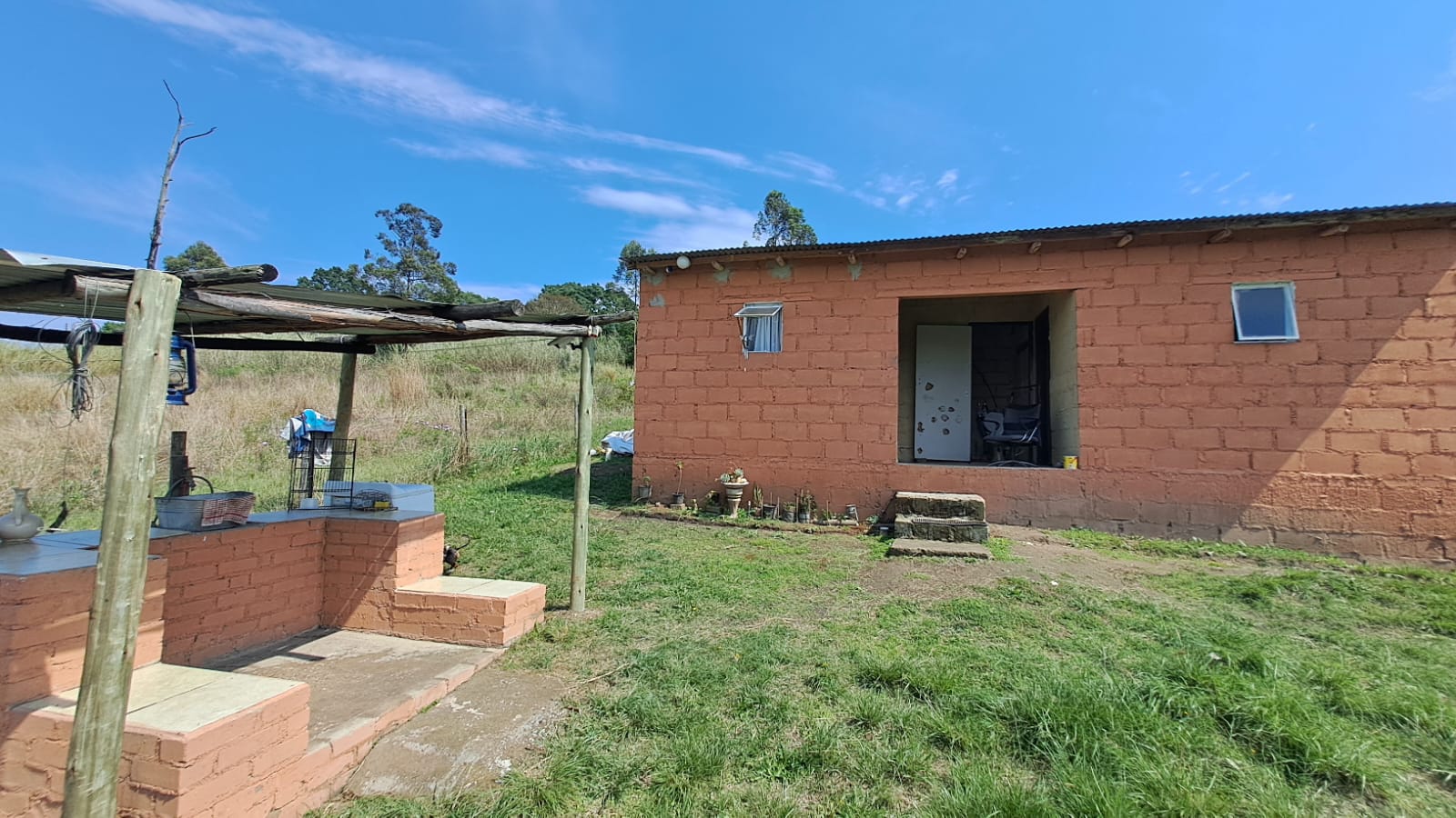 The property has a borehole with sufficient water and prepaid electricity for easy, cost-effective living.