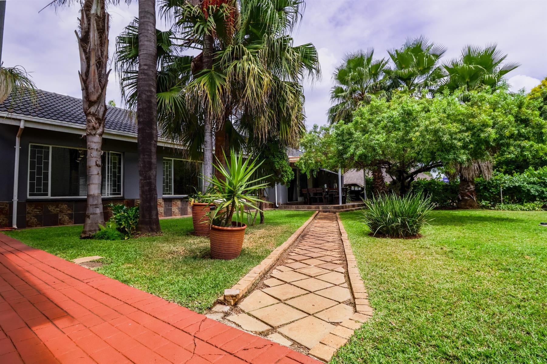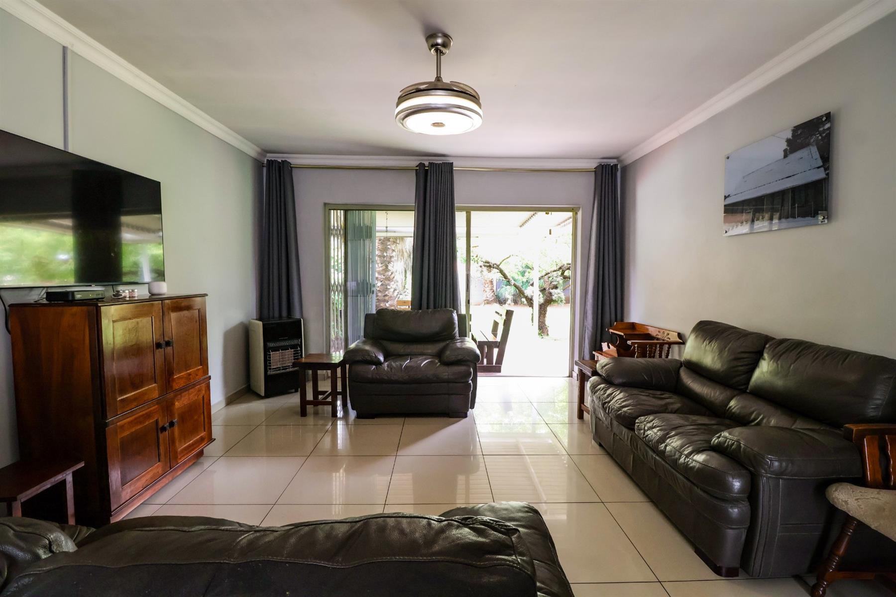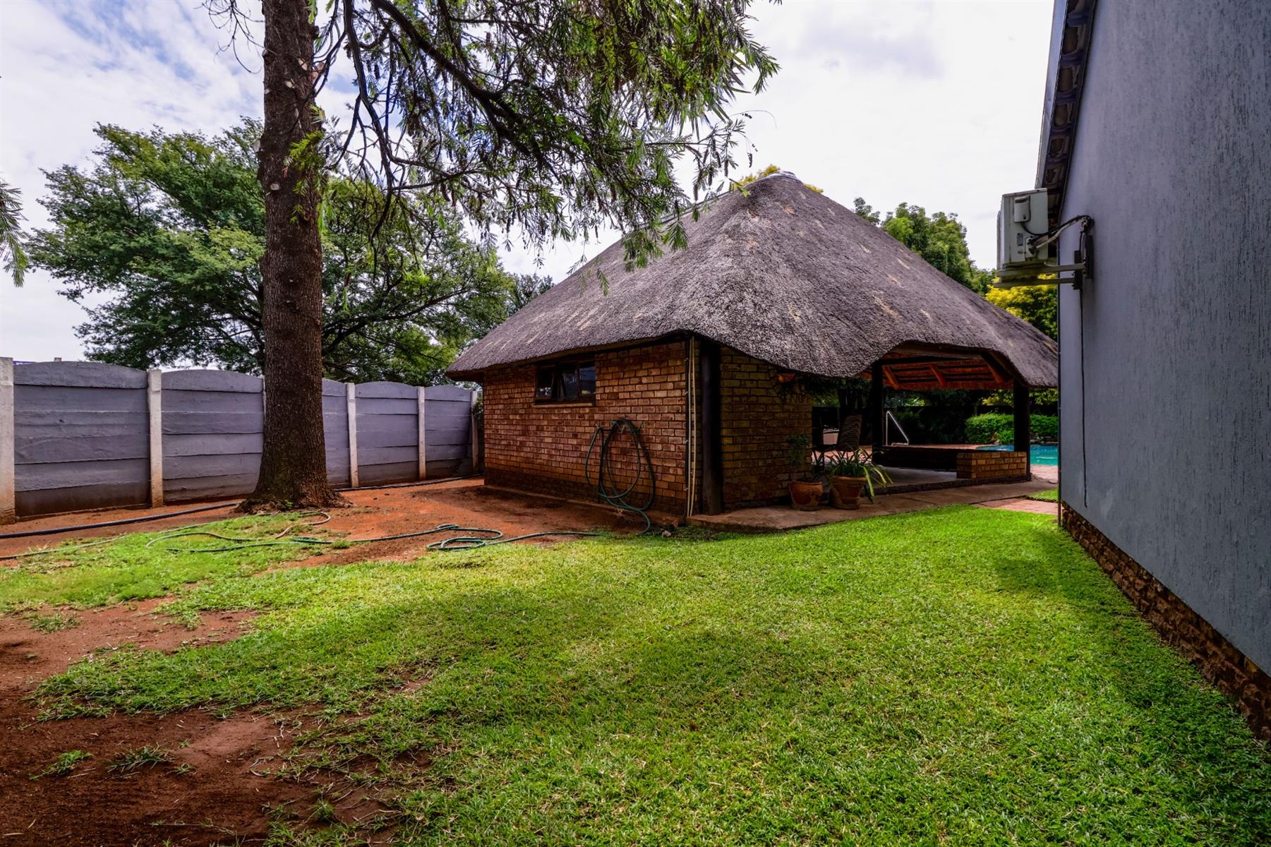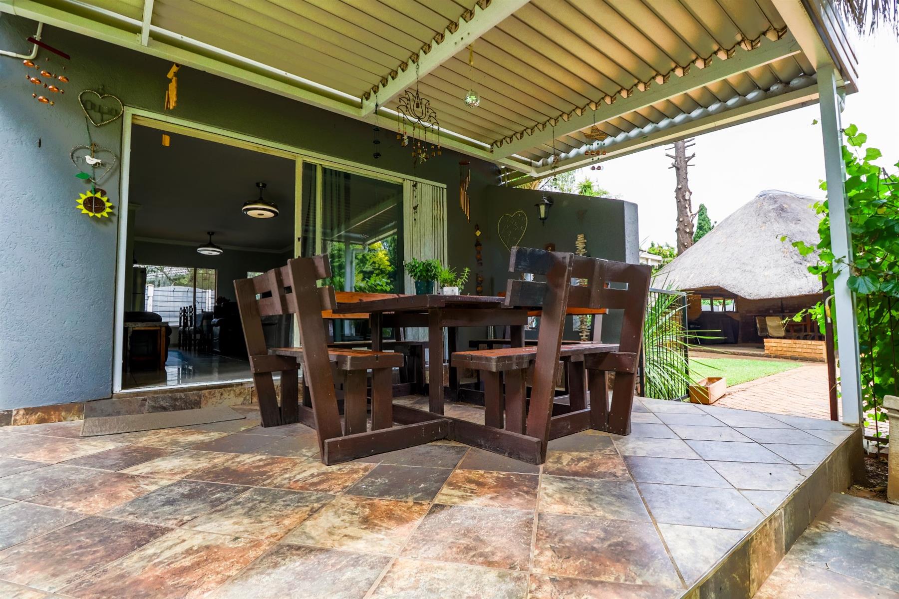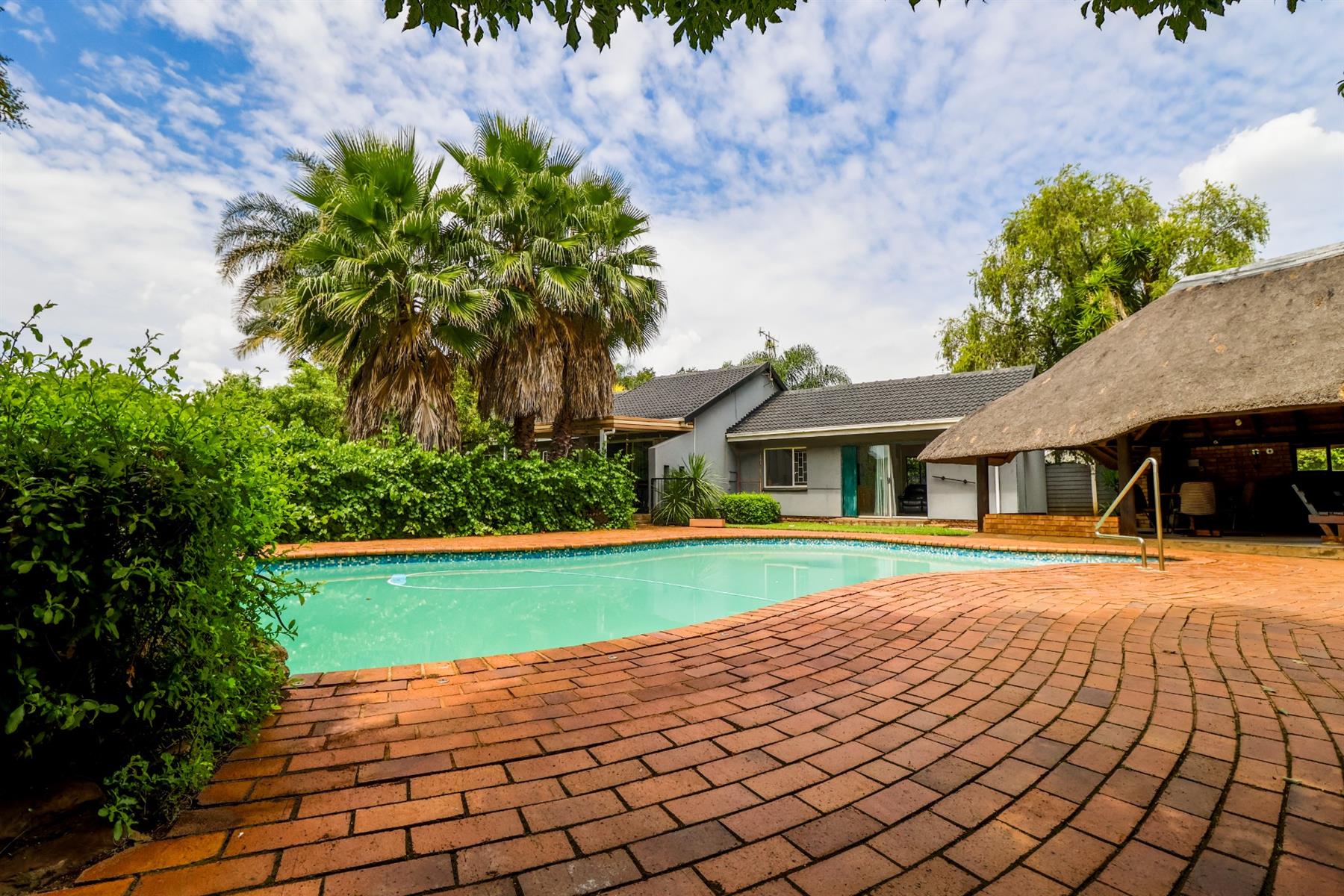 The covered lapa, complete with a built-in bar, overlooks the pool — creating the perfect space for hosting family and friends.