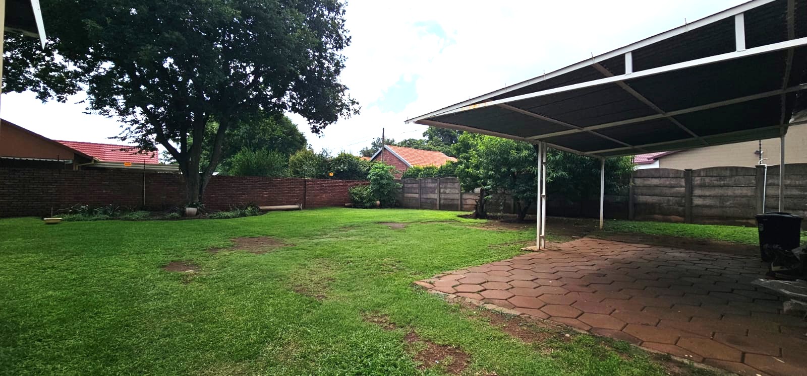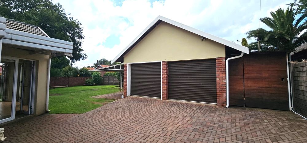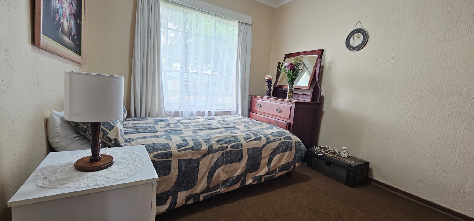 At the heart of the home sits the large kitchen, complete with beautiful wood cupboards, ample prep space, and a gas stove for easy cooking during load-shedding. A separate laundry room provides additional appliance space, keeping your kitchen organised and functional.