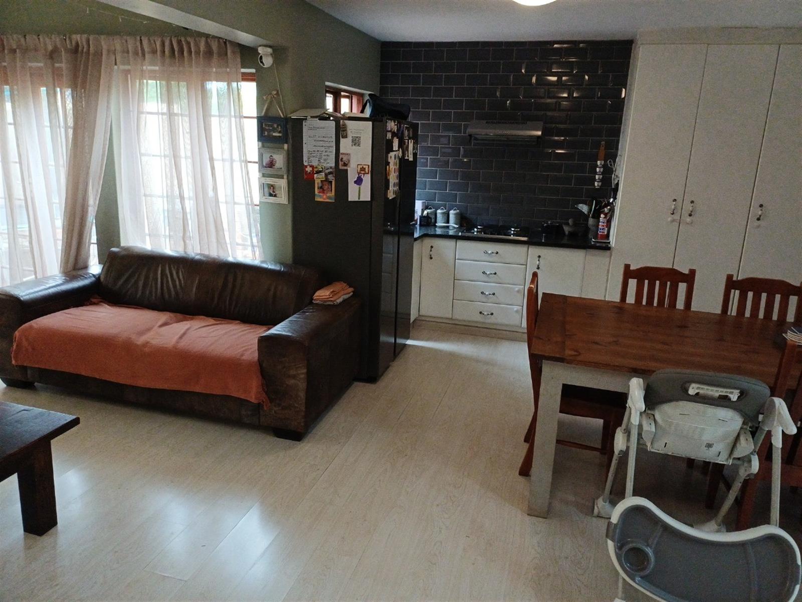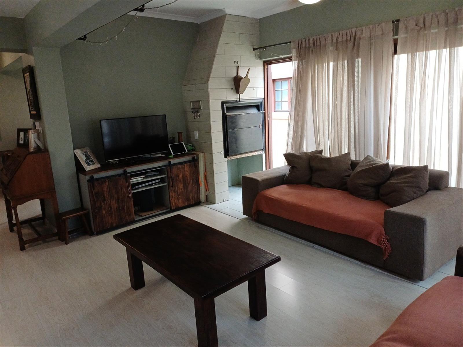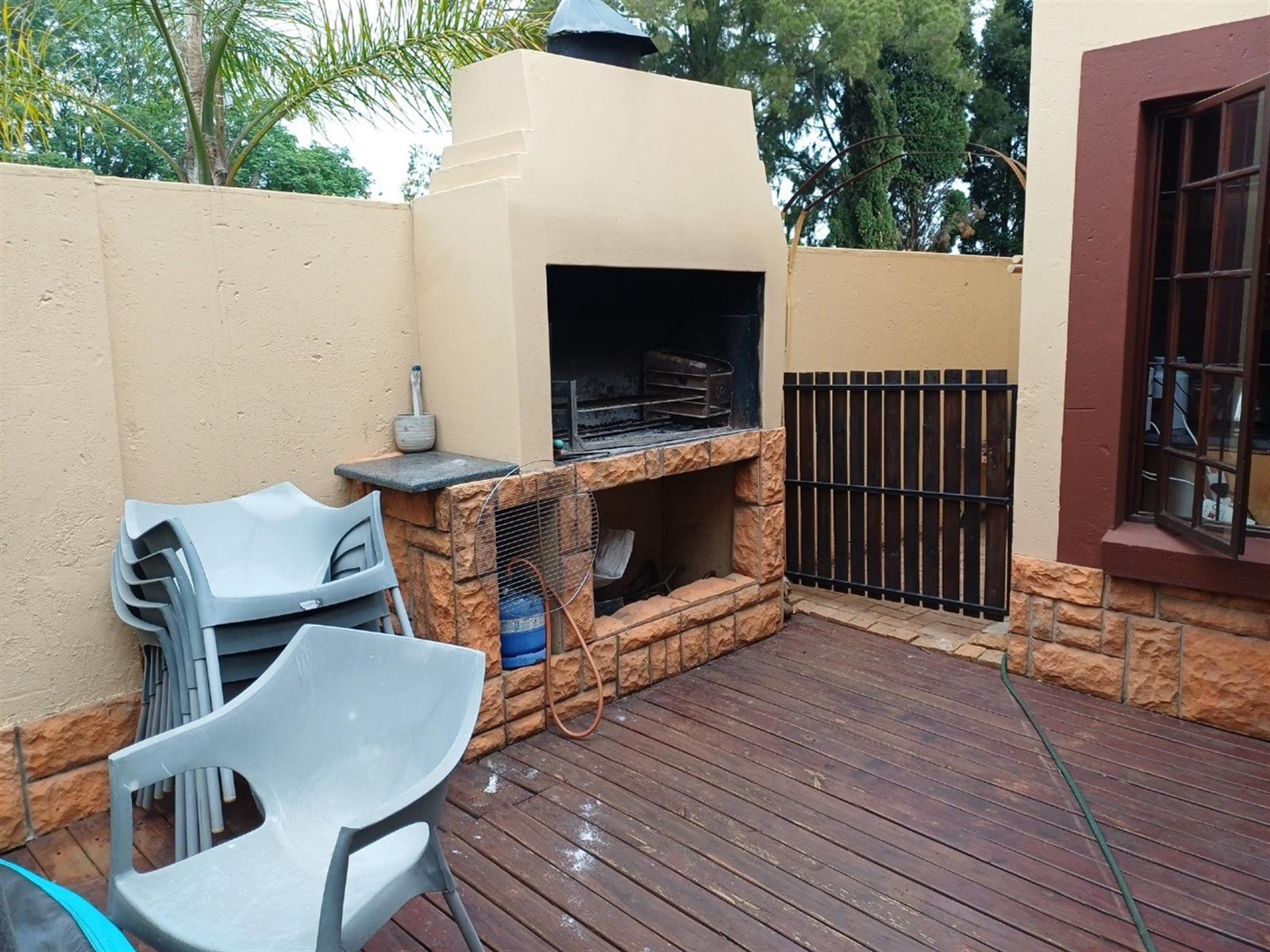 As you step inside, you are greeted by an open-plan kitchen and living areas adorned with sleek vinyl flooring throughout. The family room features a built-in braai, seamlessly leading to a lovely garden with an additional built-in braai, perfect for entertaining friends and family. The second living area is currently utilised as an office/study space.