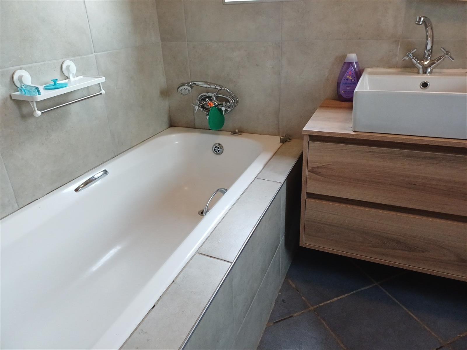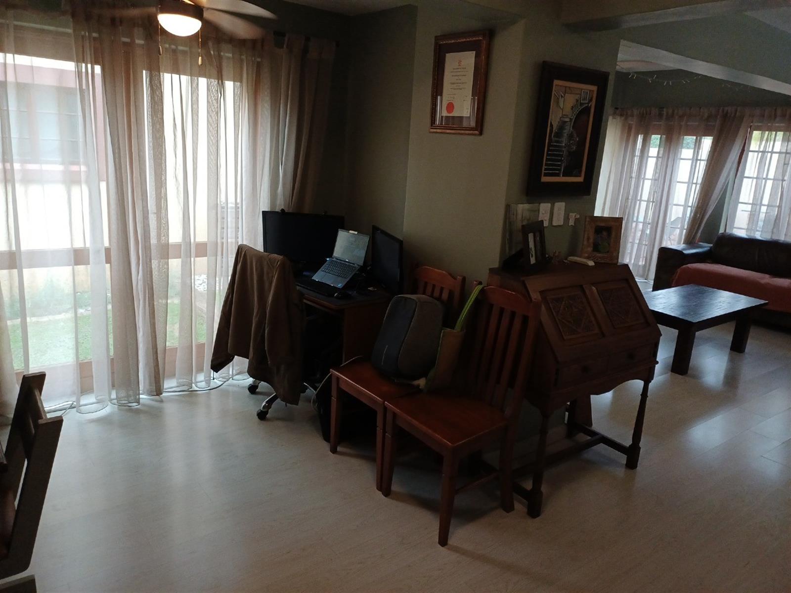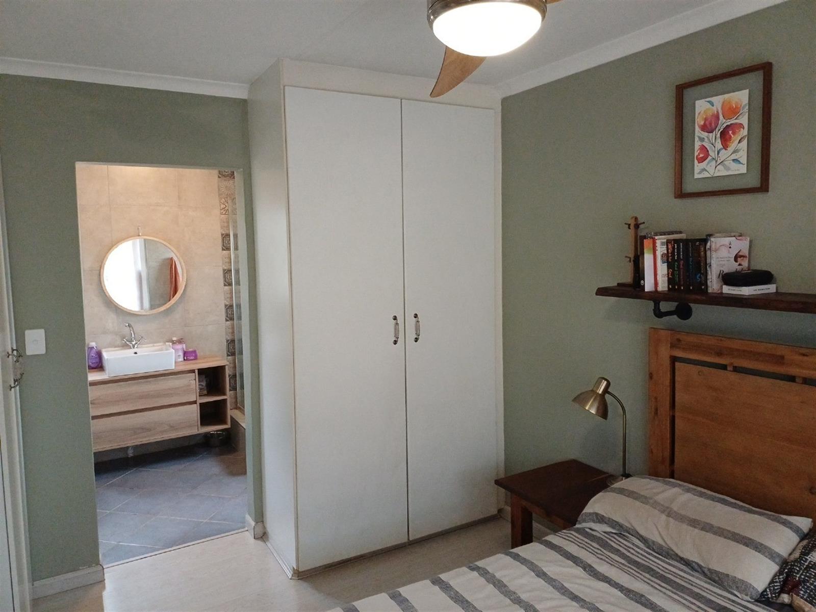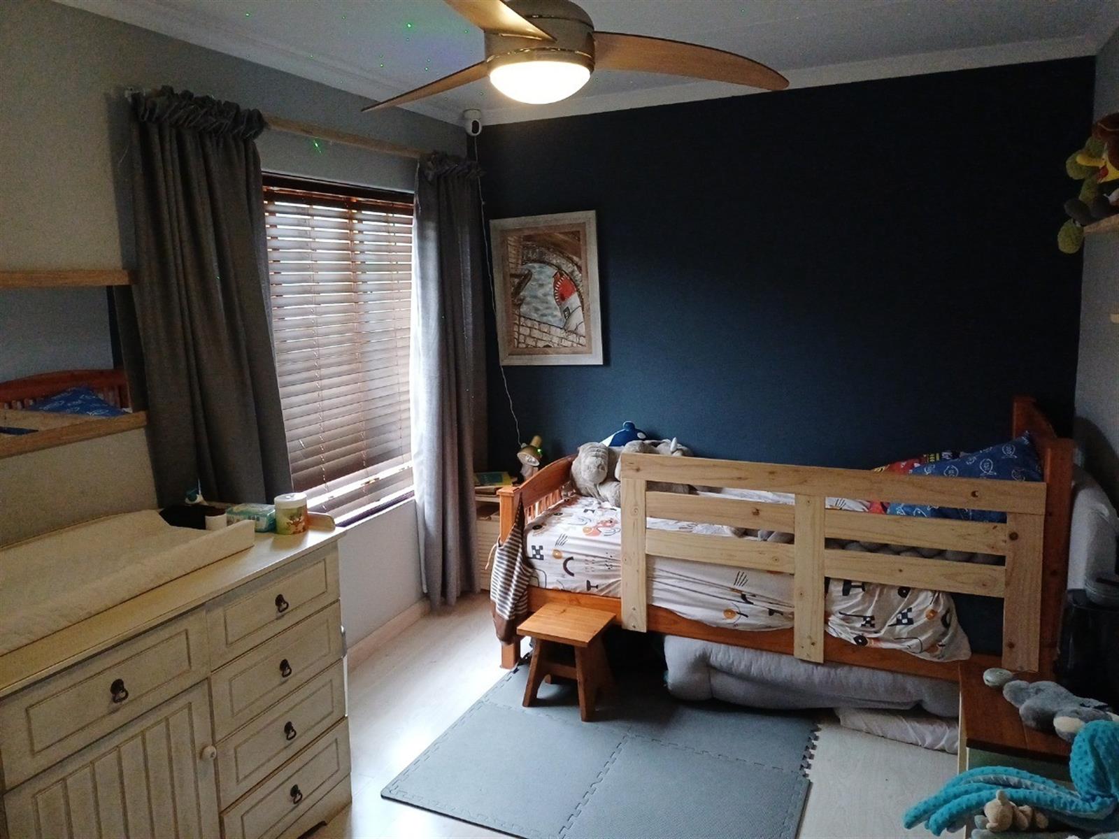 As you step inside, you are greeted by an open-plan kitchen and living areas adorned with sleek vinyl flooring throughout. The family room features a built-in braai, seamlessly leading to a lovely garden with an additional built-in braai, perfect for entertaining friends and family. The second living area is currently utilised as an office/study space.