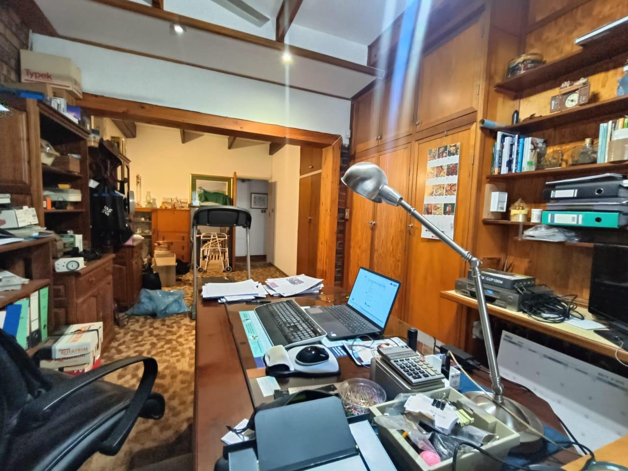 The kitchen is both functional and character-filled, featuring solid wood cupboards, a pantry, and a separate scullery with laundry space. For those working remotely, a private study ensures the option of a dedicated home office.