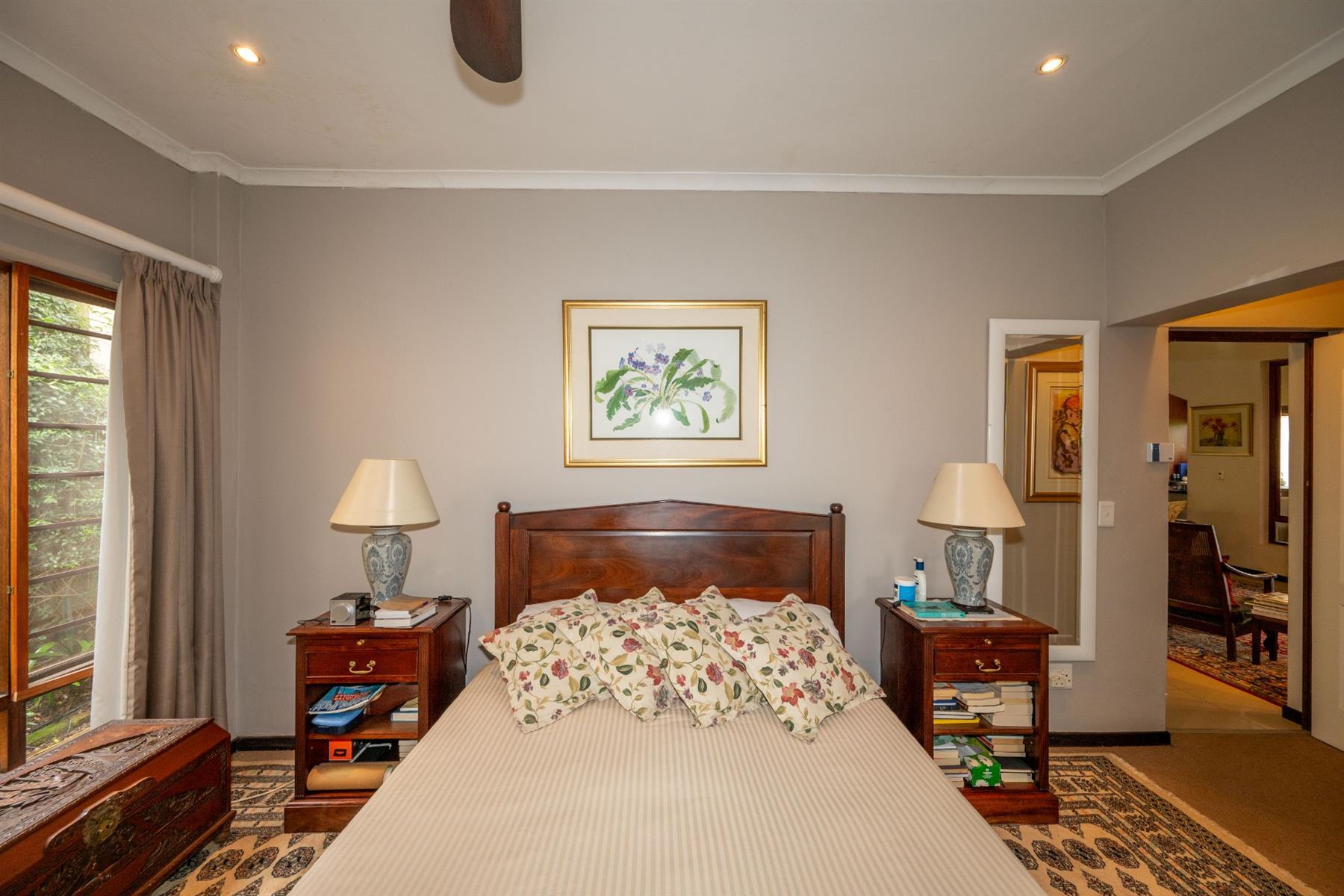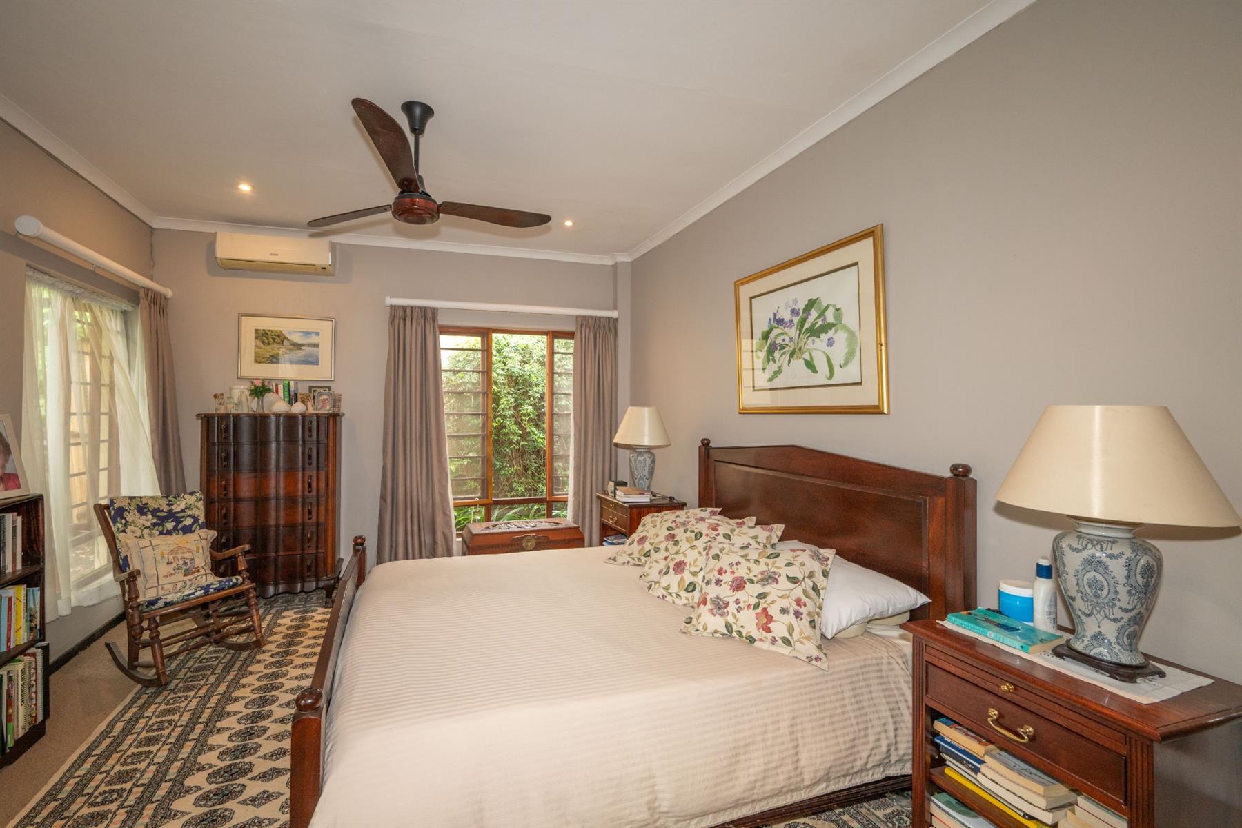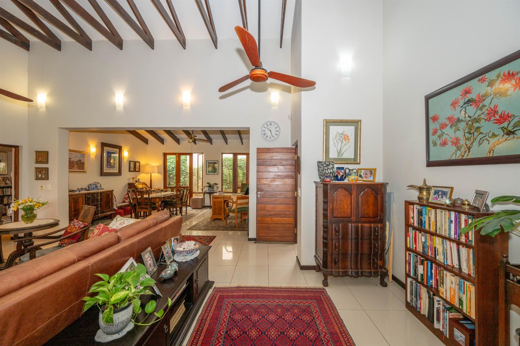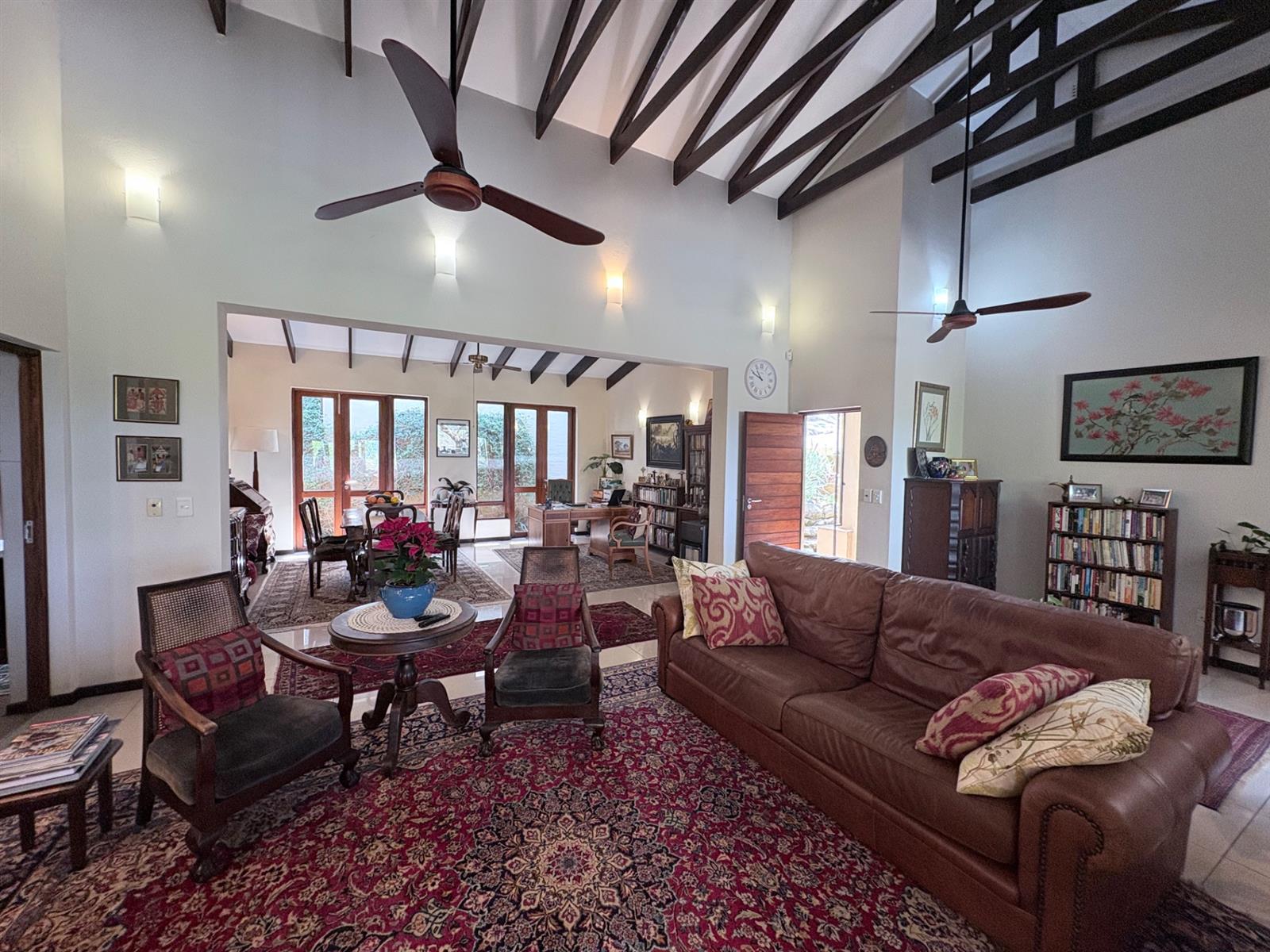 Outside, the property features a well-maintained yard and a charming garden, providing a peaceful oasis for relaxation or entertaining. The built-in braai creates an ideal setting for outdoor gatherings. With automated garage doors leading to double garages and ample parking space, convenience is at your fingertips.