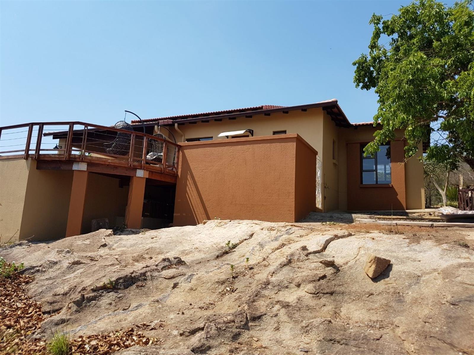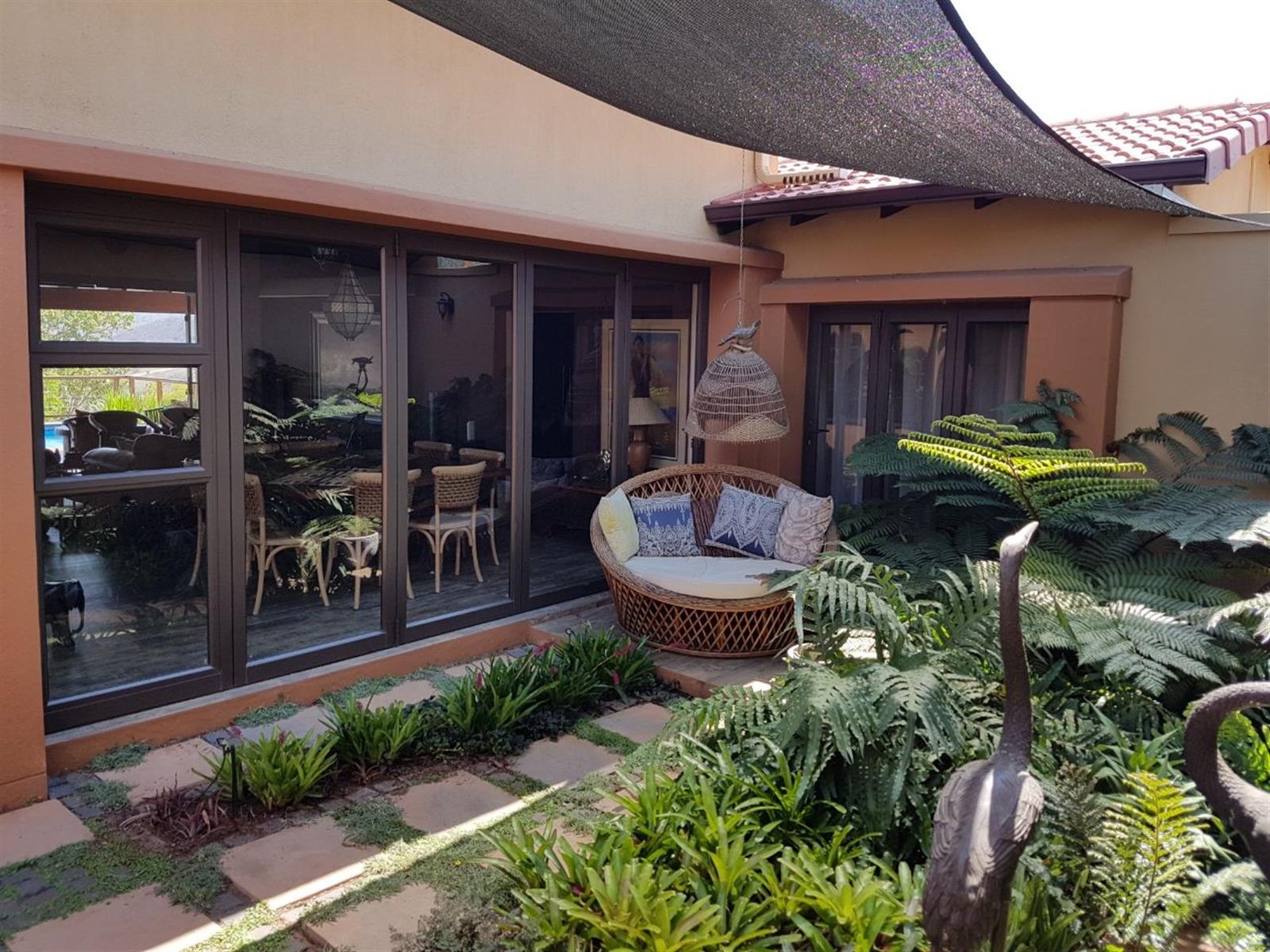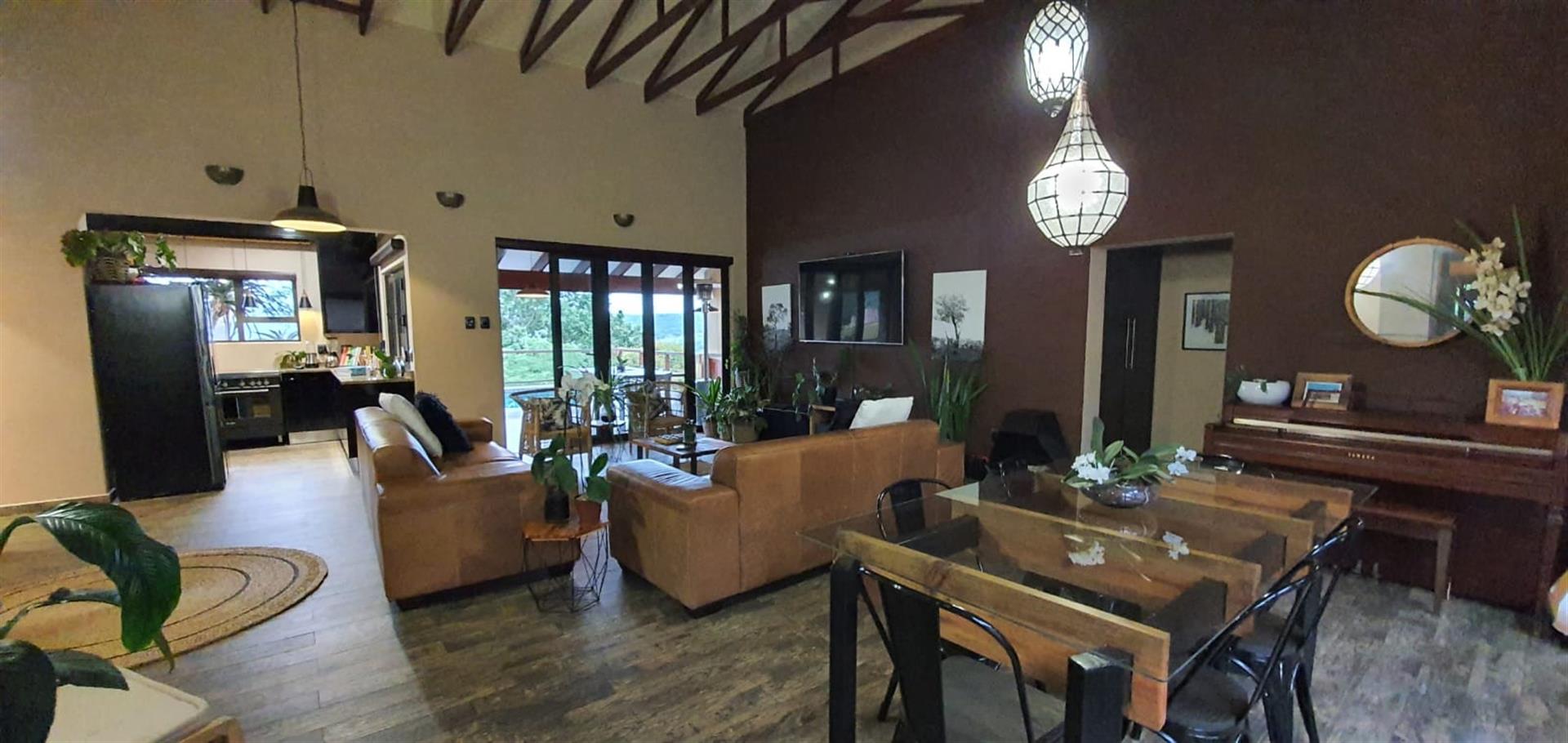 Exclusive Home offering Upmarket incredible unique Finishes, stunning black kitchen opening up onto the patio which overlooks to pool and Wow View, built in braai...