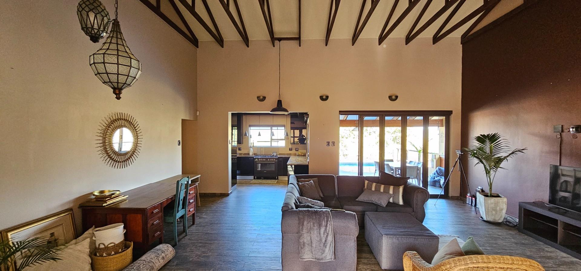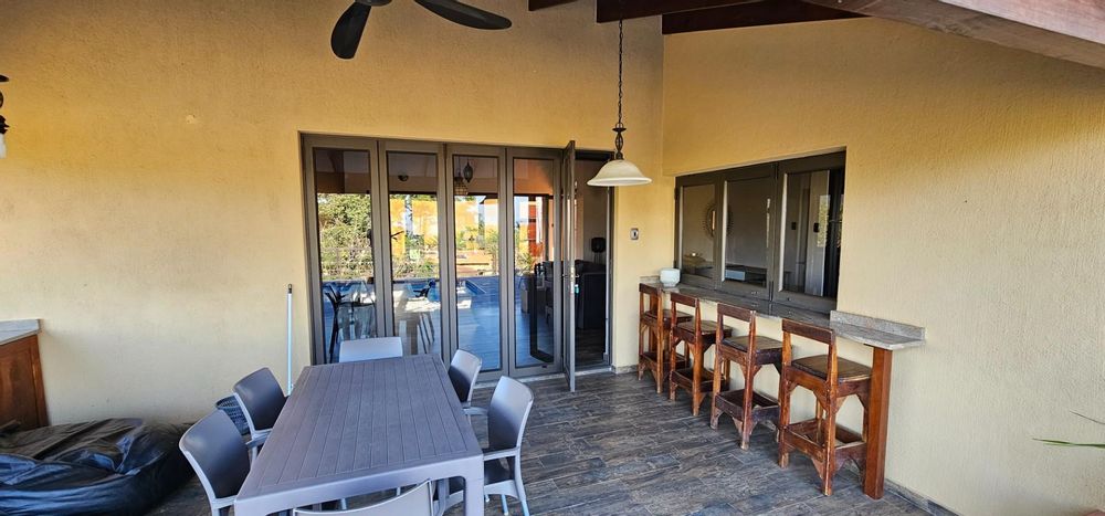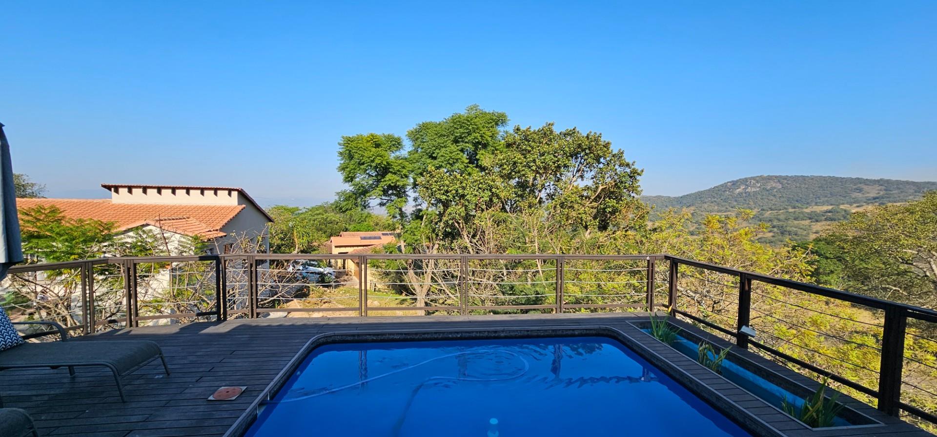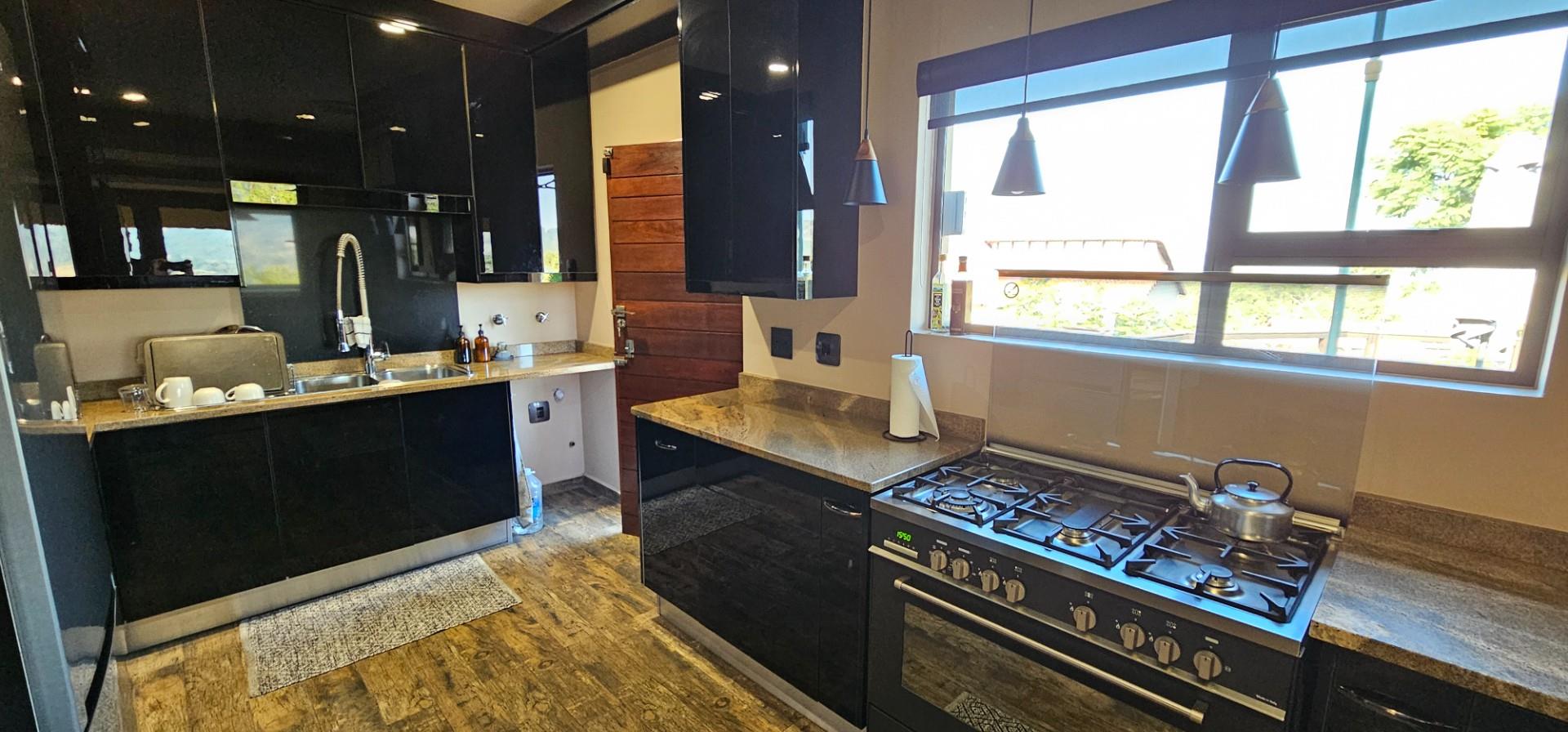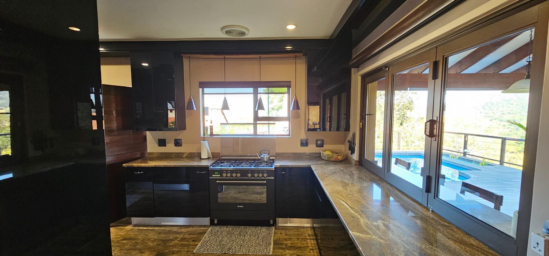 Exclusive Home offering Upmarket incredible unique Finishes, stunning black kitchen opening up onto the patio which overlooks to pool and Wow View, built in braai...