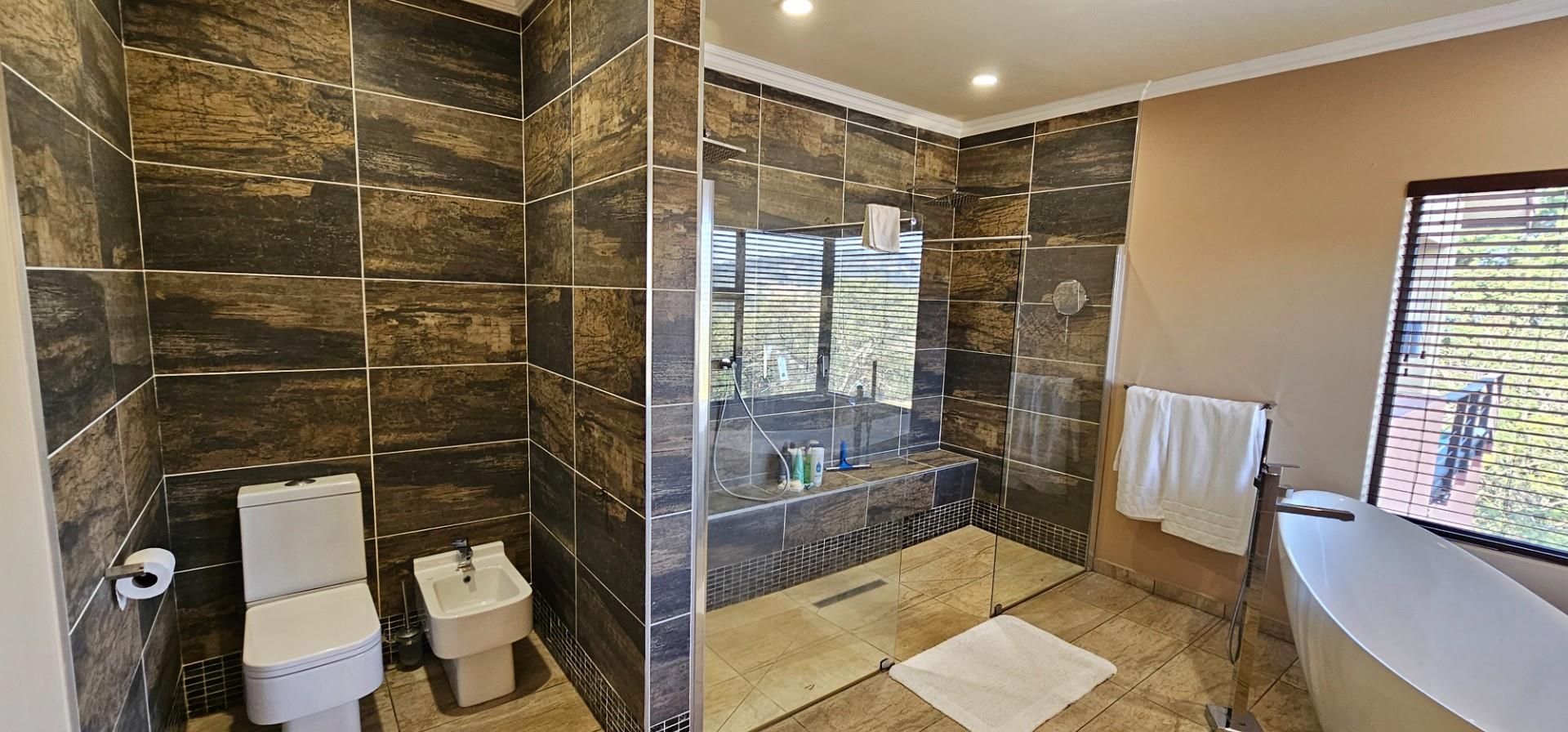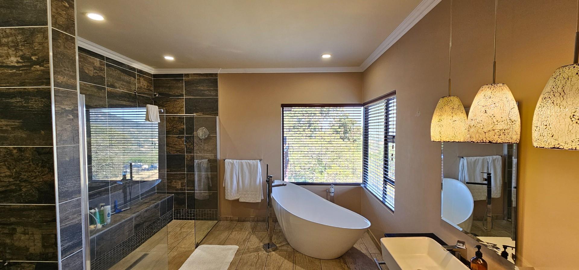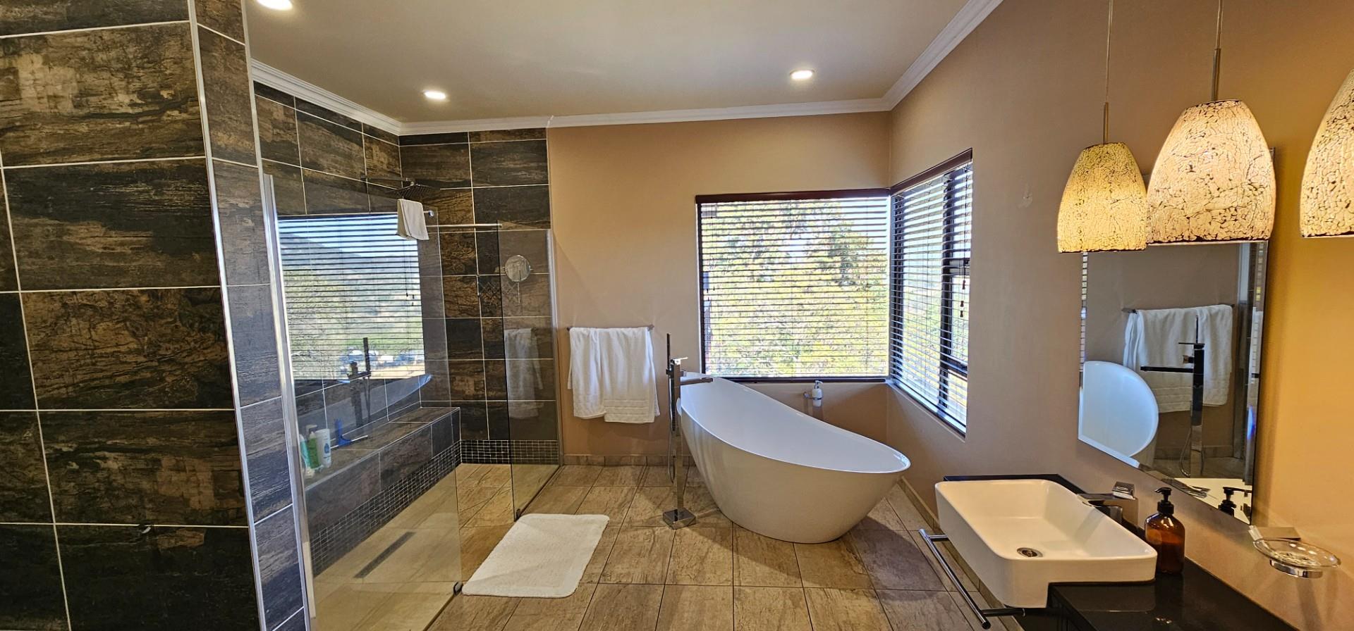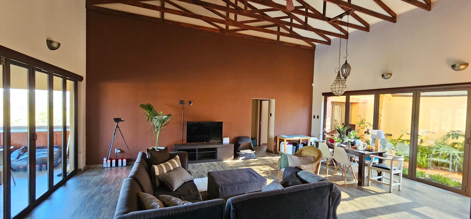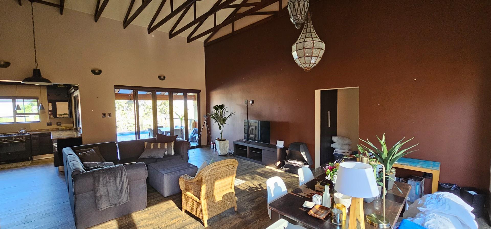 Exclusive Home offering Upmarket incredible unique Finishes, stunning black kitchen opening up onto the patio which overlooks to pool and Wow View, built in braai...