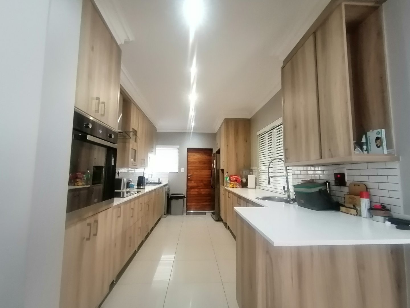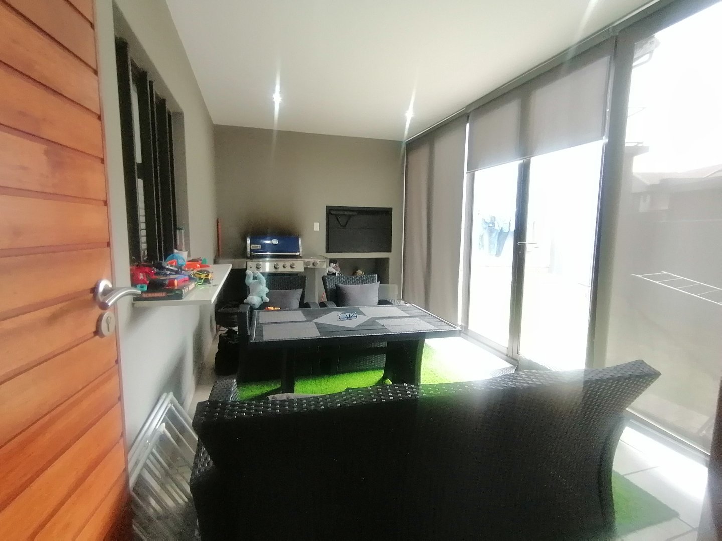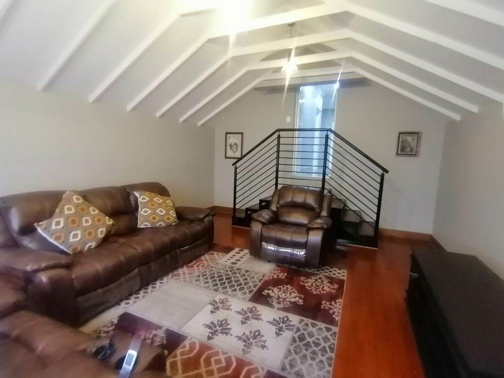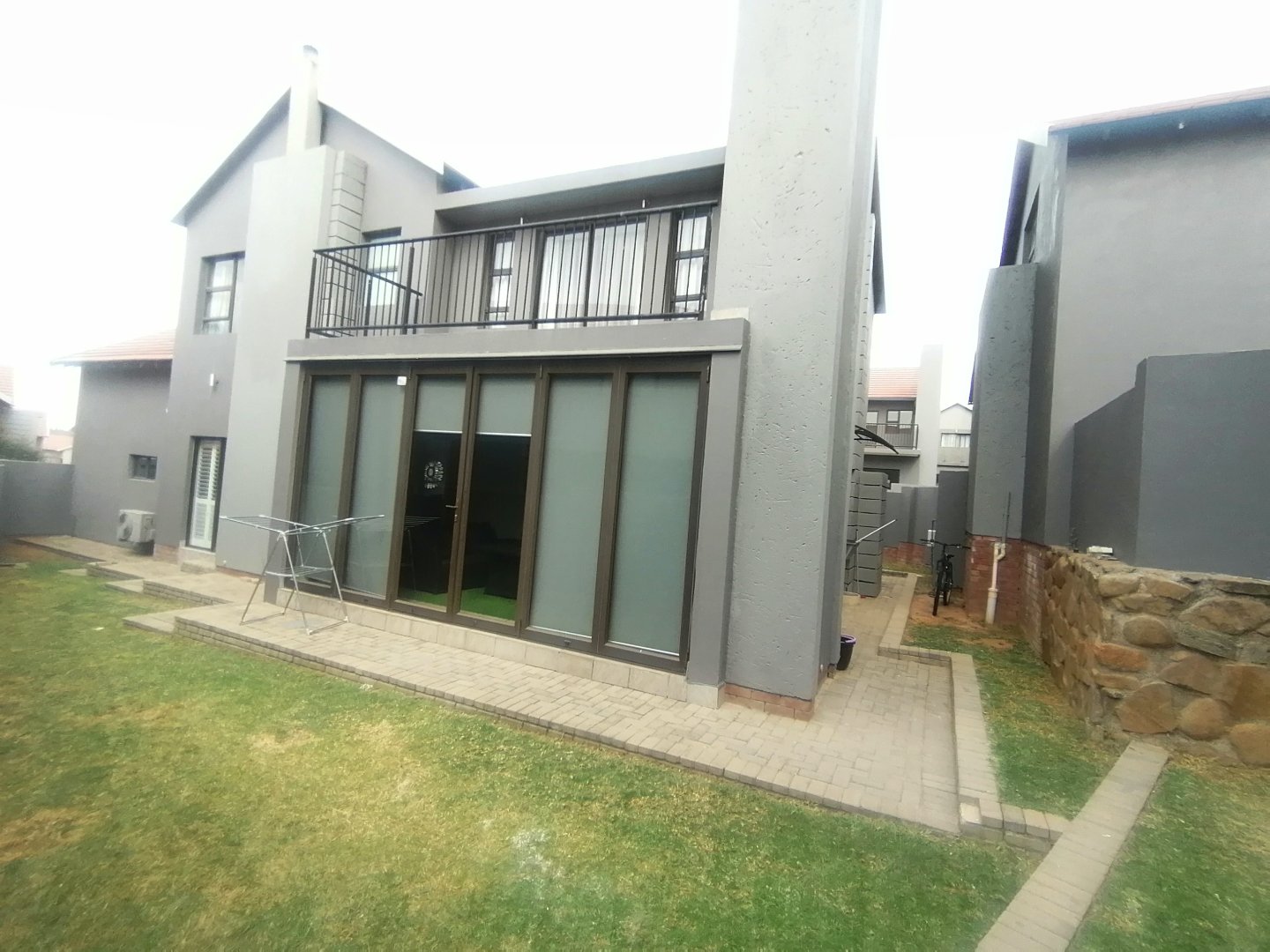This double story Town house is designed for modern living. Upstairs, you’ll find three generously sized bedrooms and one bedroom down stairs with an en suite bathroom and small store room. The main bedroom offers a lovely en-suite bathroom, while the other two bedrooms share a full bathroom. The Balcony upstairs let you enjoy stunning views. Downstairs, the open-plan layout connects a sleek kitchen to the lounge and dining area, Living area with sliding doors to a private garden – ideal for entertaining or just relaxing. The automated garage has direct access into the home, adding both convenience and security.