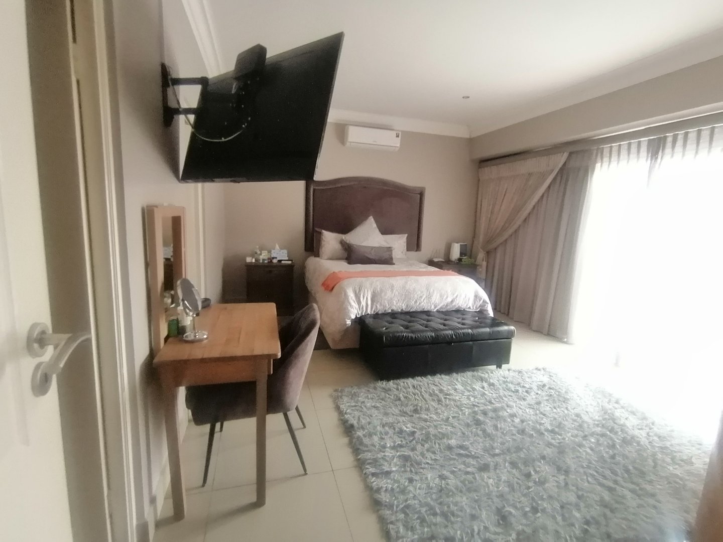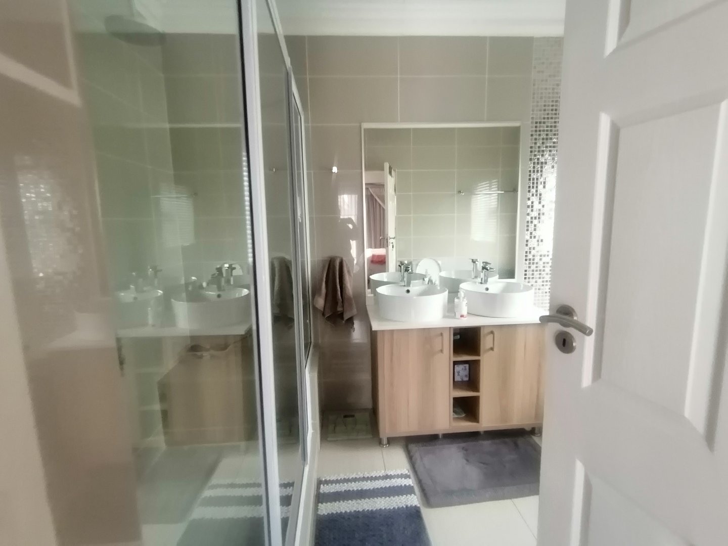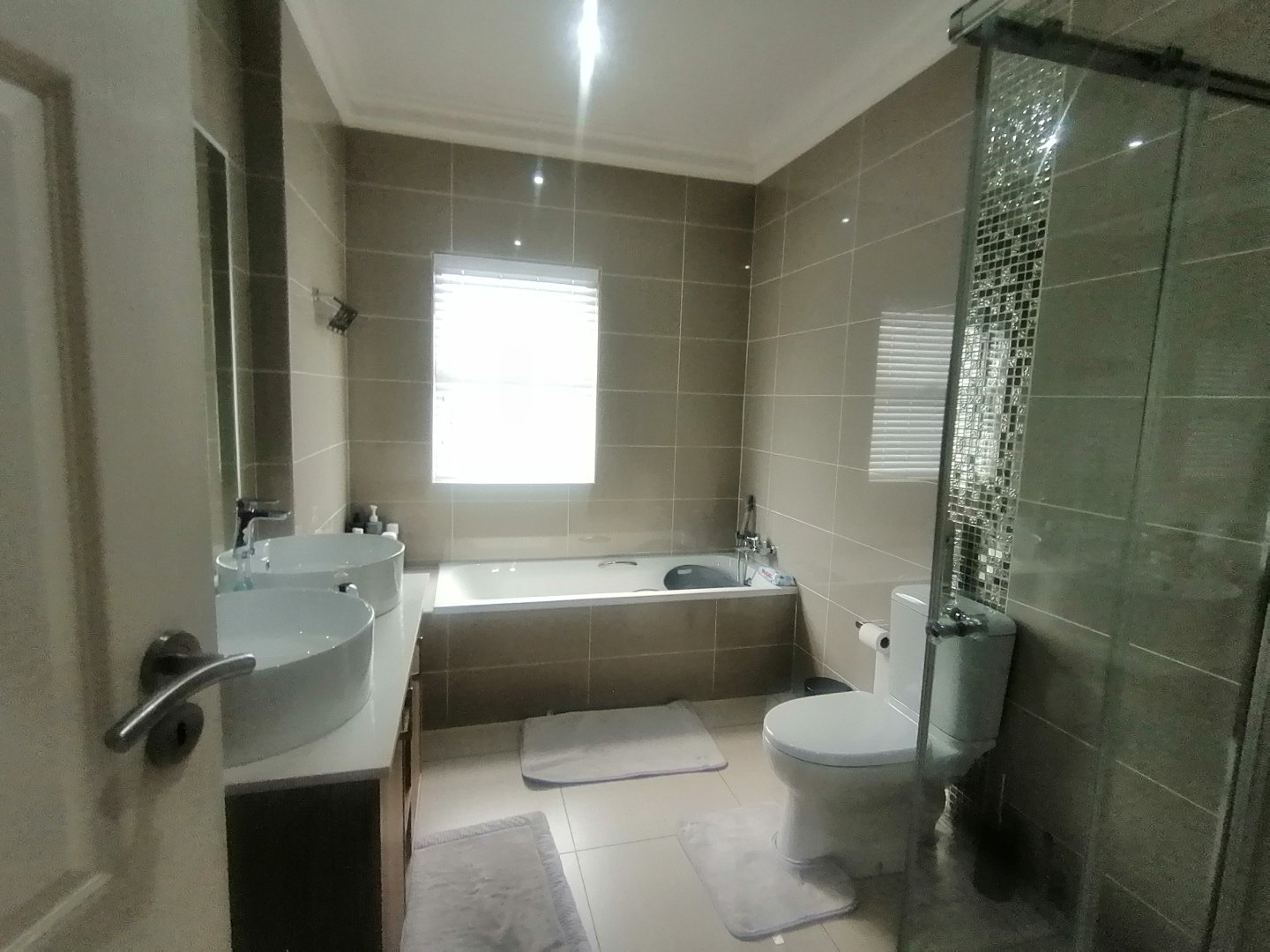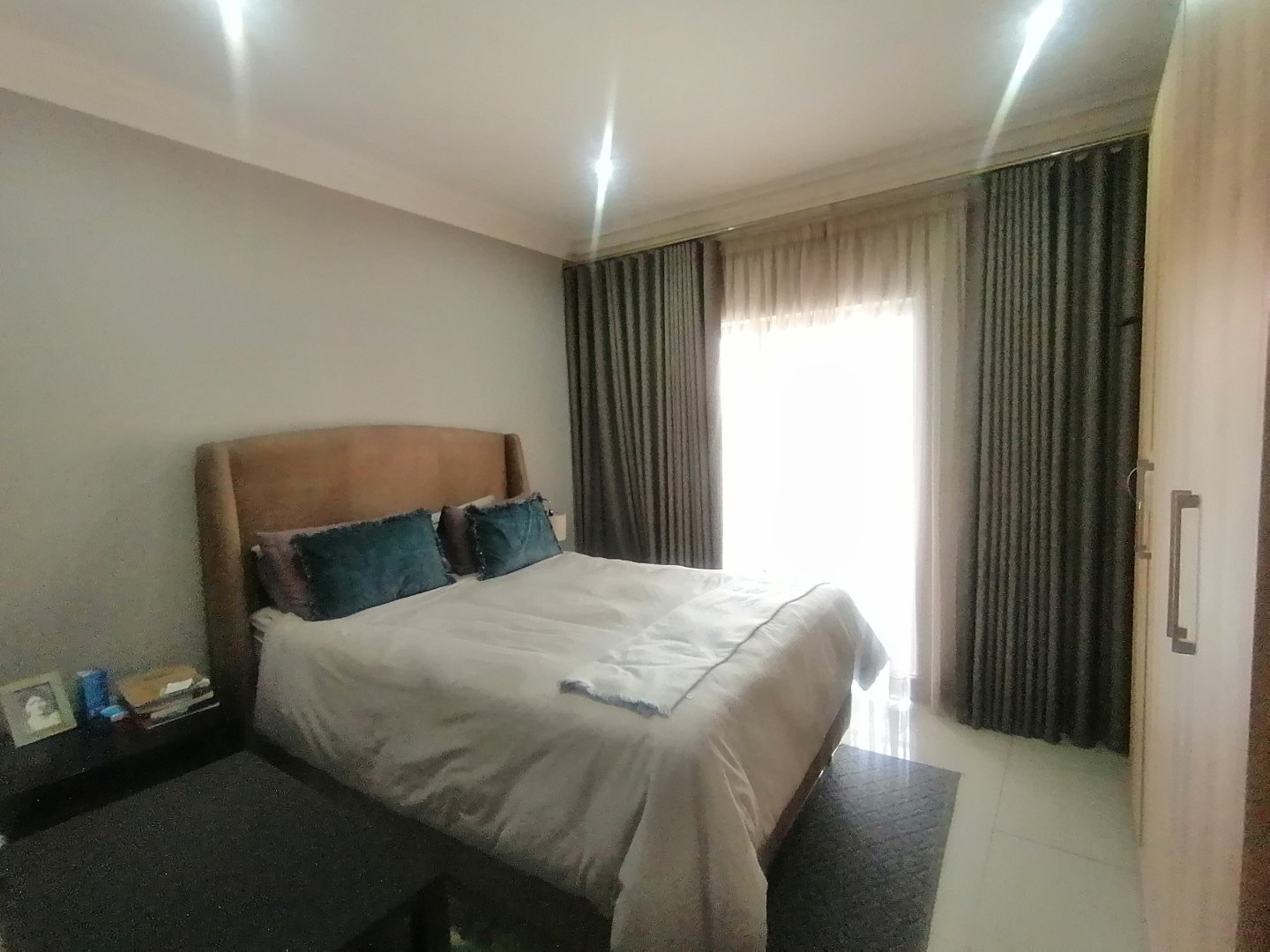 This double story Town house is designed for modern living. Upstairs, you’ll find three generously sized bedrooms and one bedroom down stairs with an en suite bathroom and small store room. The main bedroom offers a lovely en-suite bathroom, while the other two bedrooms share a full bathroom. The Balcony upstairs let you enjoy stunning views. Downstairs, the open-plan layout connects a sleek kitchen to the lounge and dining area, Living area with sliding doors to a private garden – ideal for entertaining or just relaxing. The automated garage has direct access into the home, adding both convenience and security.