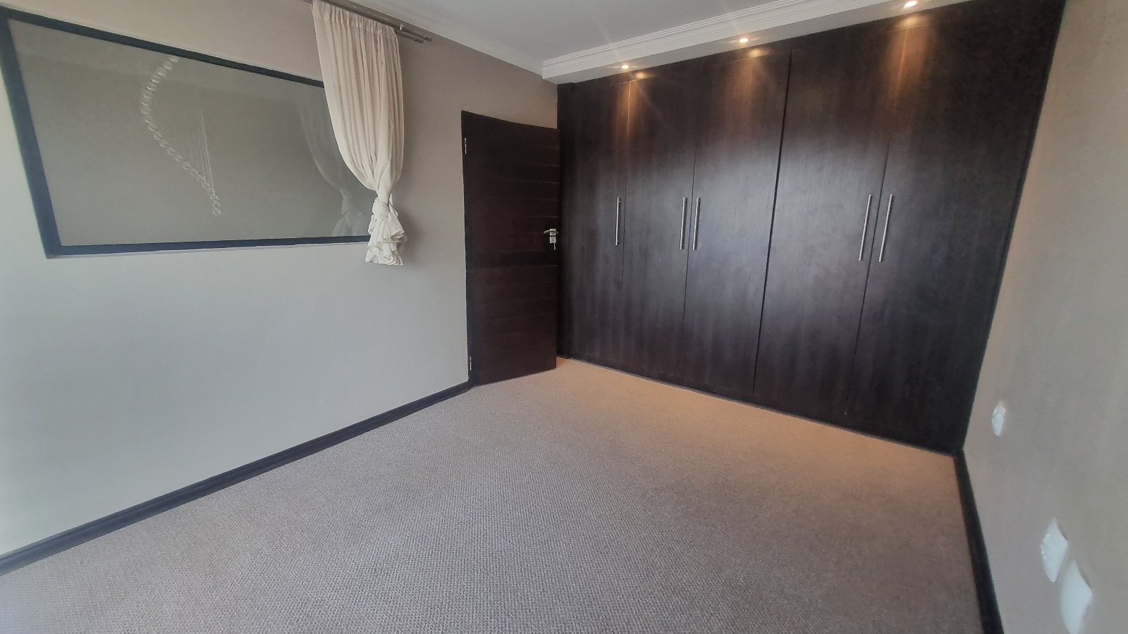 As you walk into the home you are met with an open plan lounge area with a double volume window allowing in gorgeous rays of light into the home. The kitchen is a wonder for culinary arts equipped with state of the art finishes, granite tops, oven and stove with extractor finishing off with a secluded scullery.