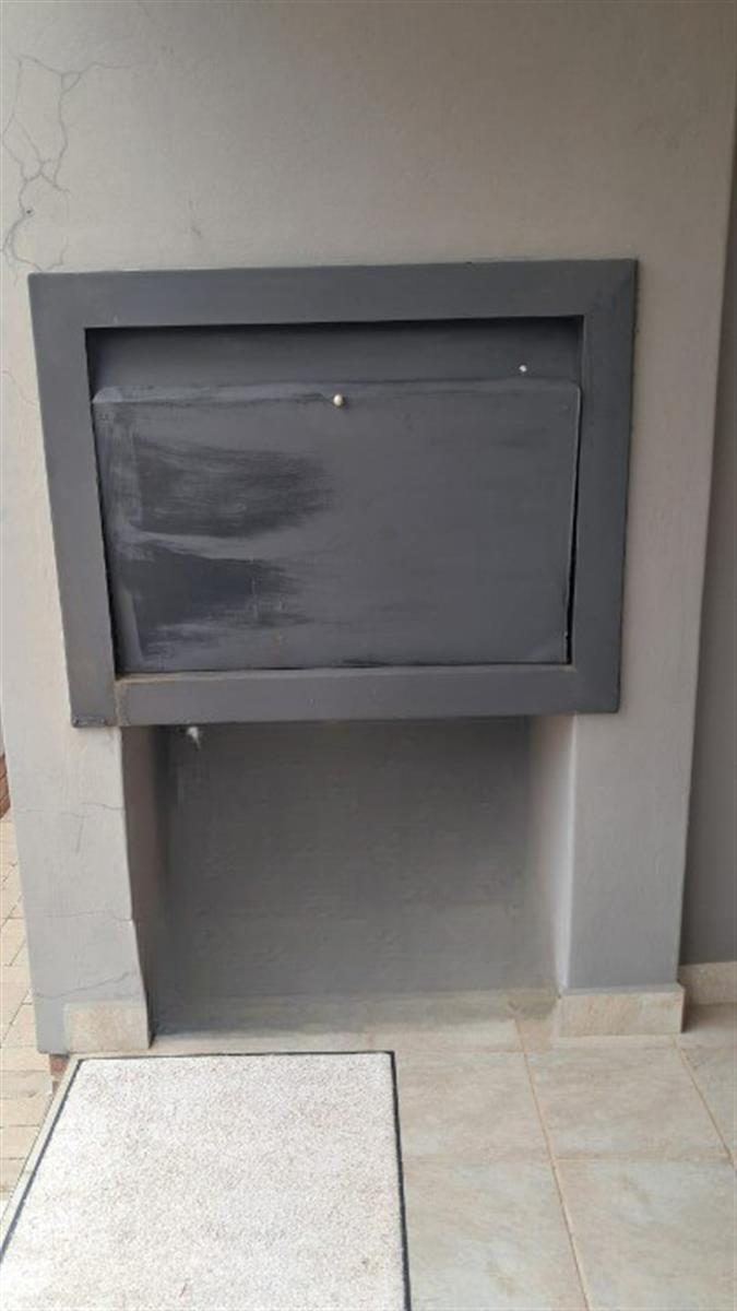Partially enclosed patio with built-in braai overlooking the peaceful reserve.