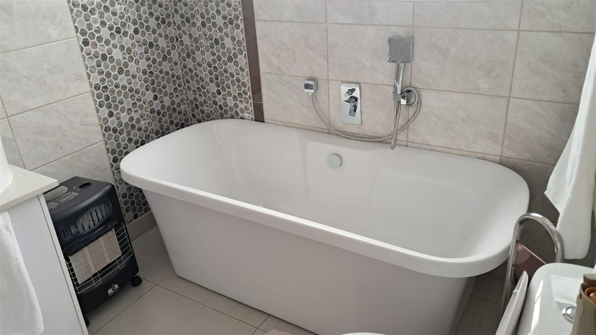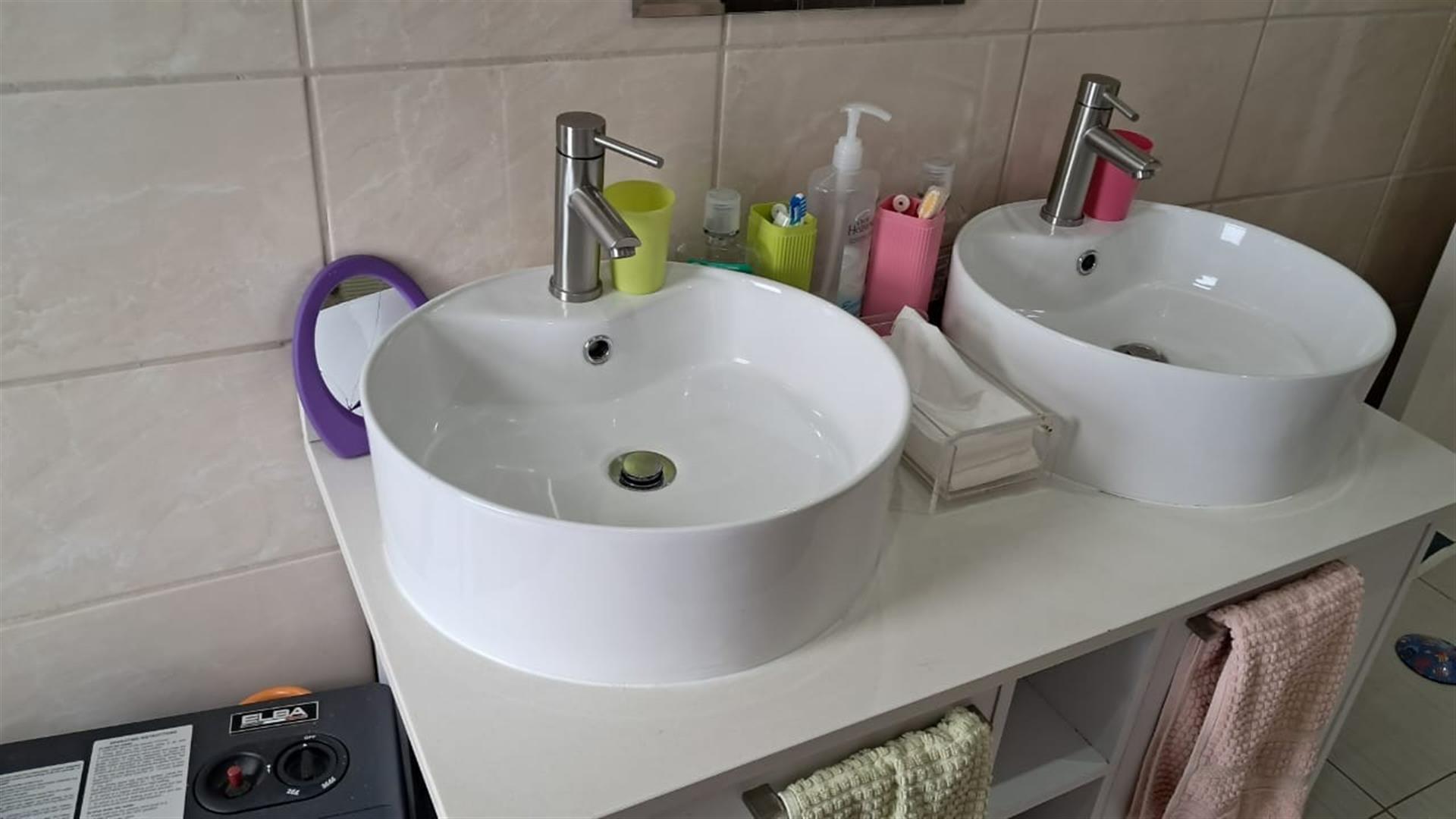 Direct entry to the double garage equipped with a basin, washing machine connection, and dedicated Heat Tech geyser.