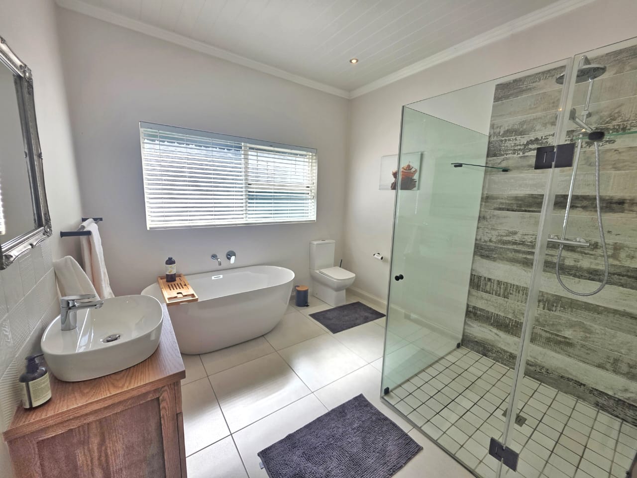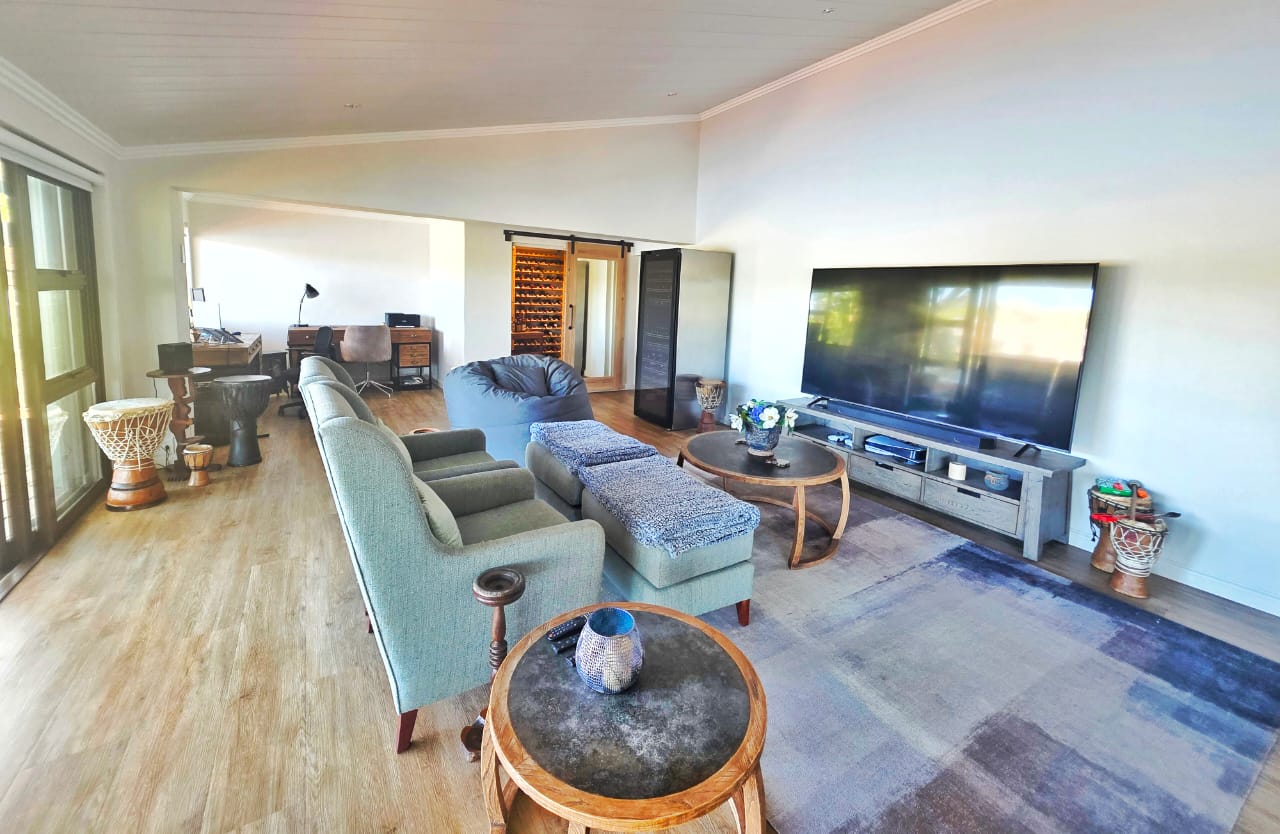 Added features include, gym, wine cellar, guest restroom, abundant storage, a double covered carport and a five-car garage with extra workspace. The home is powered by an 8.8kw inverter system, 16 solar panels and 2 x 5kwh batteries ensuring energy efficiency and uninterrupted comfort year-round. Located in the heart of Wilderness — known for its natural beauty, outdoor lifestyle and tranquil atmosphere — this riverside haven offers an exceptional opportunity to own a distinctive home in one of the Garden Route’s most sought-after settings.