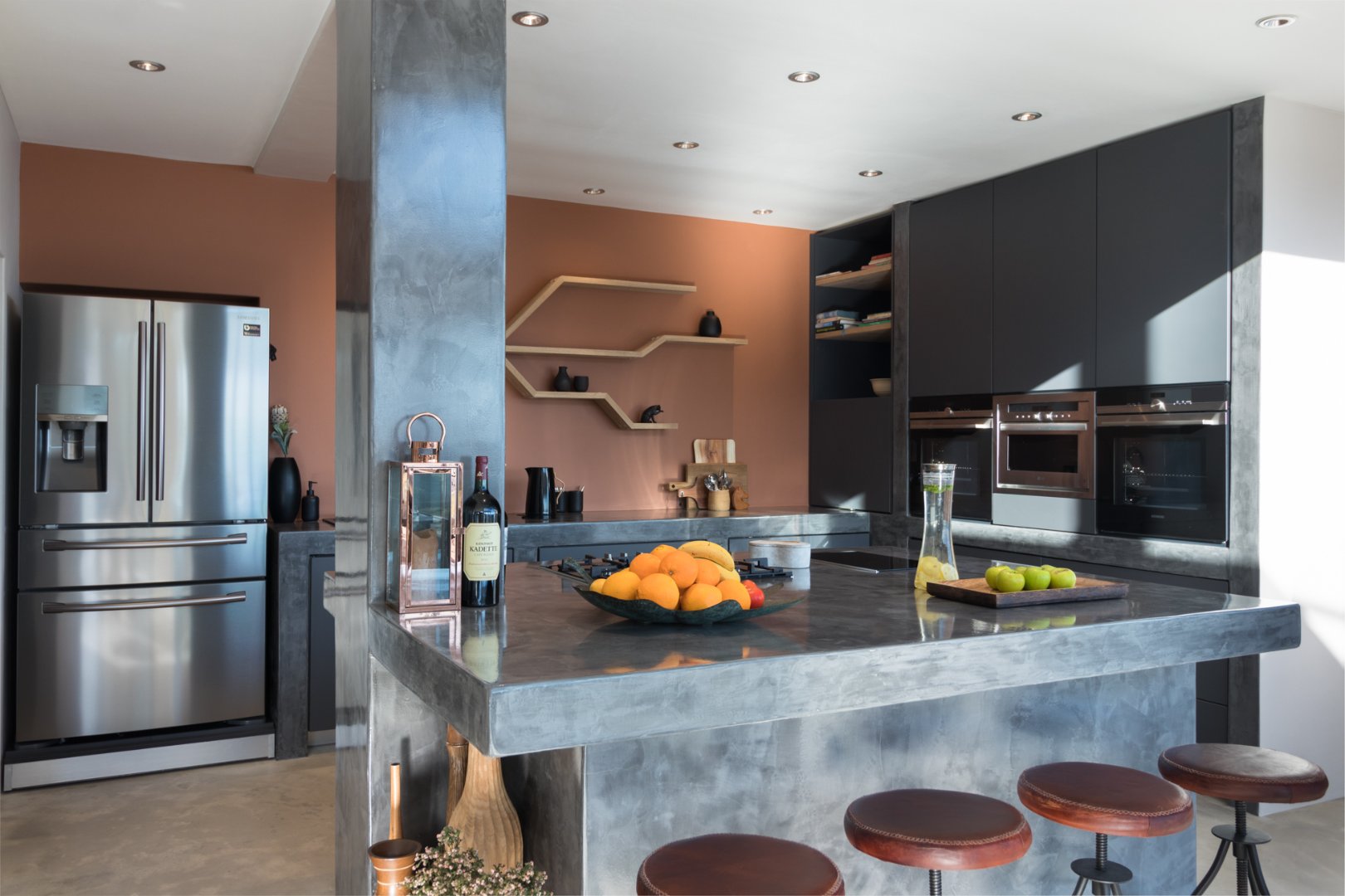 The main residence features expansive double-volume open-plan living areas, framed by vast glass panels that blur the boundaries between indoors and outdoors. The seamless flow connects the lounge, dining area, and designer kitchen to entertainment decks that invite the outdoors in. A separate scullery and laundry complete the functional elegance of this space.