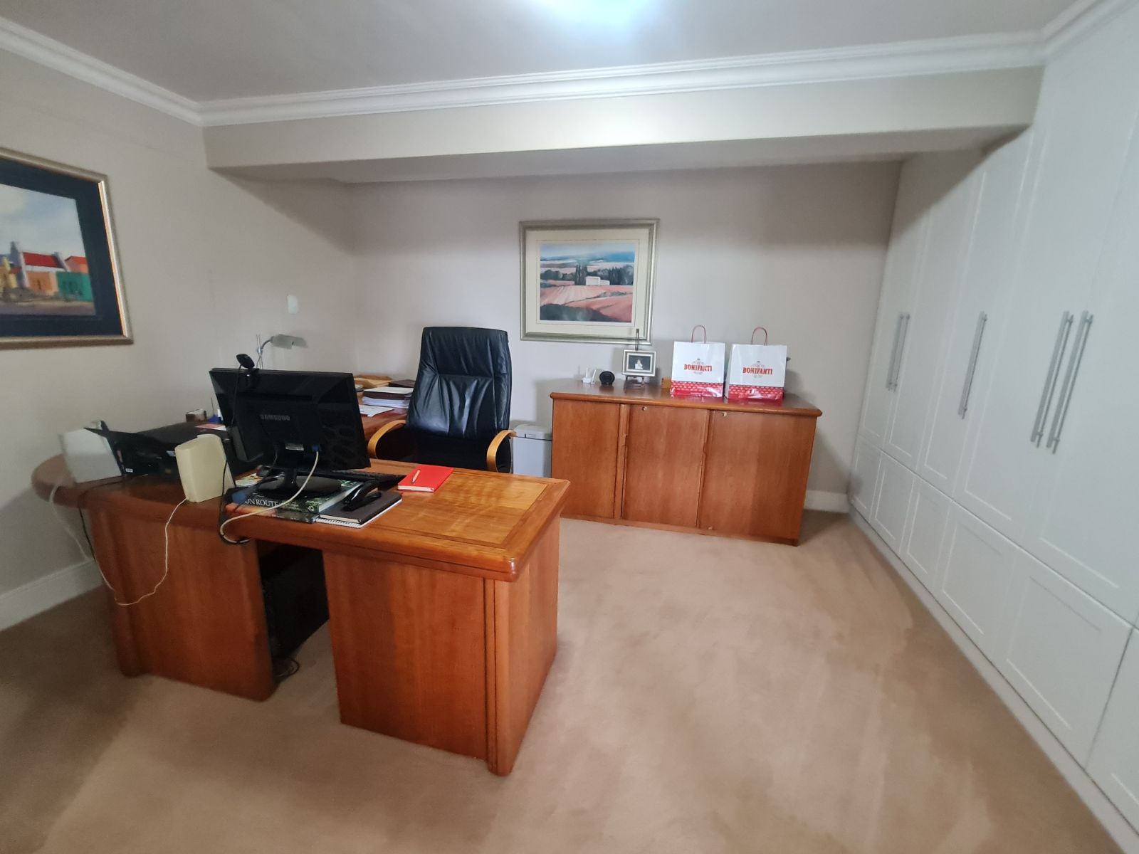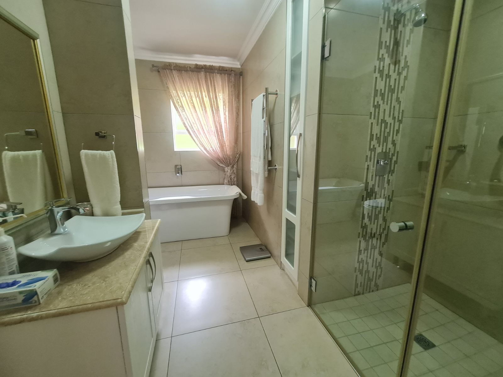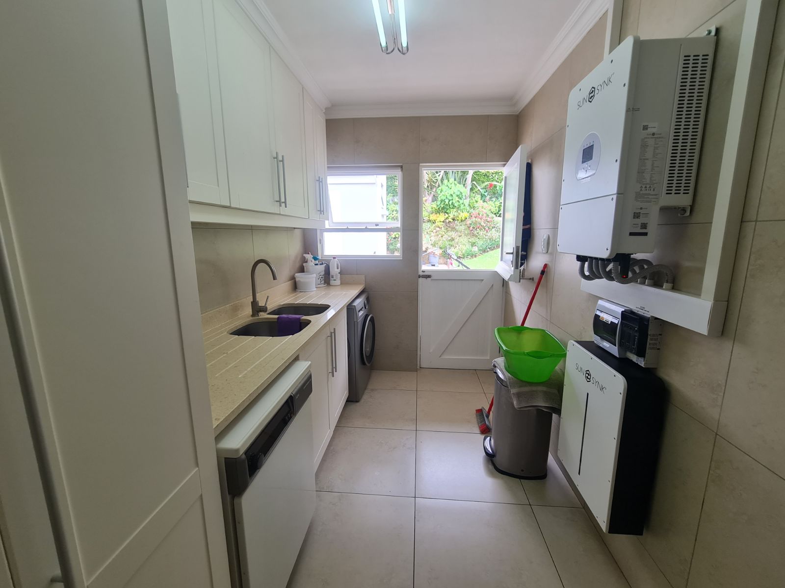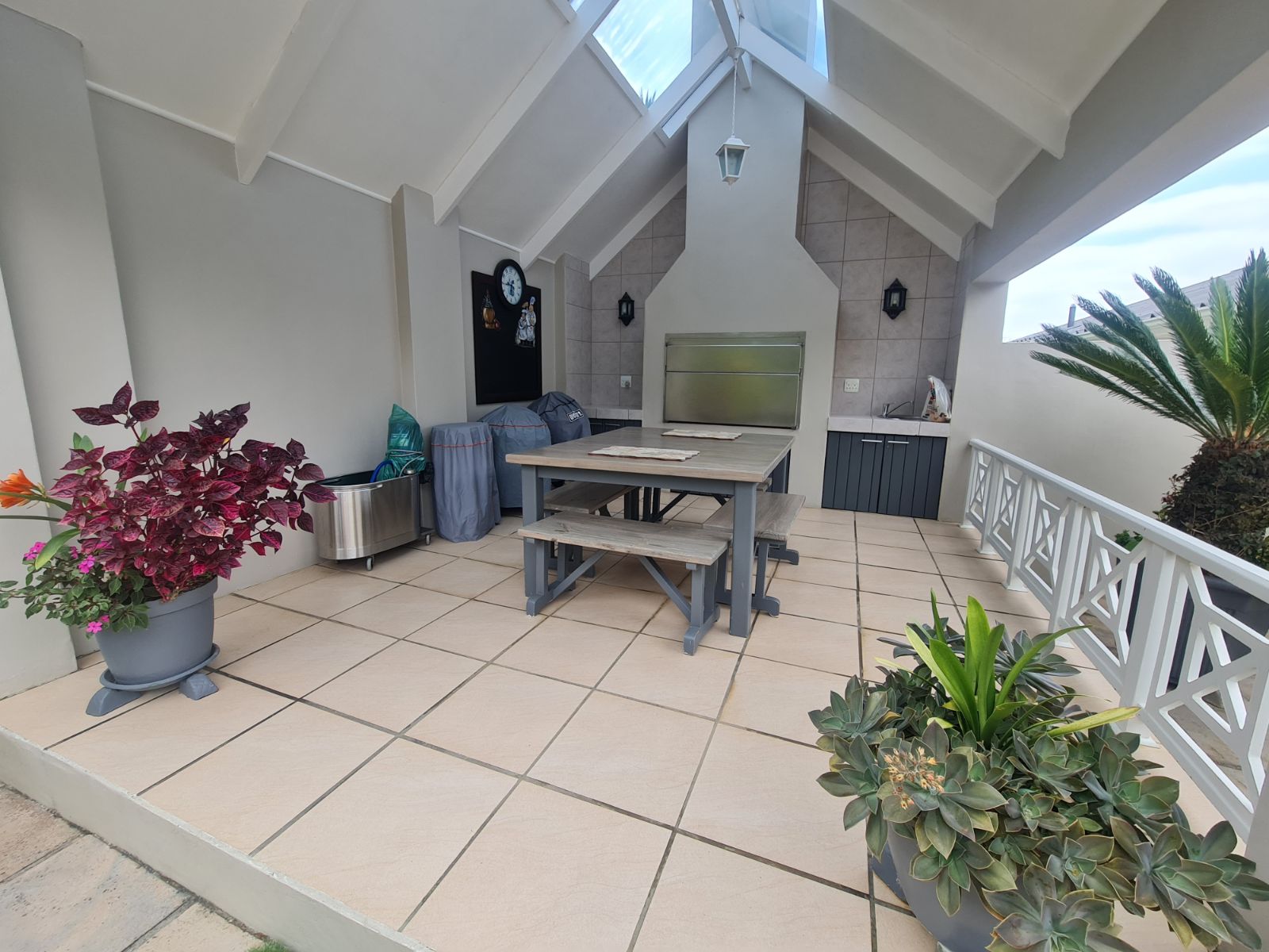 The beautifully landscaped garden serves as the backdrop to a covered entertainment area featuring a built-in braai (barbecue), perfect for hosting gatherings. Whether enjoying alfresco dining or simply unwinding in the serenity of nature, this space embodies effortless elegance.