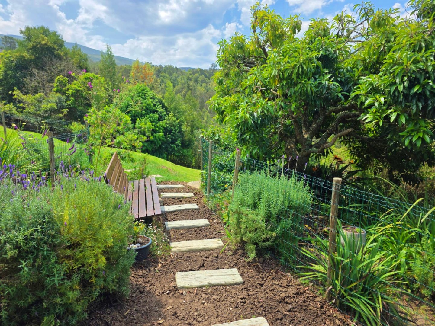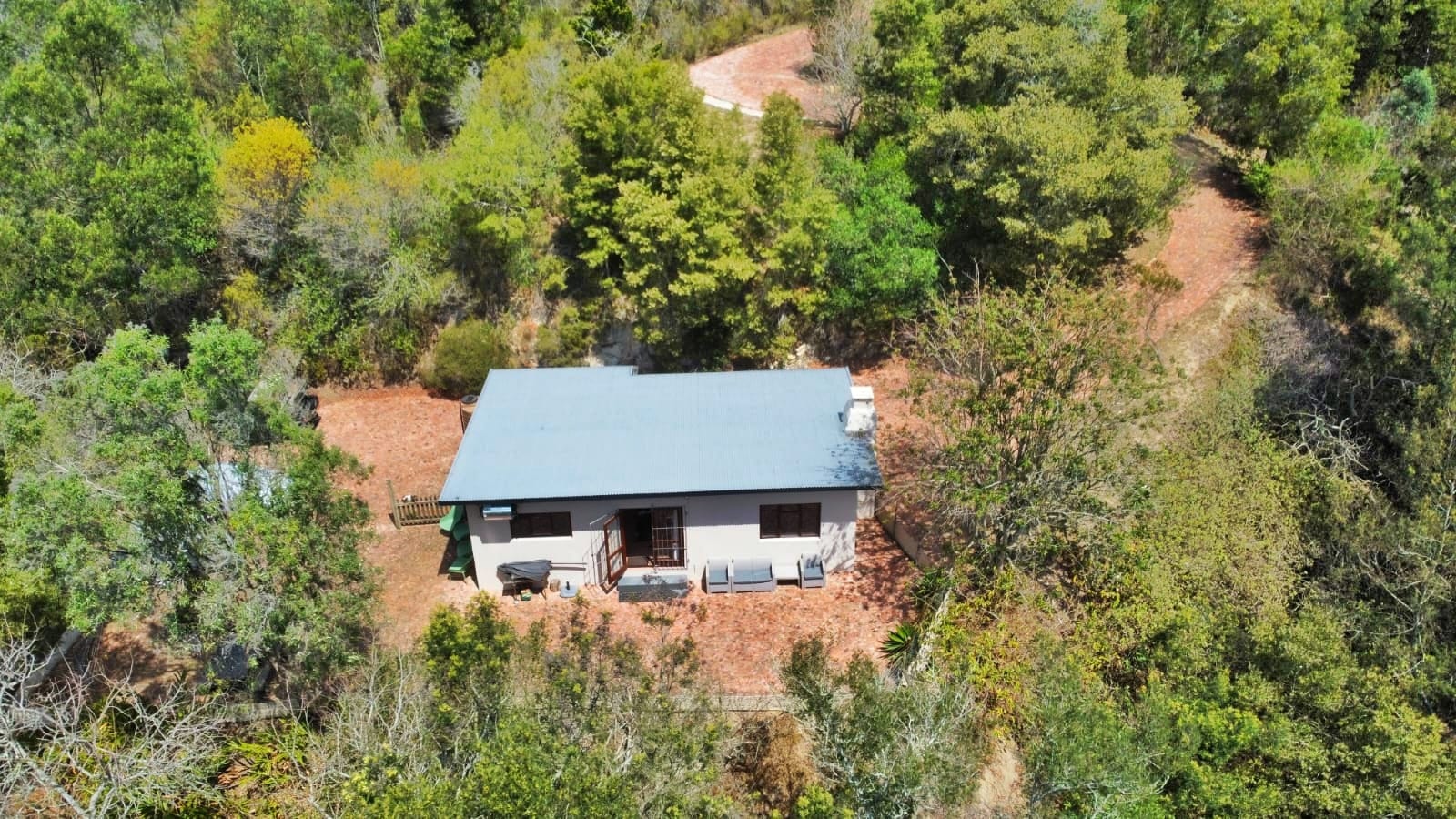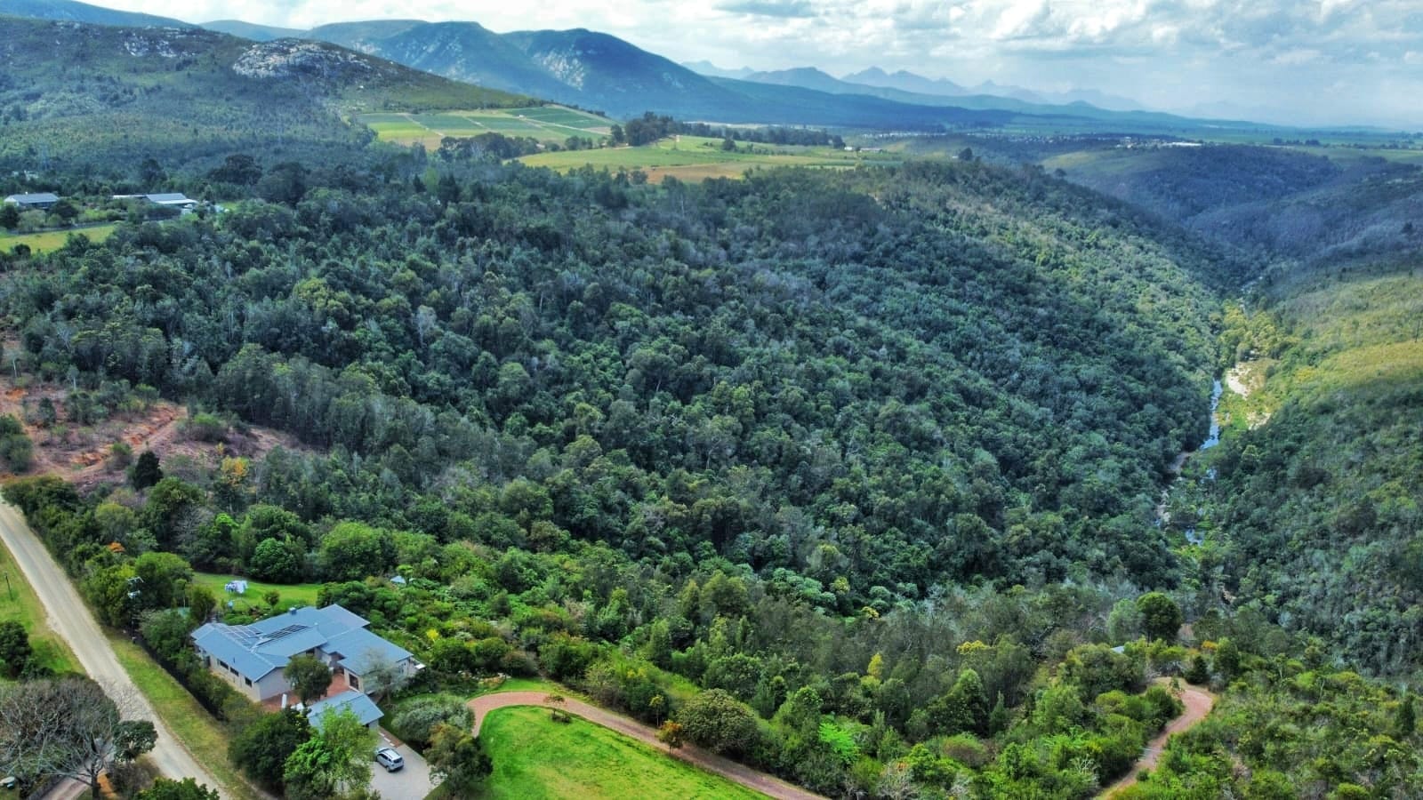 The upper portion of the nearly 10-hectare property is neatly fenced and beautifully maintained, while a paved road meanders down to a fully renovated two-bedroom cottage — ideal for guests, extended family, or income potential — complete with its own paved garden and forest views. Further below, a well-kept gravel road winds through untouched indigenous forest to the river, where secluded swimming holes offer magical spots for summer days and quiet reflection.
