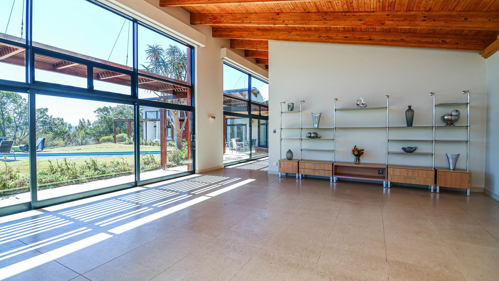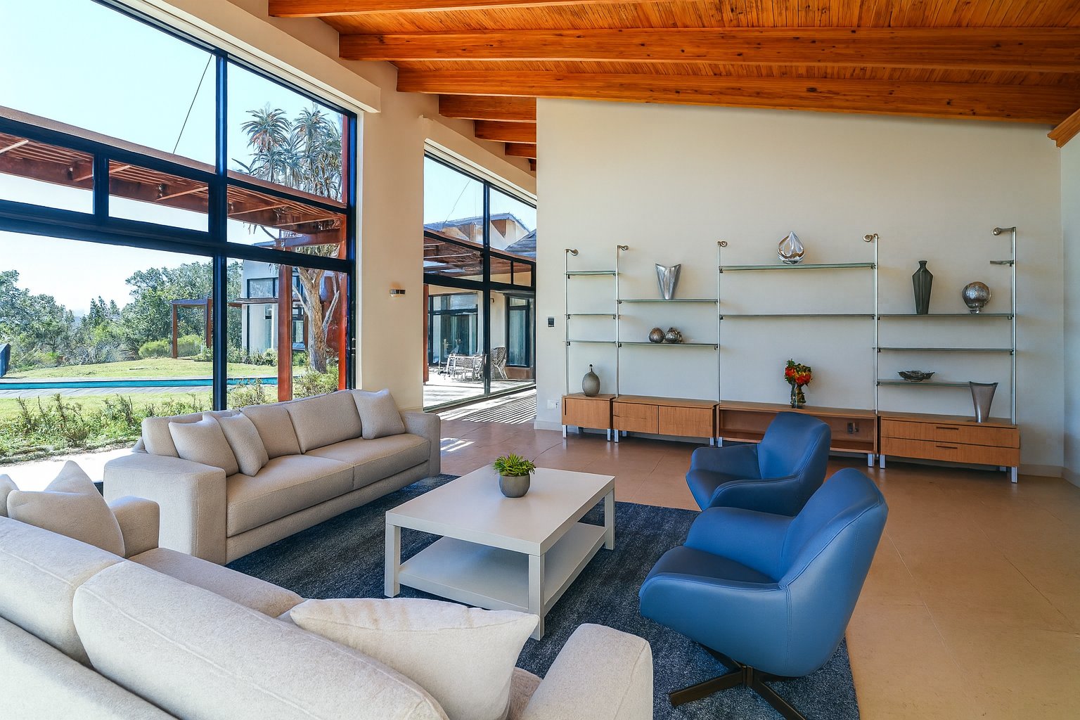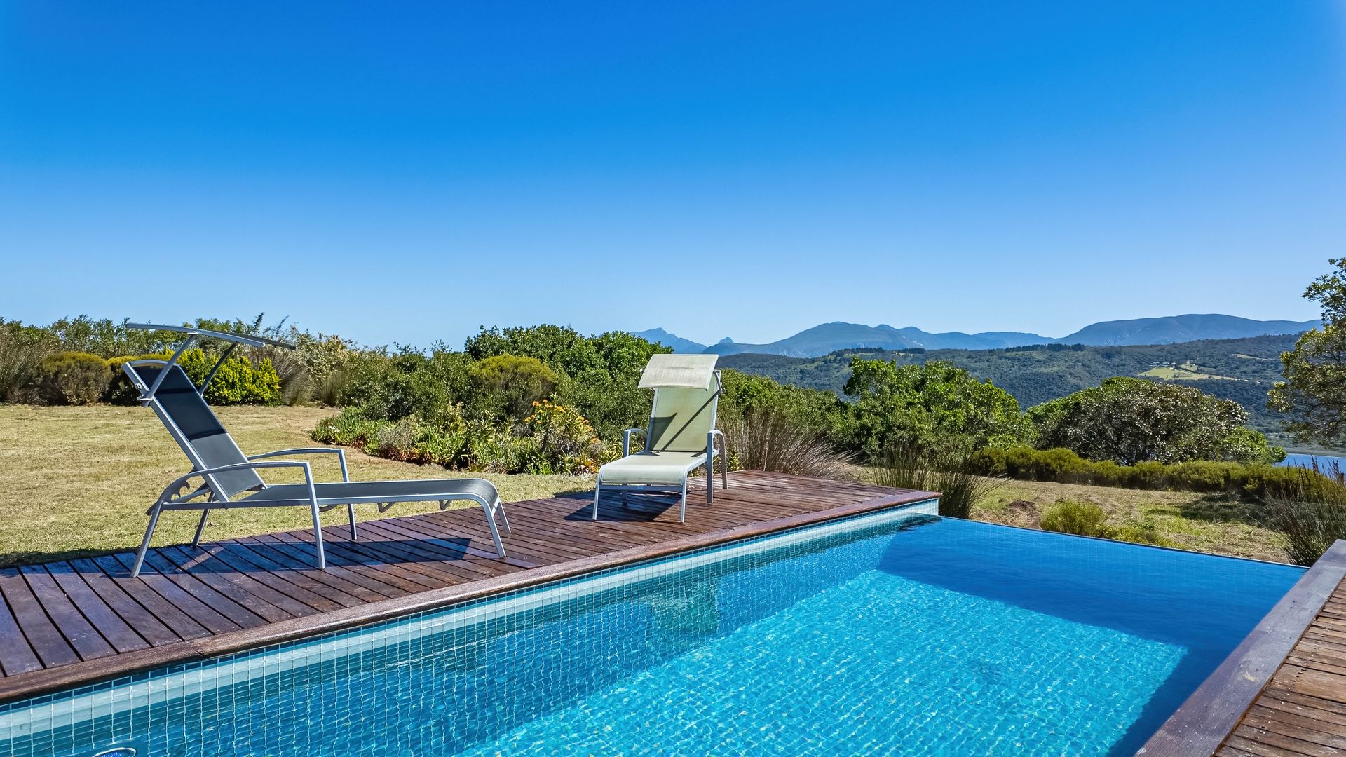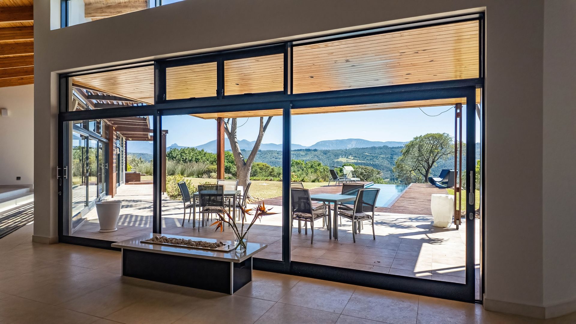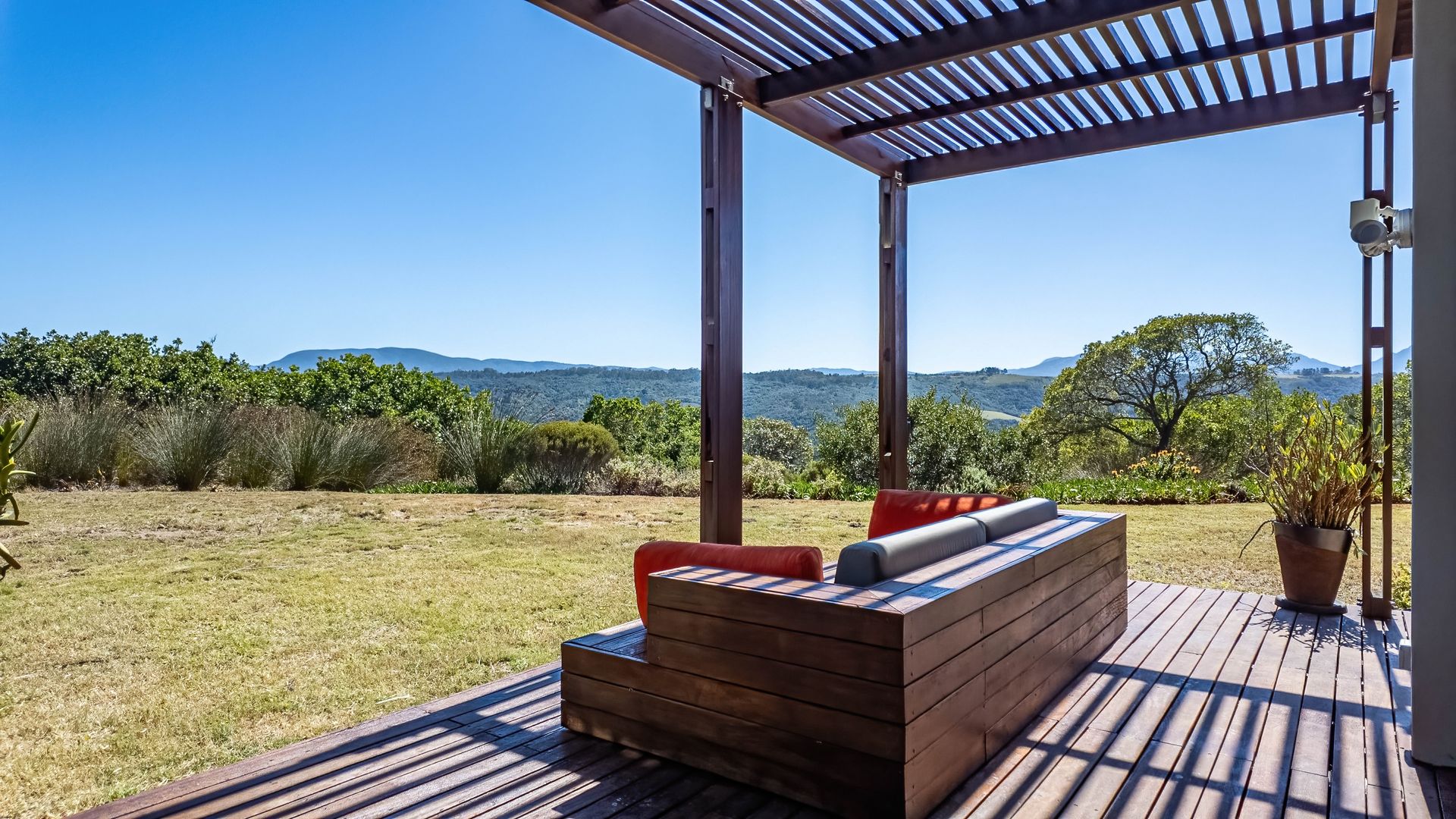 Between Sedgefield and Wilderness lies a truly remarkable 8.7-hectare retreat, where sweeping views of the Outeniqua Mountains and shimmering lakes meet the quiet beauty of natural fynbos. At its heart stands a 540m2 home – elegant, contemporary, and designed to bring nature right into its living spaces.