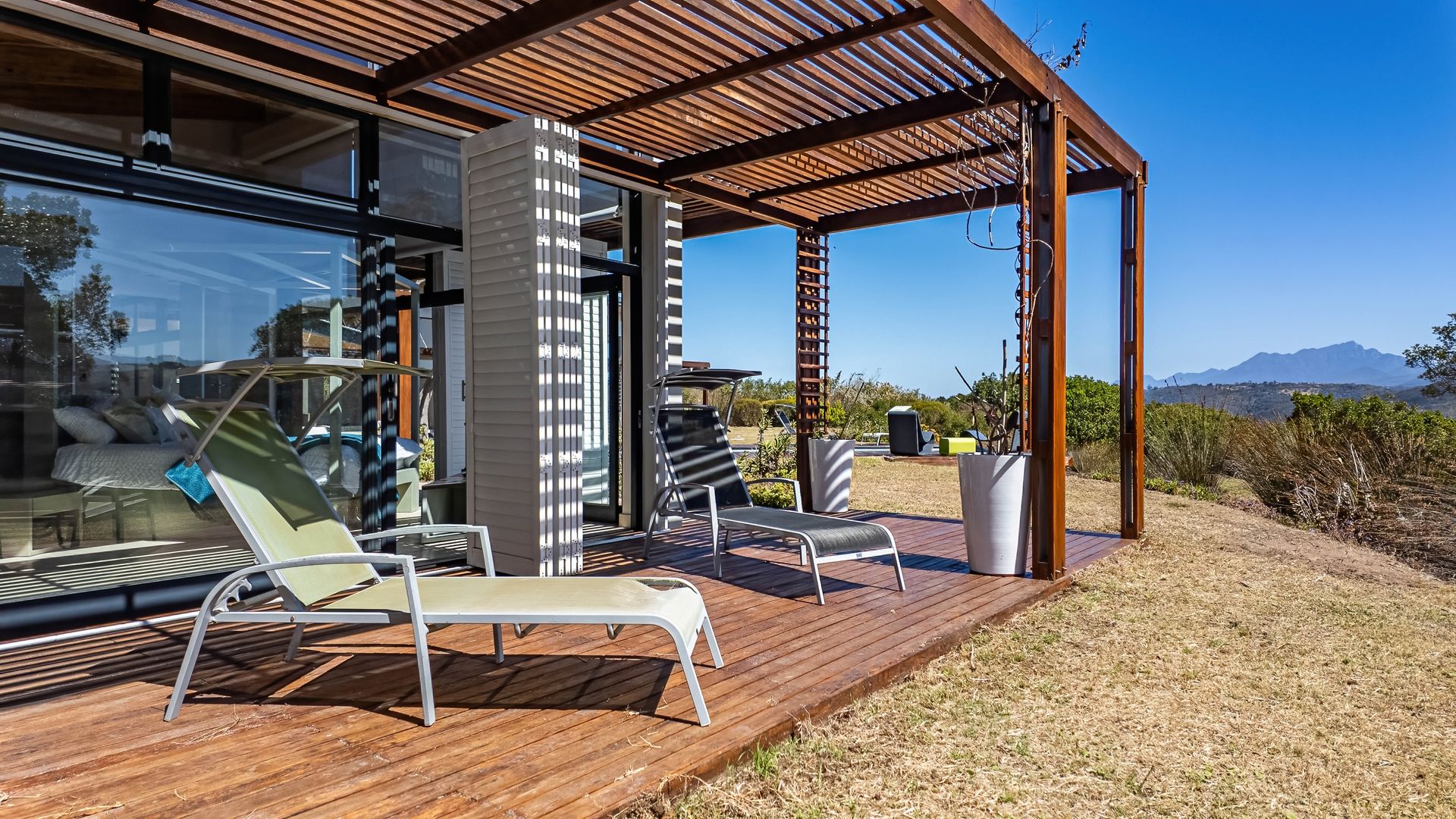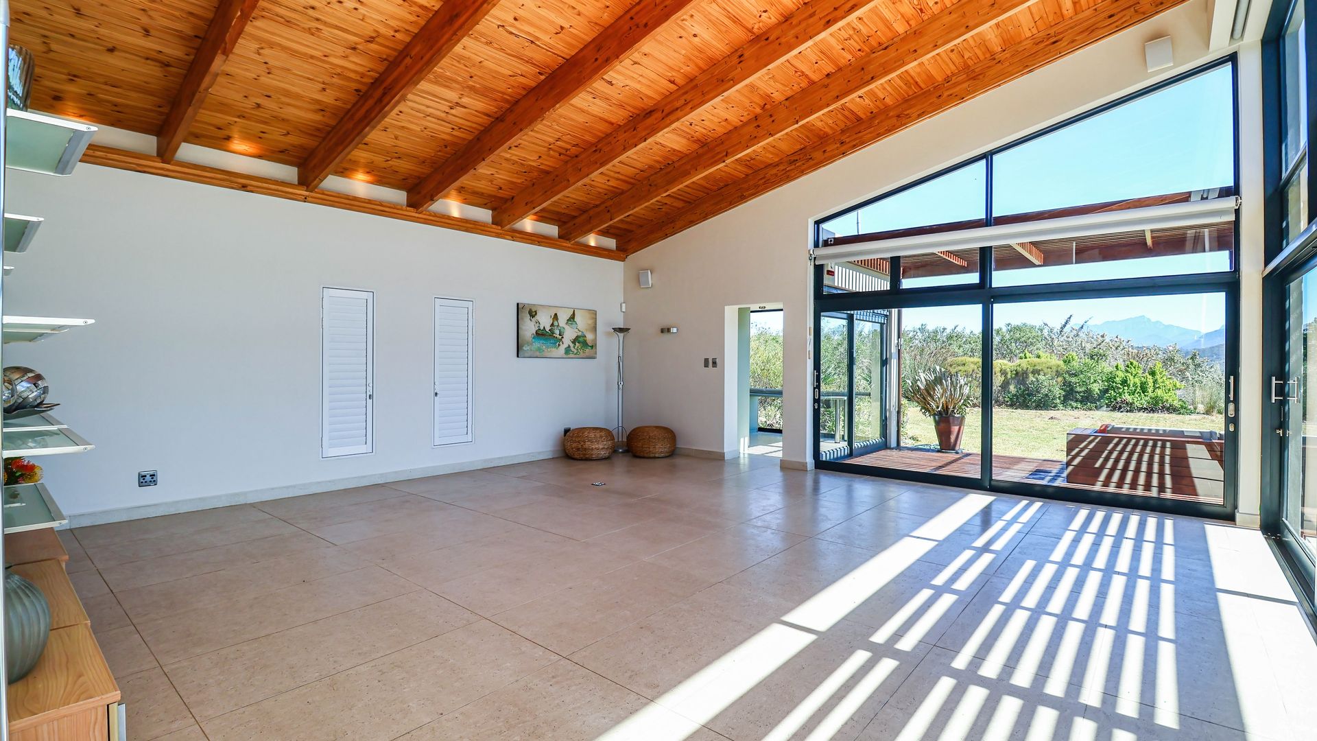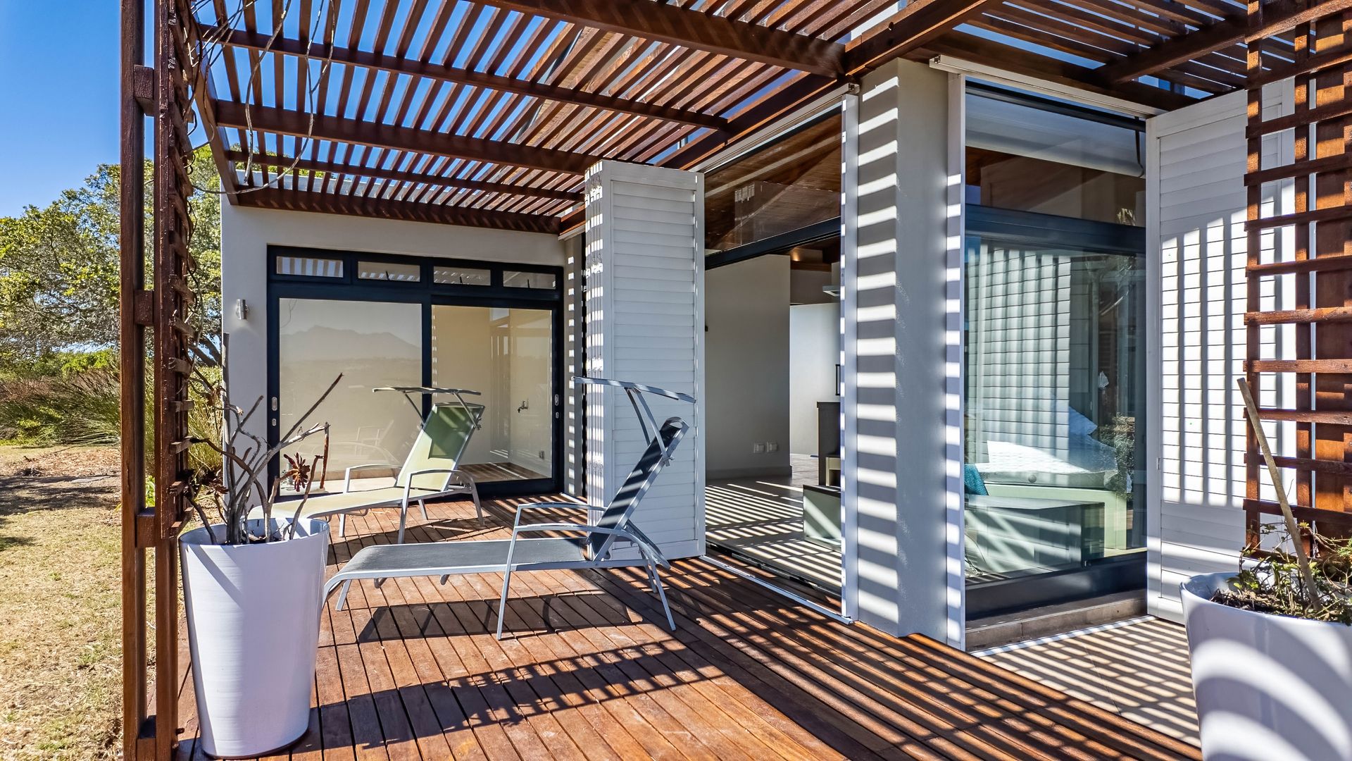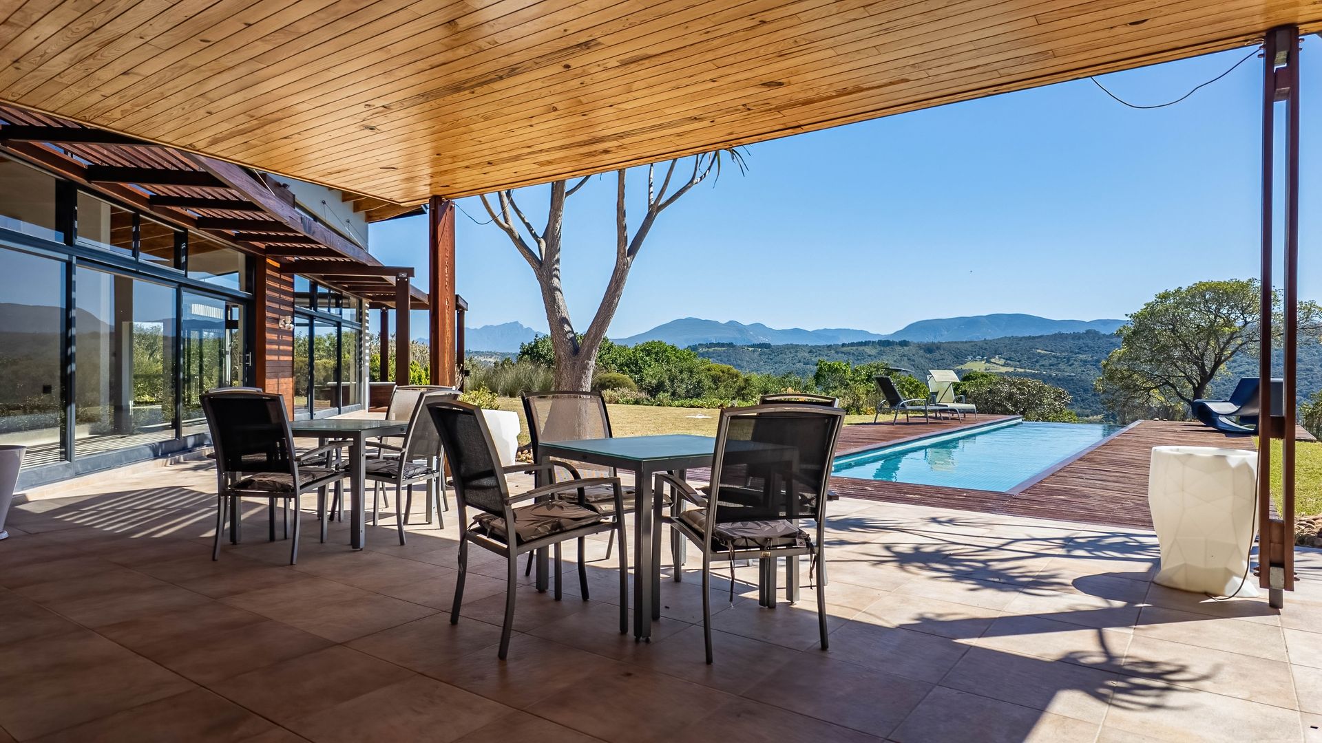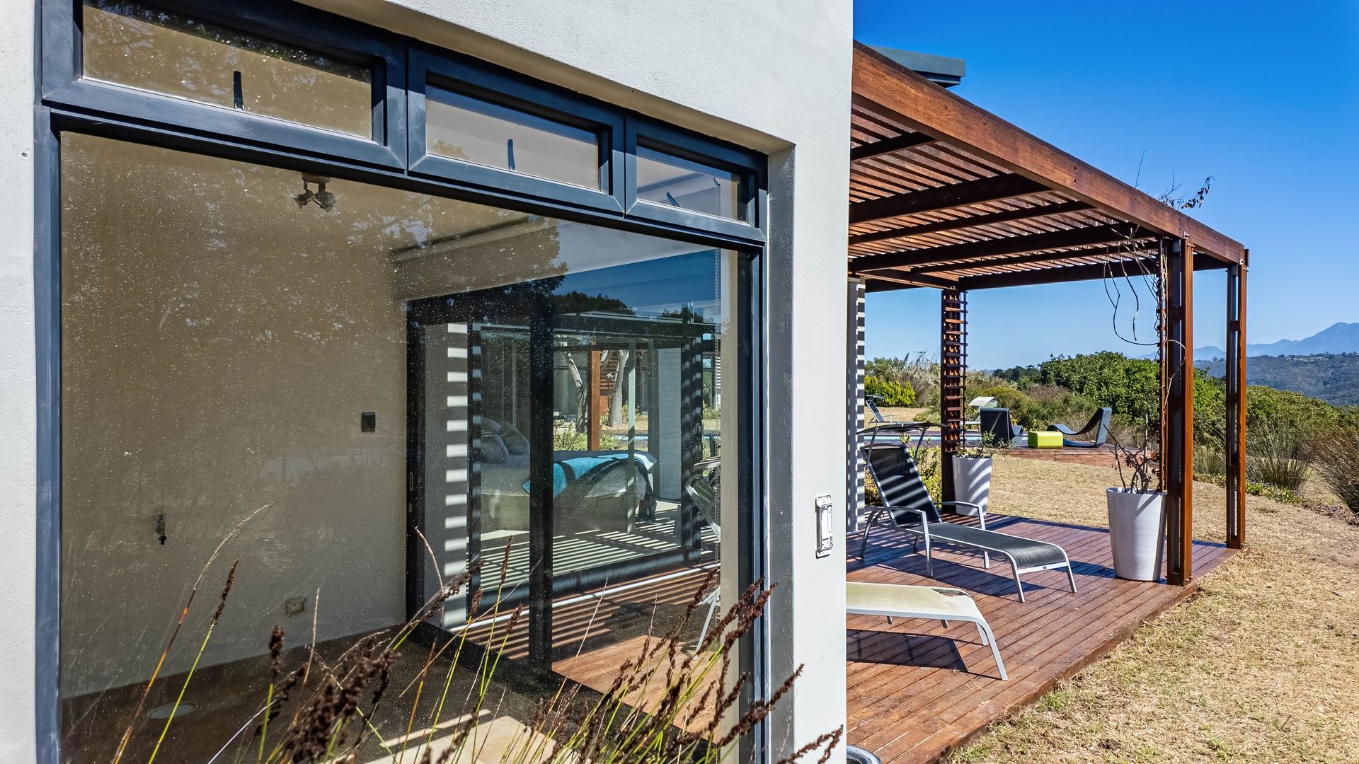 Between Sedgefield and Wilderness lies a truly remarkable 8.7-hectare retreat, where sweeping views of the Outeniqua Mountains and shimmering lakes meet the quiet beauty of natural fynbos. At its heart stands a 540m2 home – elegant, contemporary, and designed to bring nature right into its living spaces.