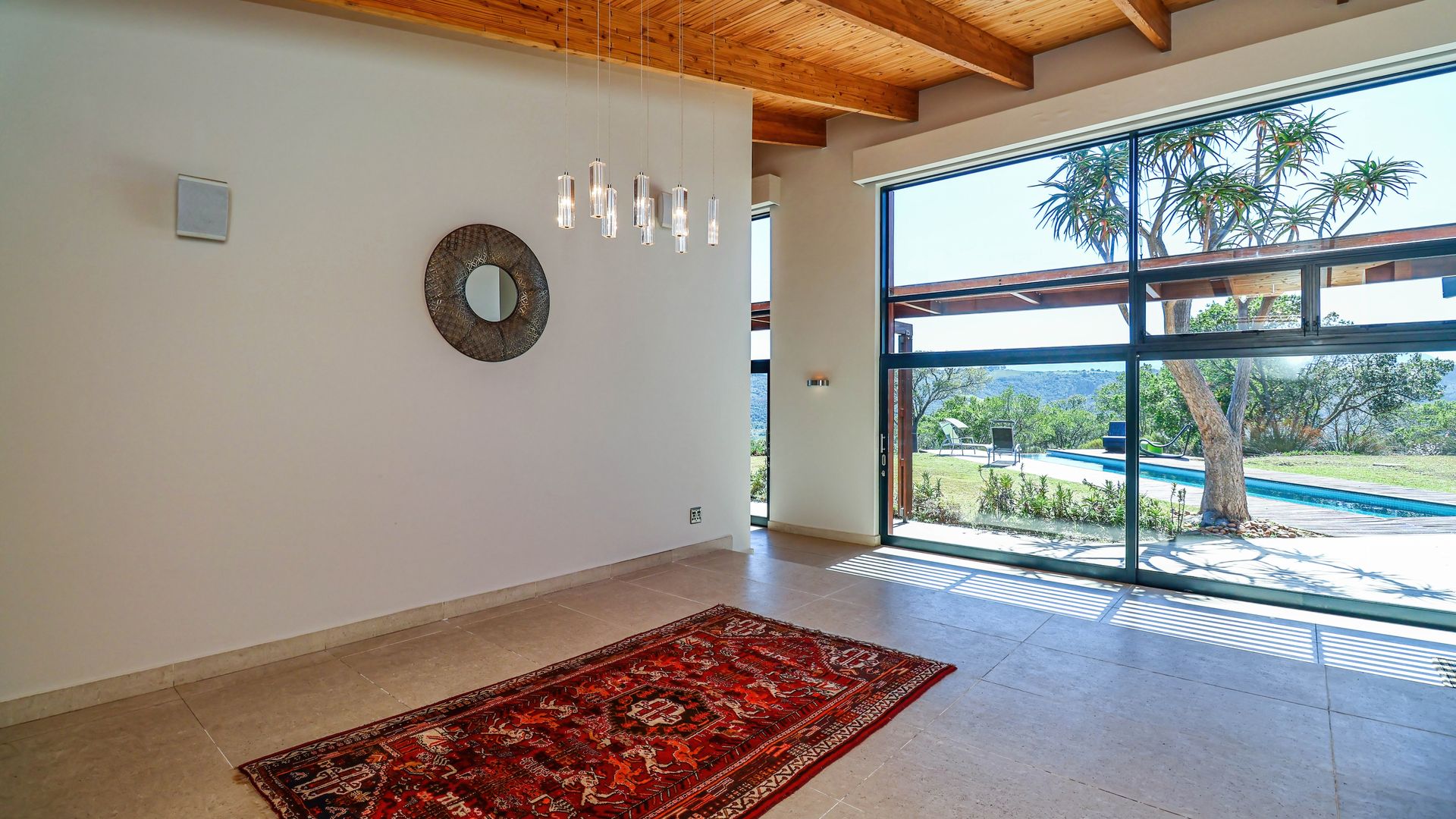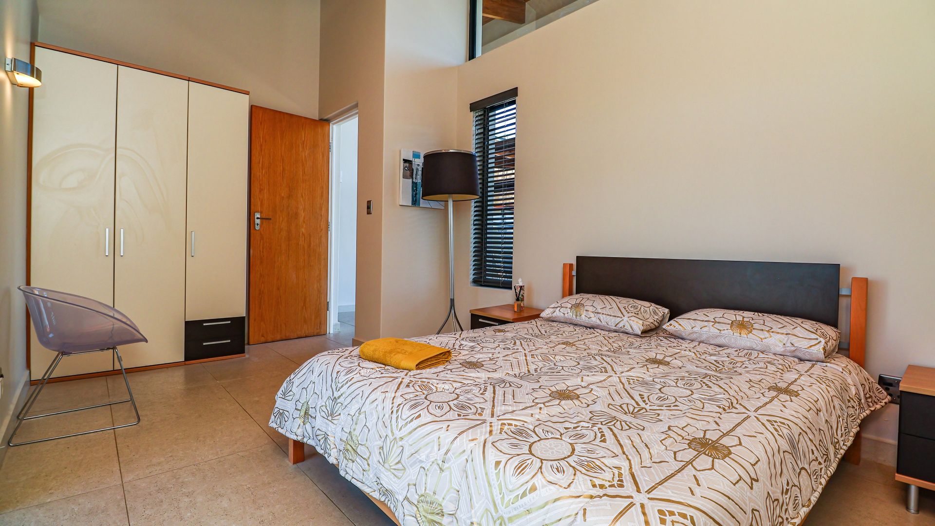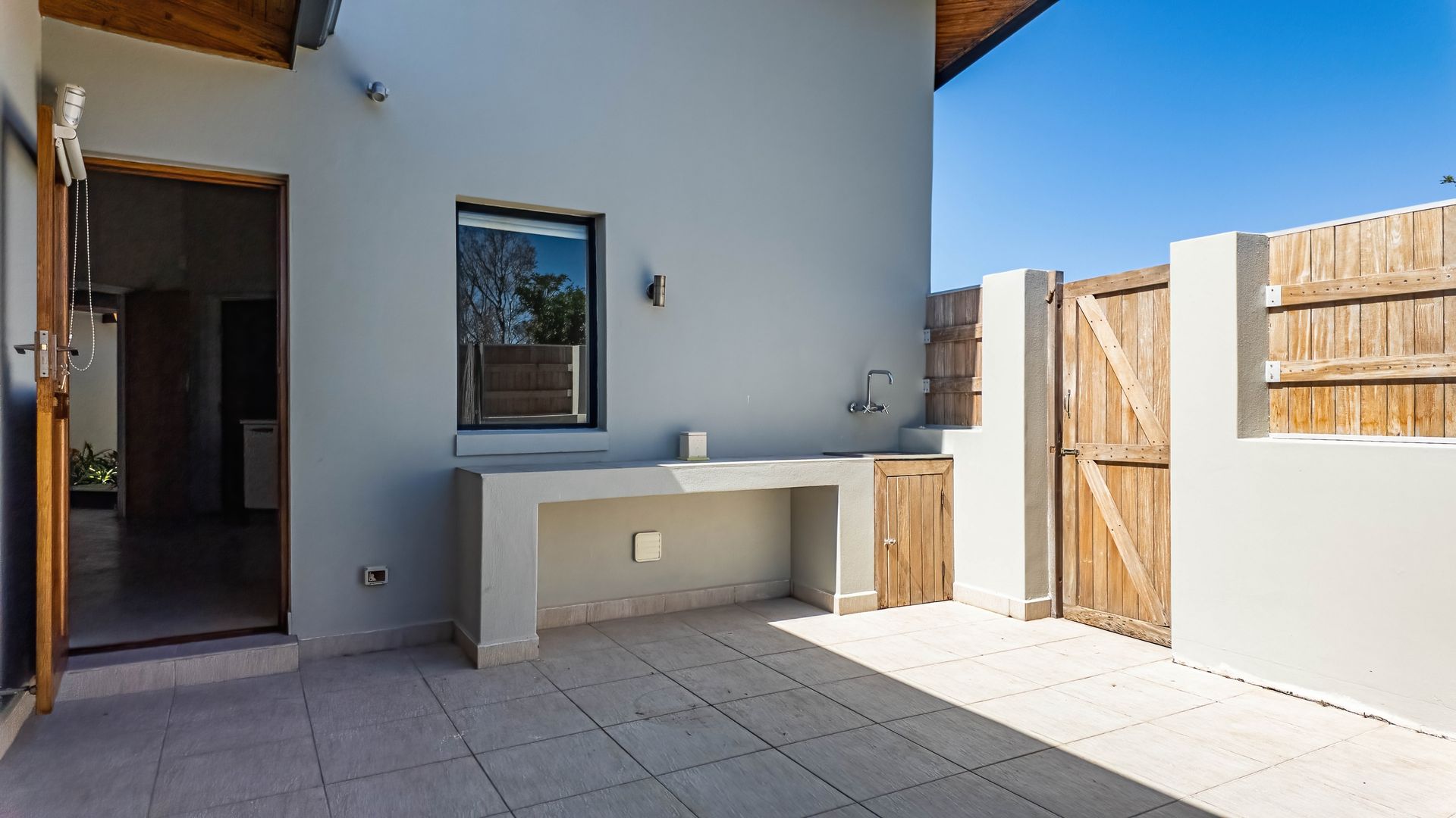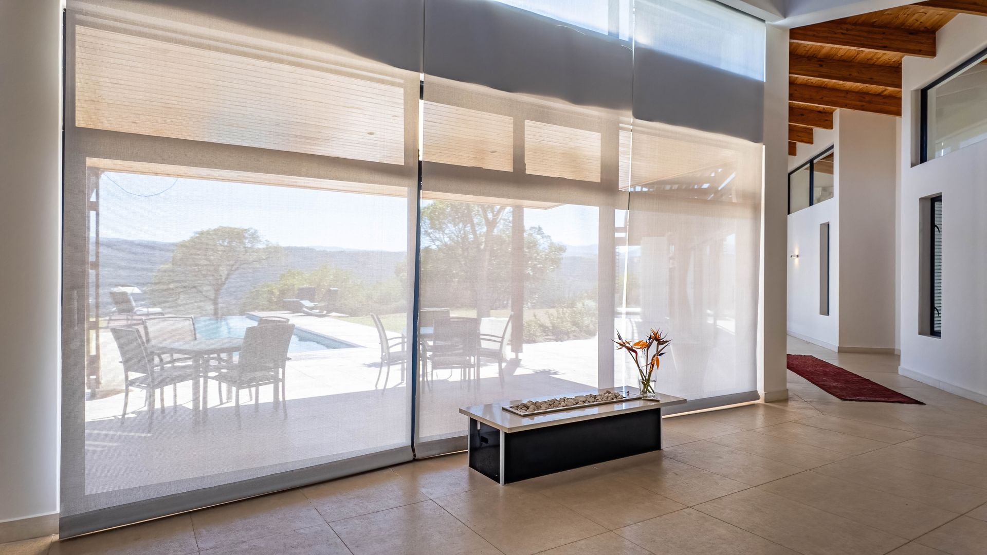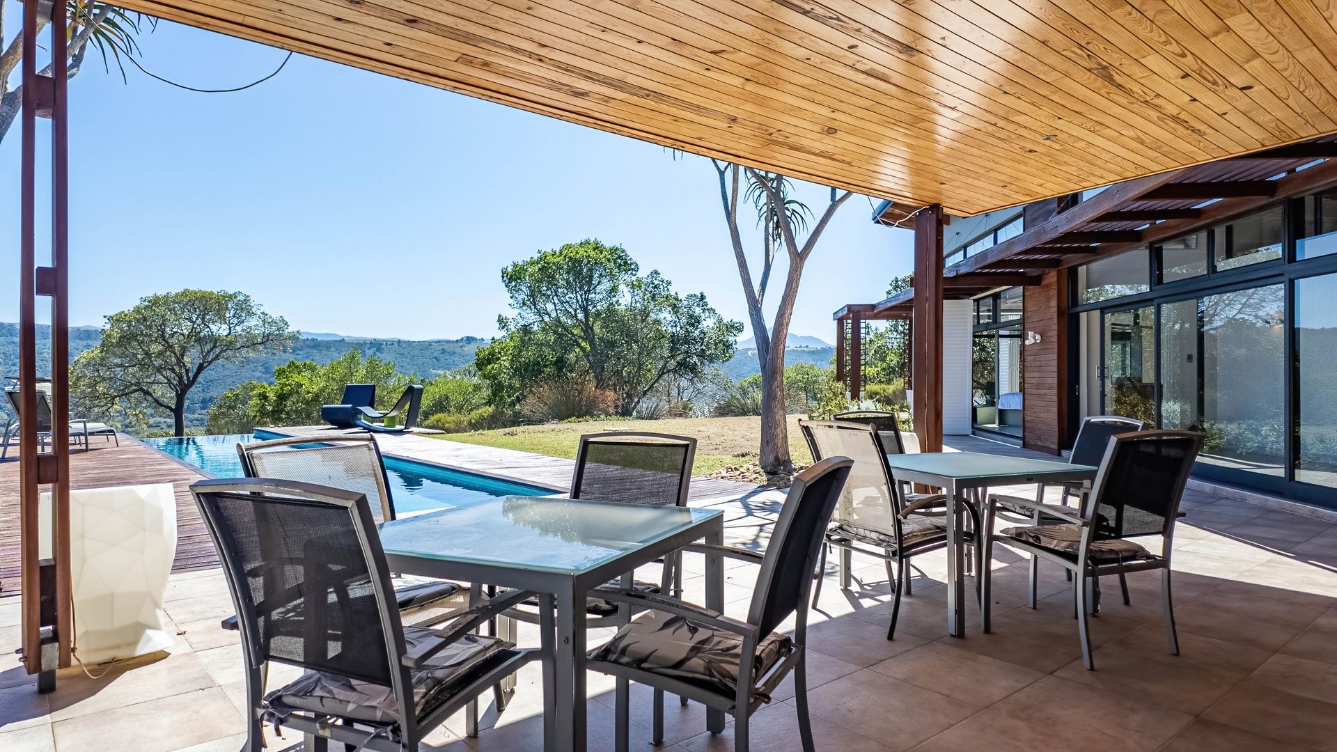 Every detail has been carefully chosen for comfort and convenience. Granite floor tiles with underfloor heating run throughout the house. Expansive windows draw in the northern sun, while motorized blinds offer effortless privacy at the touch of a button. The indigenous gardens are water-wise yet lush, supported by an automated irrigation system and advanced water infrastructure – from a borehole with full filtration to a large rainwater reservoir and reverse osmosis system inside the home.
