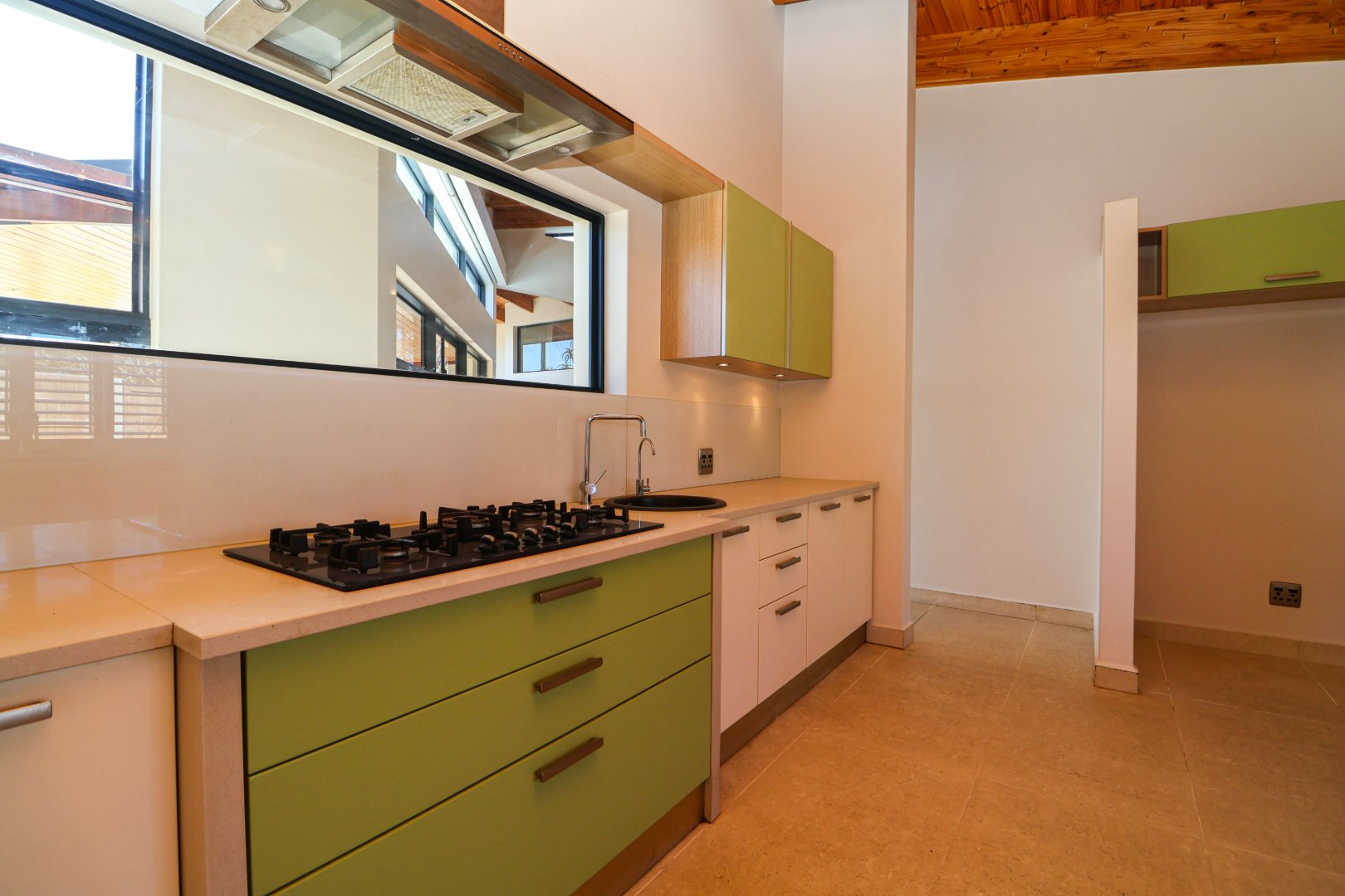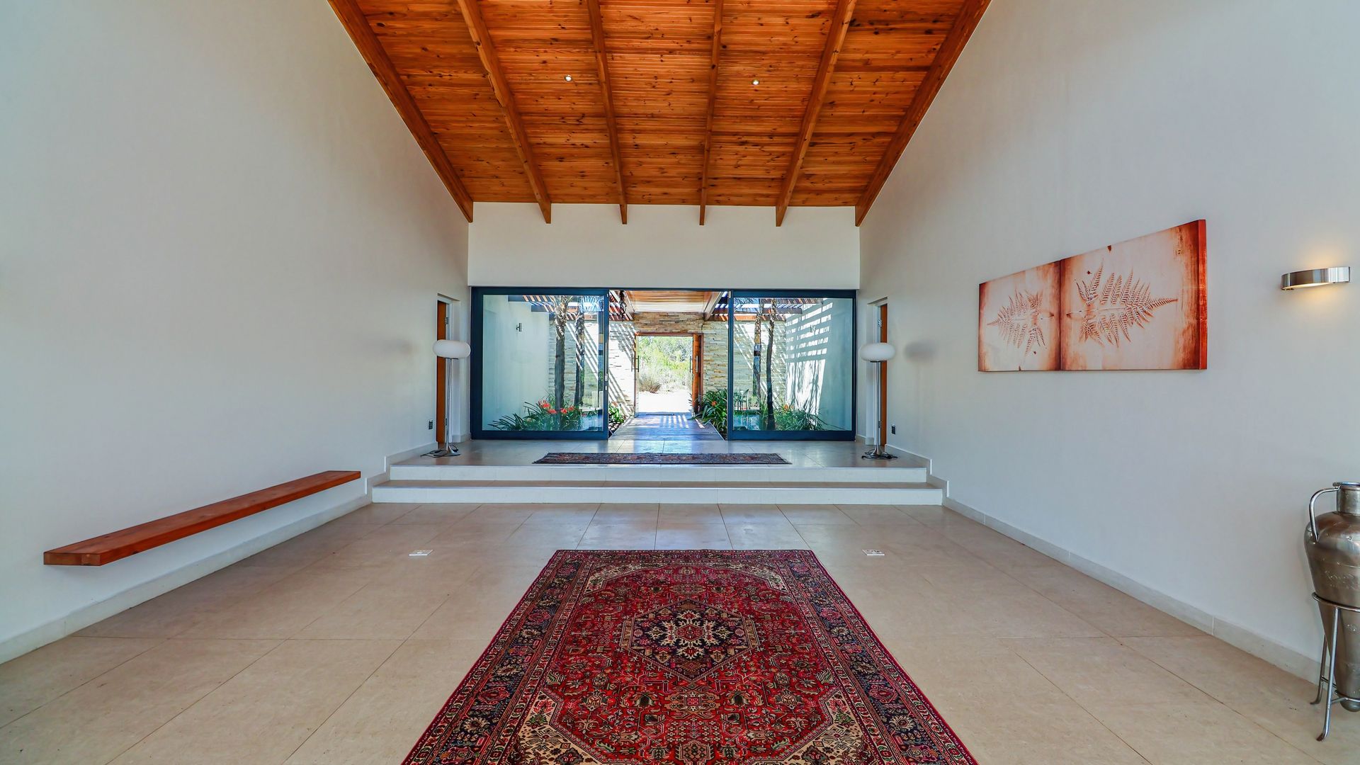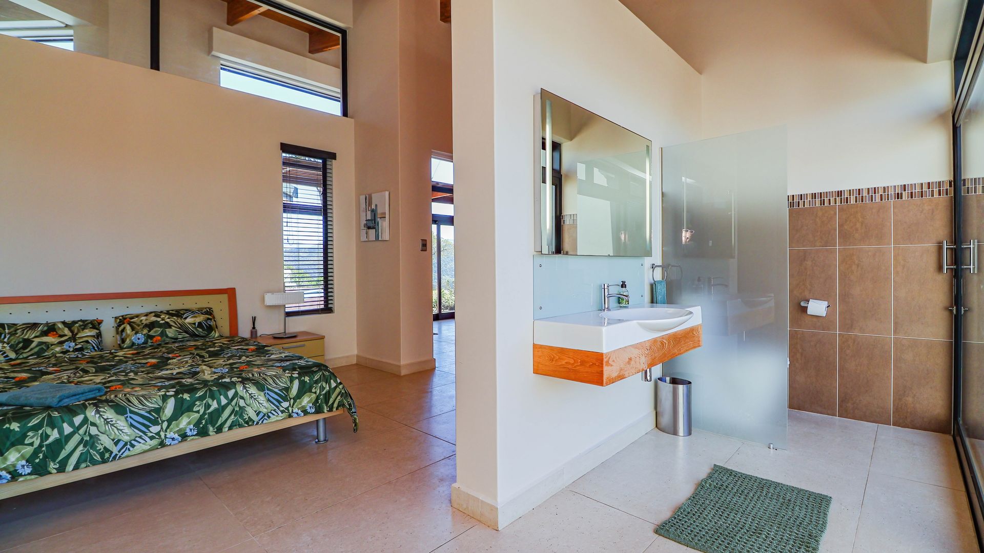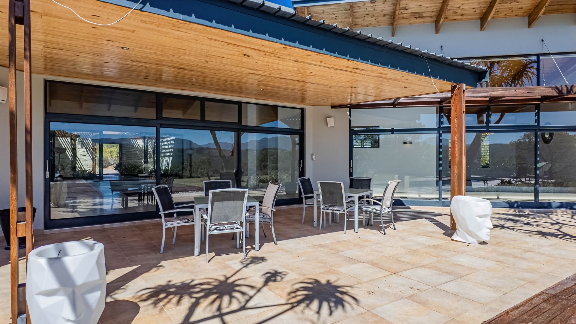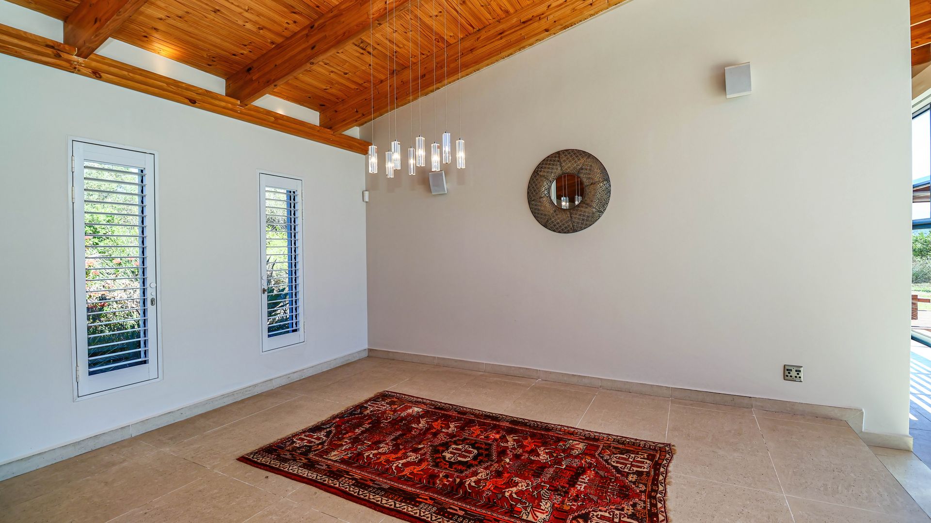 Every detail has been carefully chosen for comfort and convenience. Granite floor tiles with underfloor heating run throughout the house. Expansive windows draw in the northern sun, while motorized blinds offer effortless privacy at the touch of a button. The indigenous gardens are water-wise yet lush, supported by an automated irrigation system and advanced water infrastructure – from a borehole with full filtration to a large rainwater reservoir and reverse osmosis system inside the home.