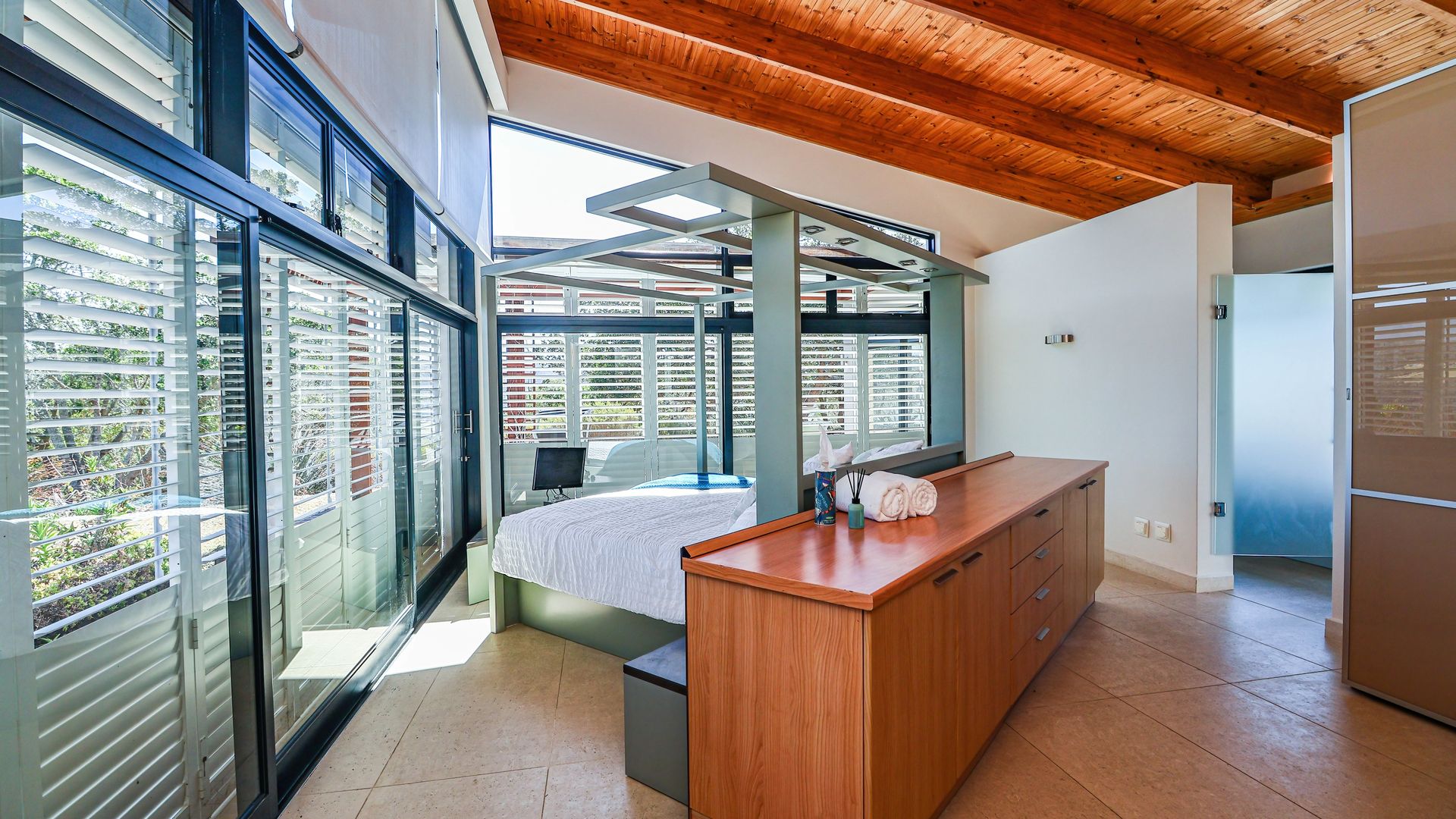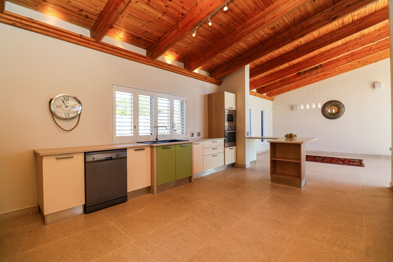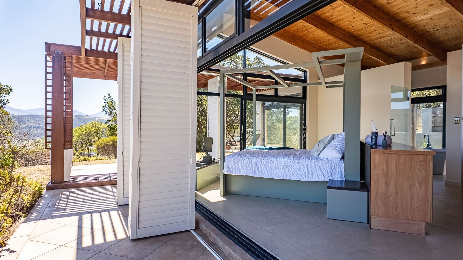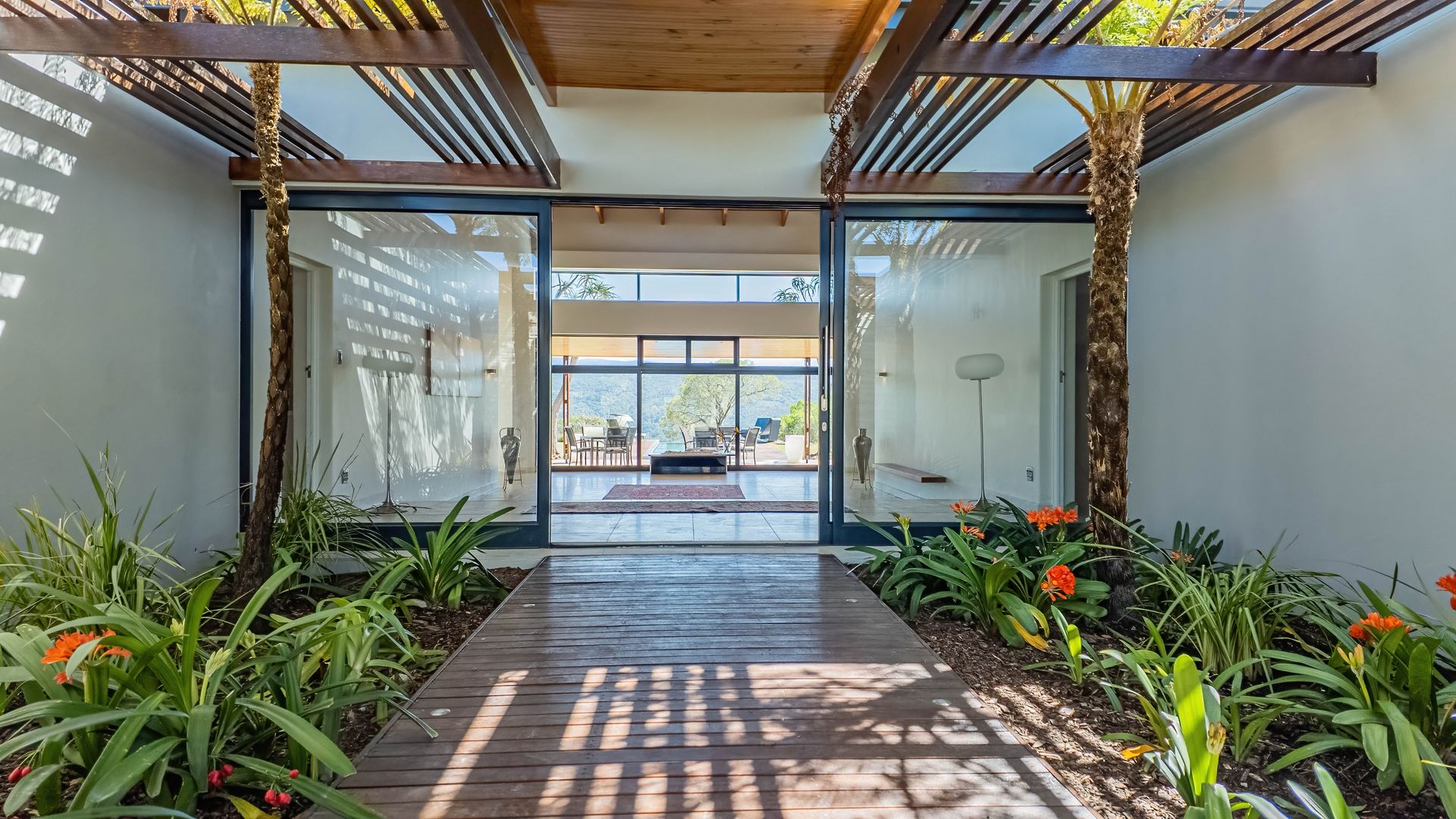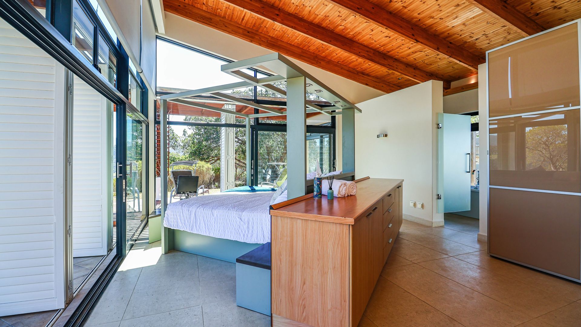 Every detail has been carefully chosen for comfort and convenience. Granite floor tiles with underfloor heating run throughout the house. Expansive windows draw in the northern sun, while motorized blinds offer effortless privacy at the touch of a button. The indigenous gardens are water-wise yet lush, supported by an automated irrigation system and advanced water infrastructure – from a borehole with full filtration to a large rainwater reservoir and reverse osmosis system inside the home.