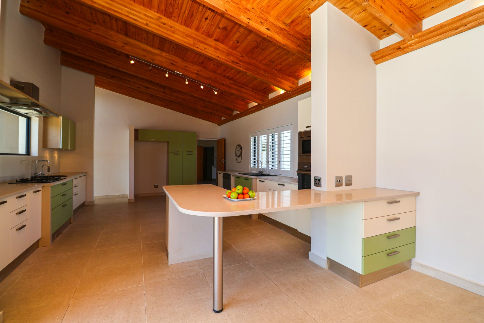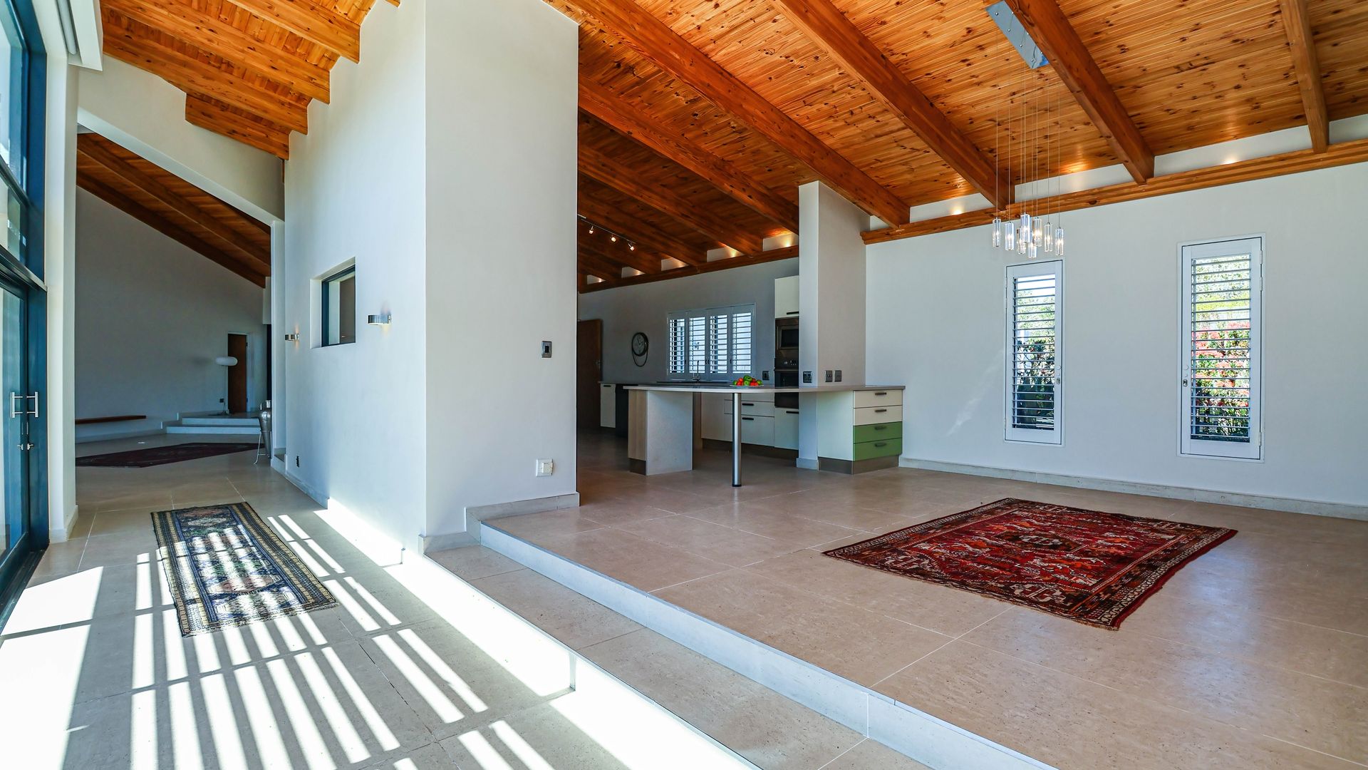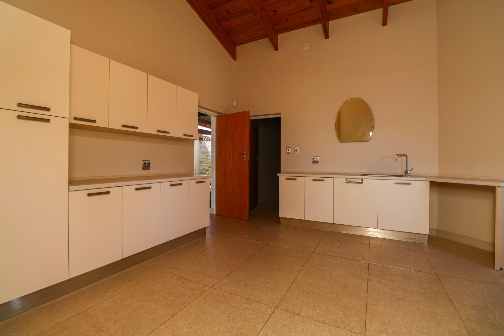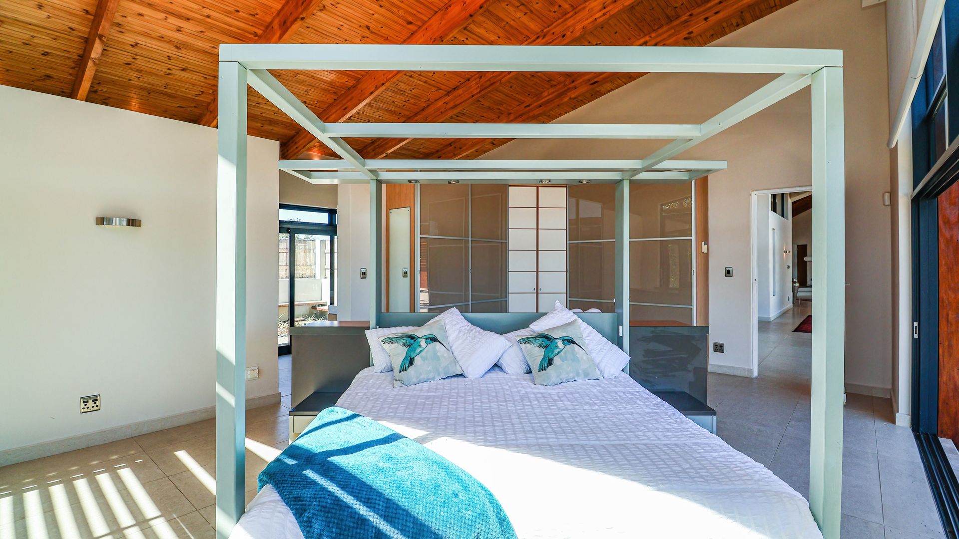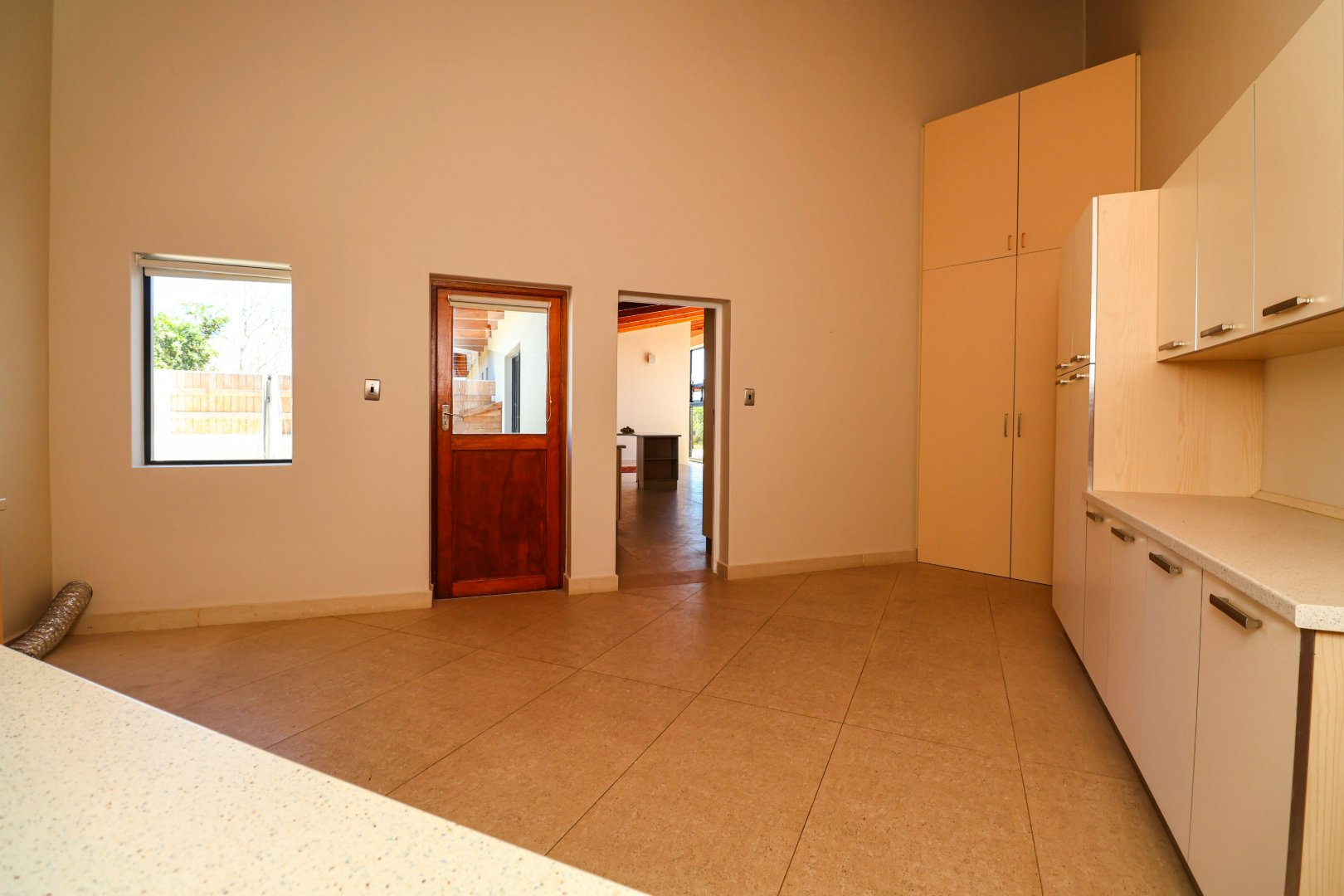 Every detail has been carefully chosen for comfort and convenience. Granite floor tiles with underfloor heating run throughout the house. Expansive windows draw in the northern sun, while motorized blinds offer effortless privacy at the touch of a button. The indigenous gardens are water-wise yet lush, supported by an automated irrigation system and advanced water infrastructure – from a borehole with full filtration to a large rainwater reservoir and reverse osmosis system inside the home.