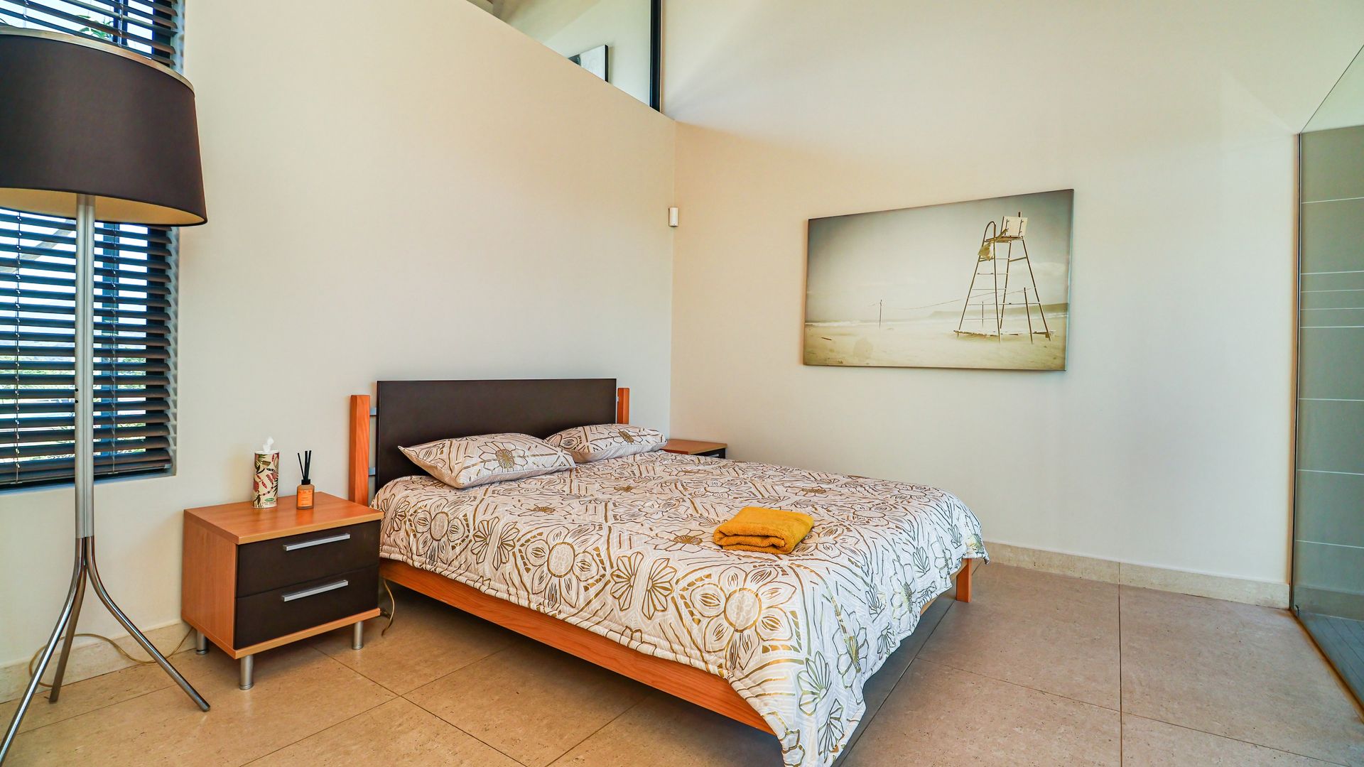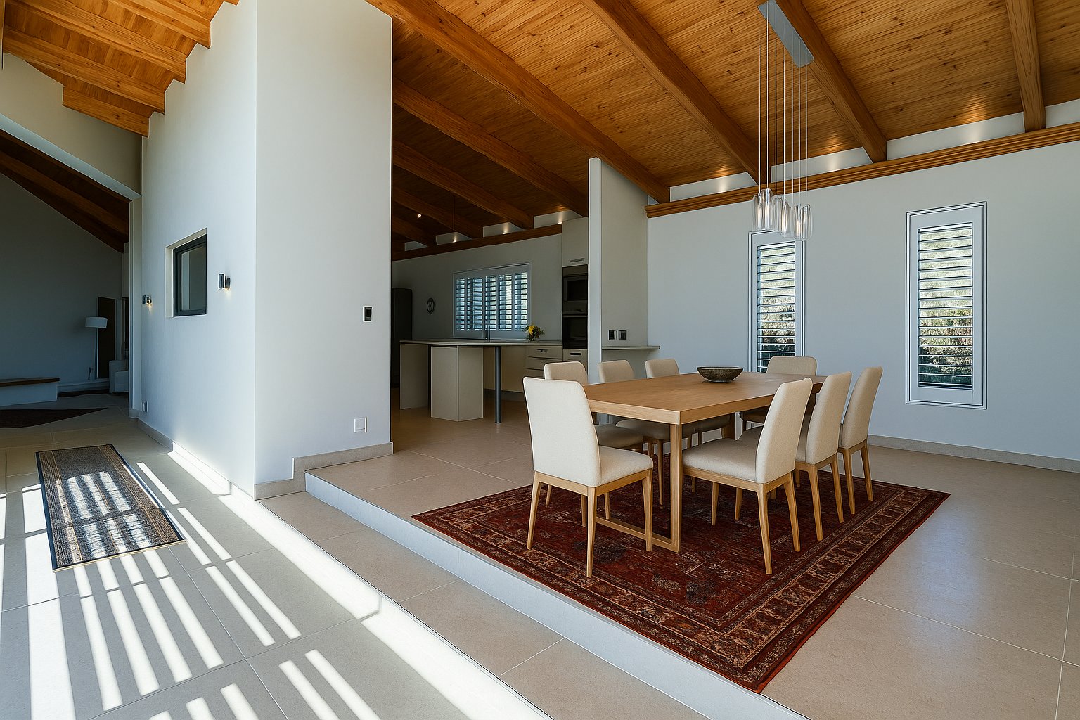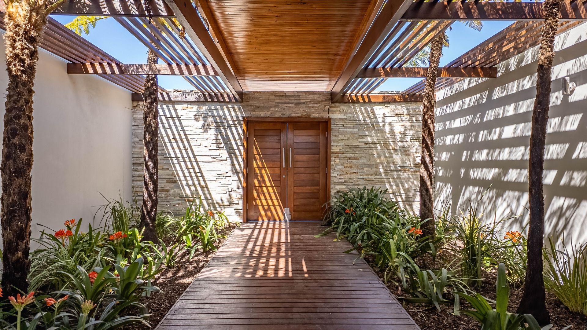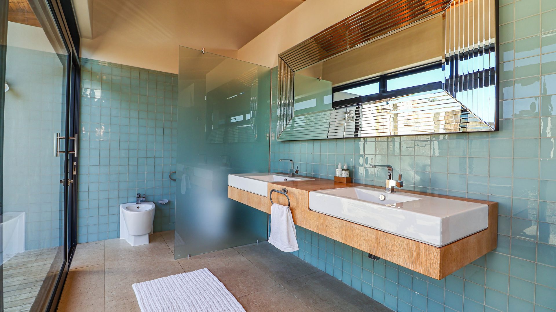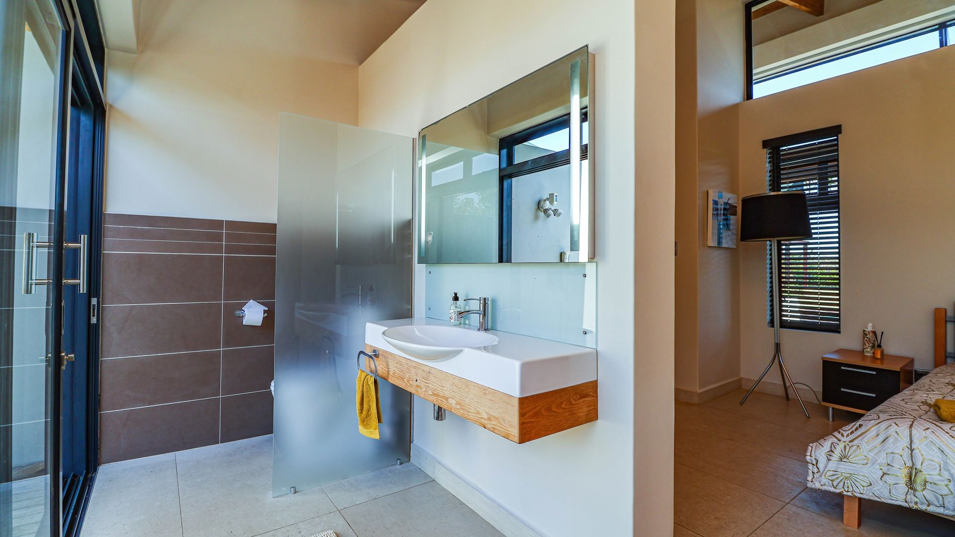 Every detail has been carefully chosen for comfort and convenience. Granite floor tiles with underfloor heating run throughout the house. Expansive windows draw in the northern sun, while motorized blinds offer effortless privacy at the touch of a button. The indigenous gardens are water-wise yet lush, supported by an automated irrigation system and advanced water infrastructure – from a borehole with full filtration to a large rainwater reservoir and reverse osmosis system inside the home.