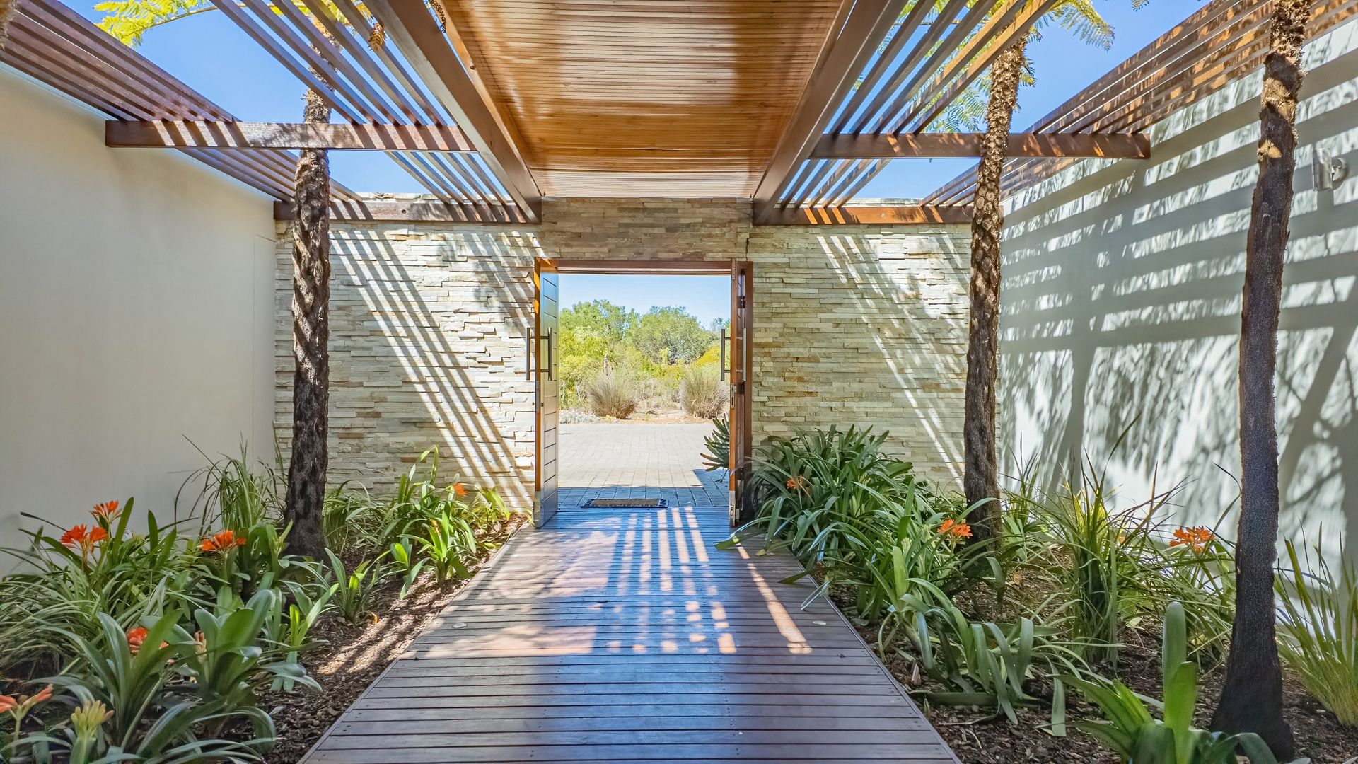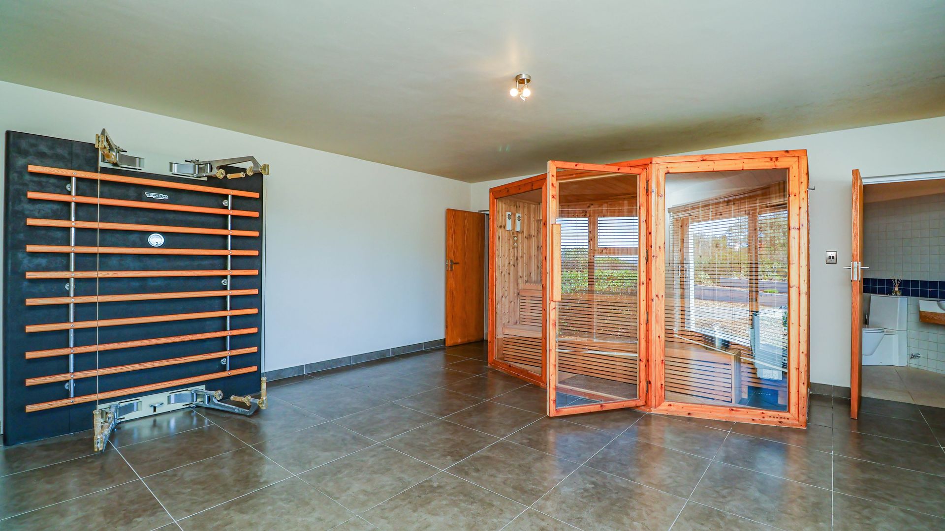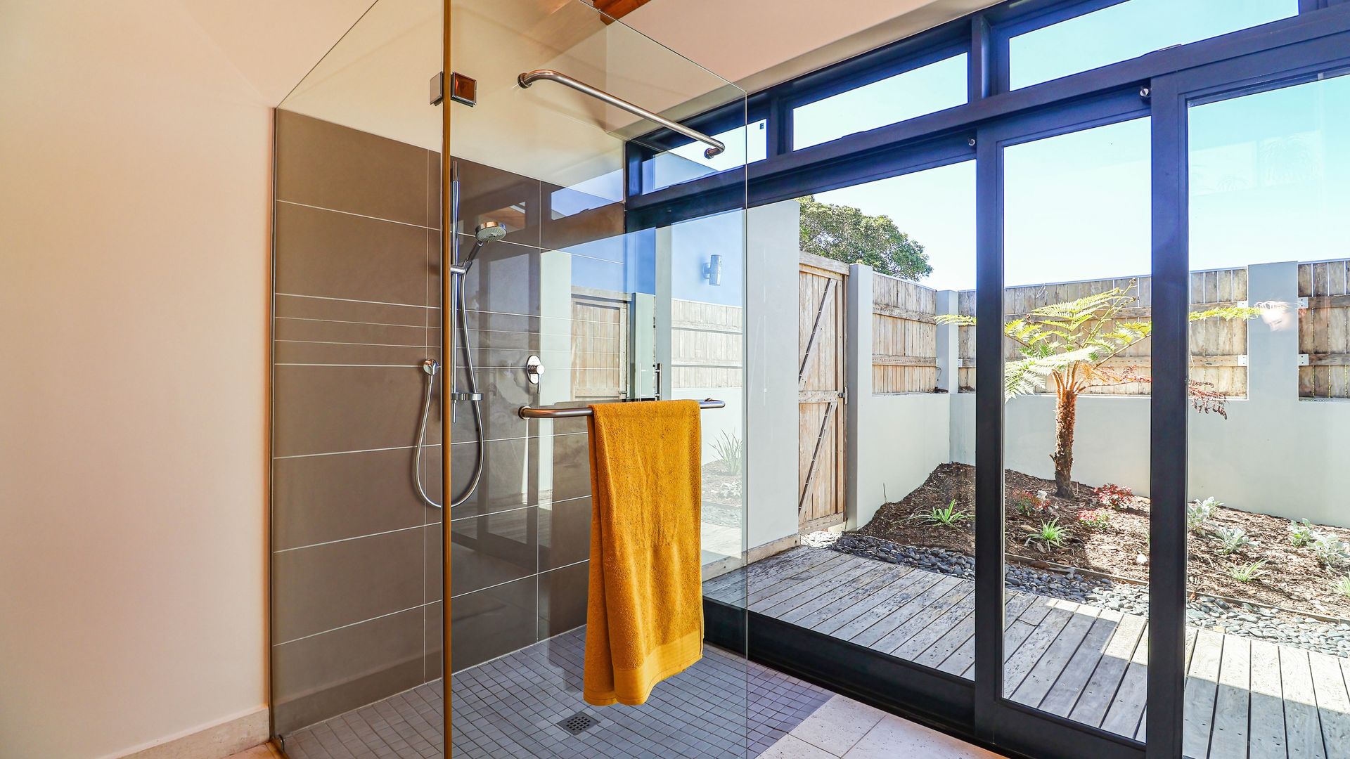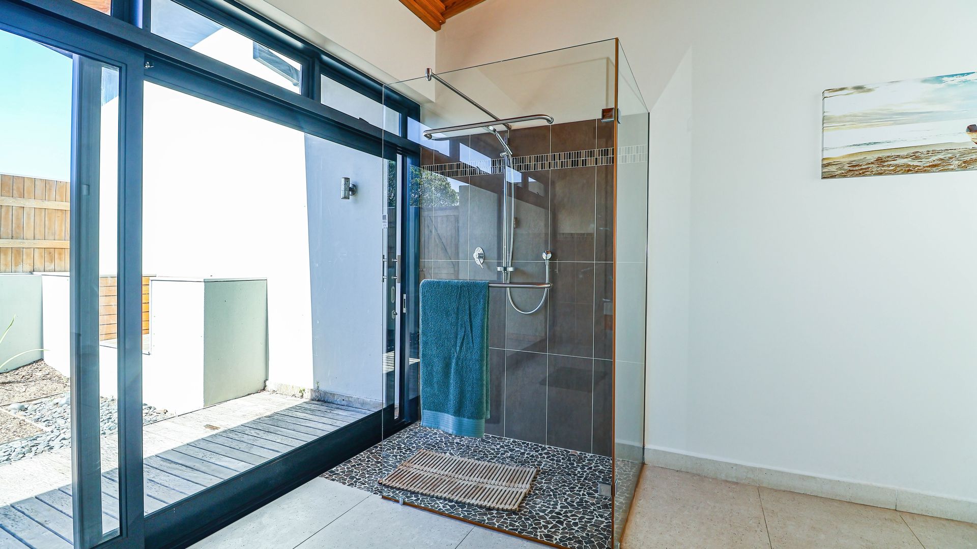 The house is thoughtfully divided into two wings. On the eastern side, you’ll find three en-suite bedrooms, each with its own private courtyard garden. The main suite is a sanctuary of its own, with a full bathroom, heated towel rails, sliding doors onto the courtyard, and even a secluded outdoor shower. Imagine mornings spent with the doors open, sunlight streaming in, and the scent of fynbos all around. A gym with sauna, its own bathroom, and direct garden access make wellness part of everyday living, while a nearby wine cellar keeps your collection at the perfect temperature. For plant lovers, a built-in greenhouse sits just off the main bedroom – an ideal space for orchids, exotics, or year-round greenery.