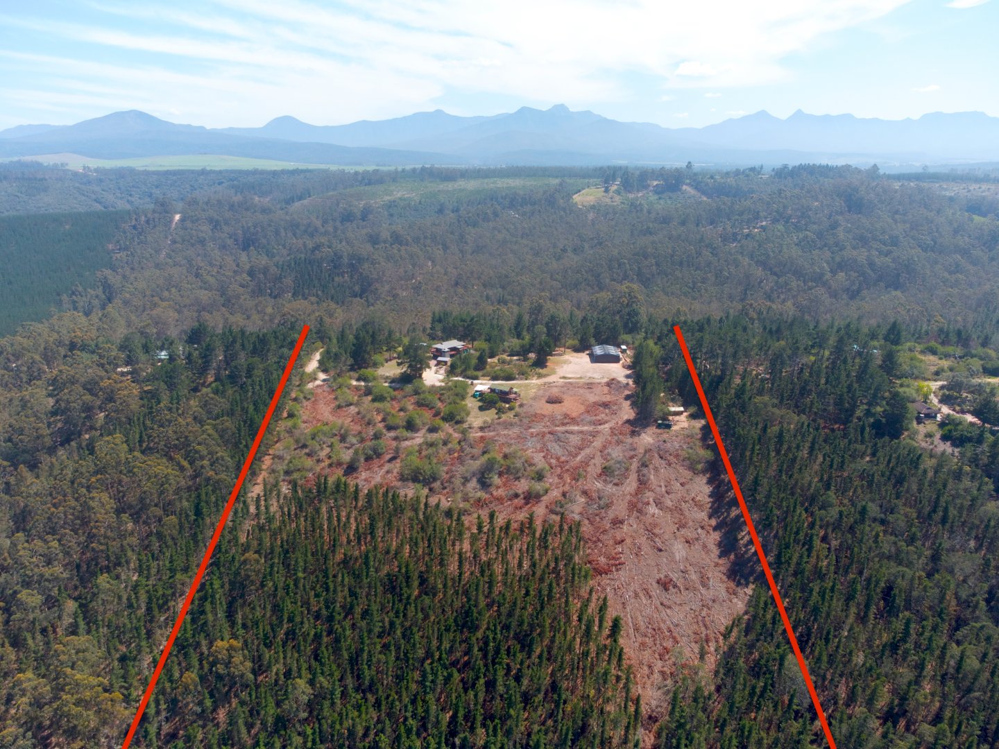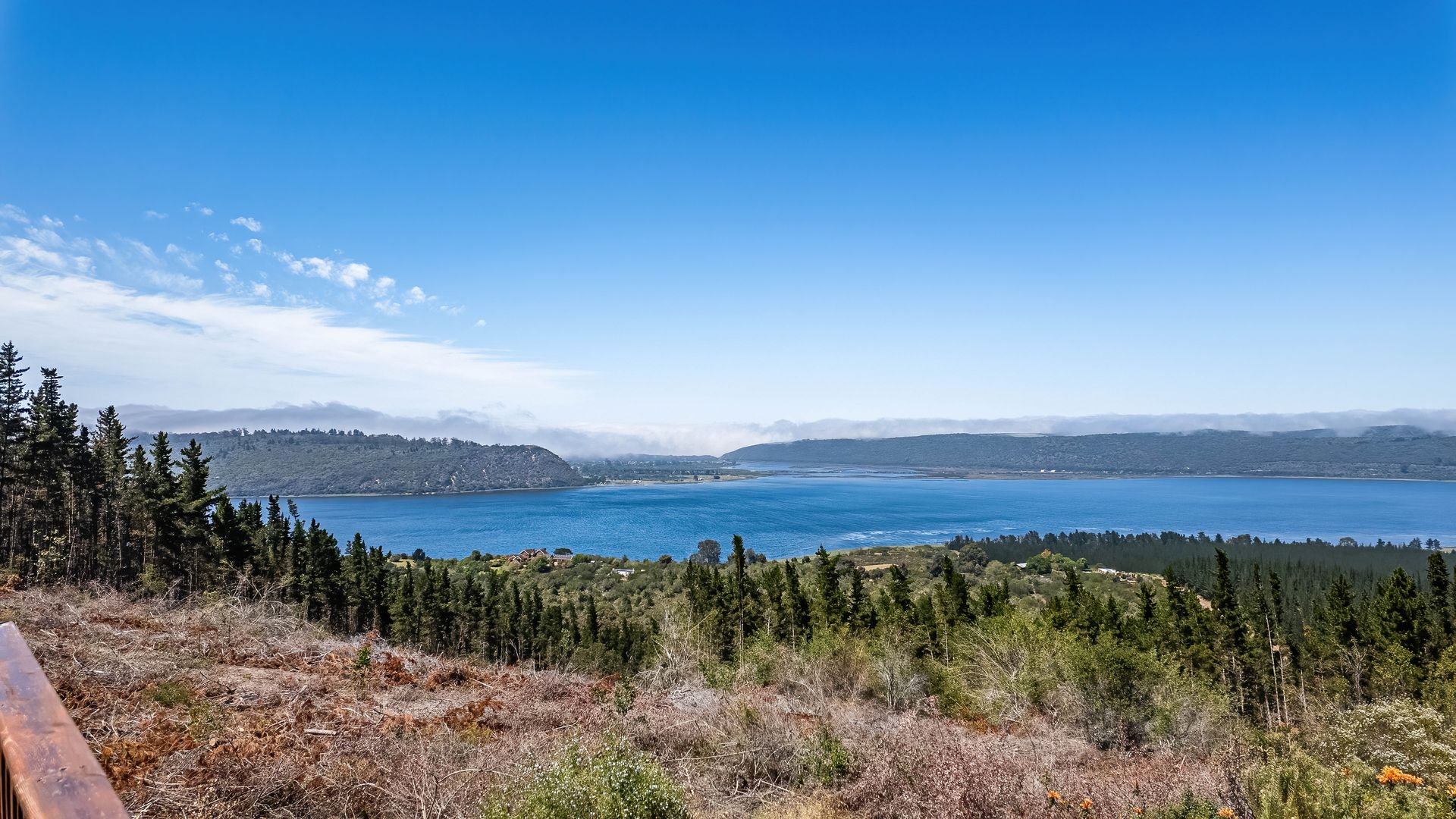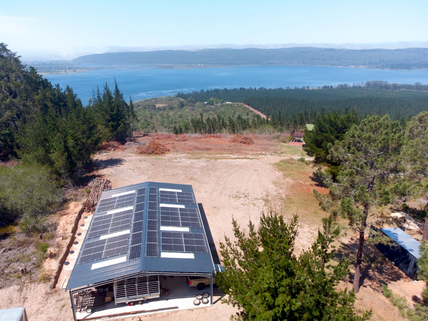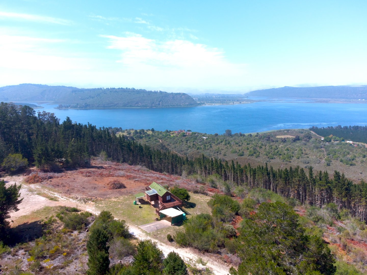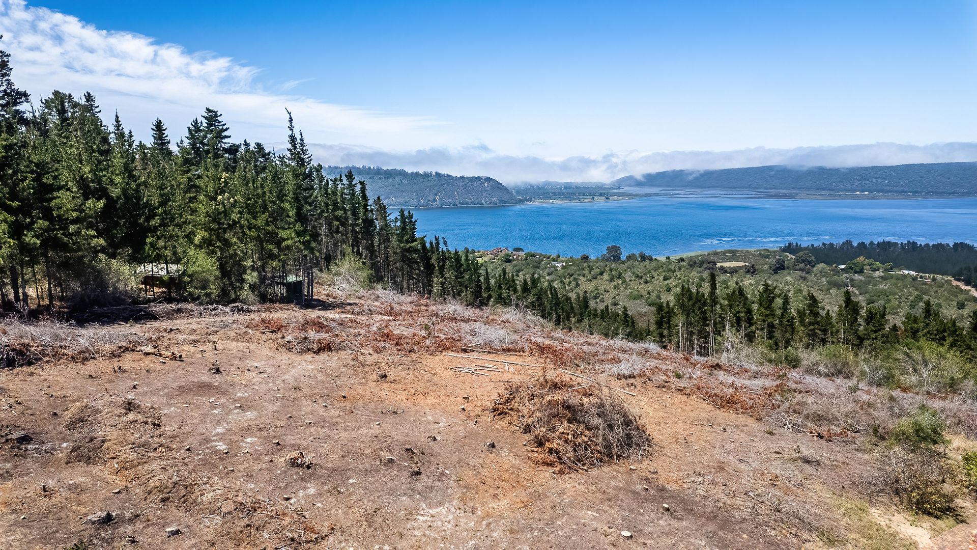 A large portion of the land has recently been cleared, further opening up the breathtaking views down the valley and across the water bodies below.
