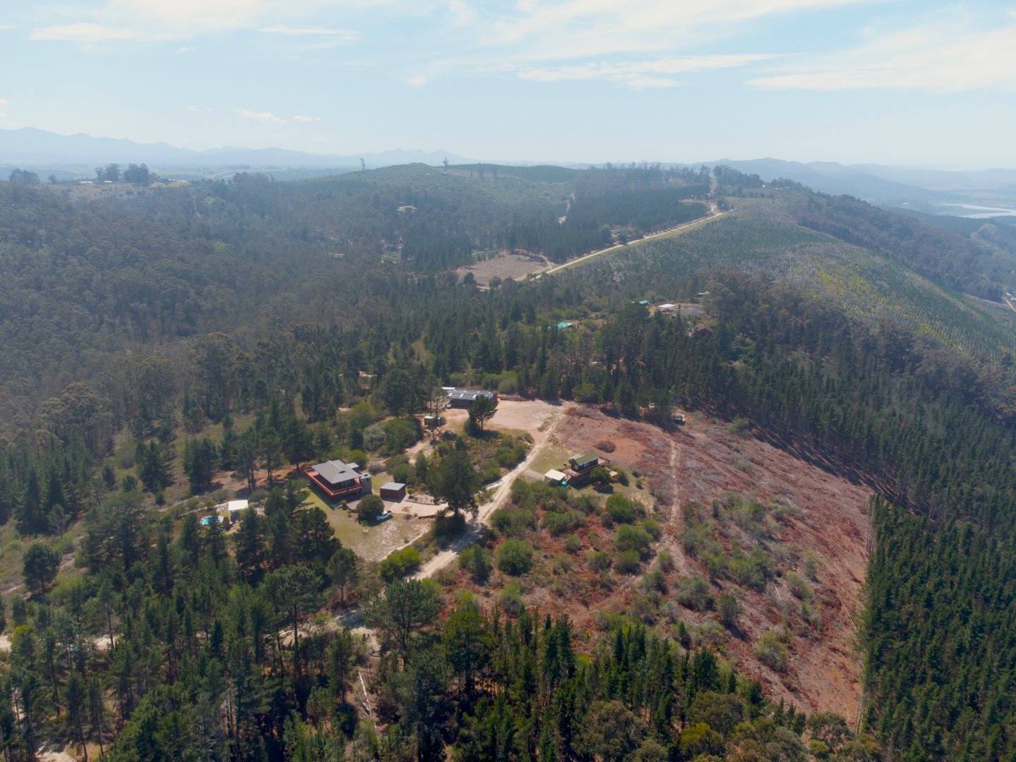Perfectly positioned between Sedgefield and Wilderness, this 10.9-hectare lifestyle property captures the very best of the Garden Route. Elevated high on a ridge in the sought-after Hoogekraal area, it overlooks the lake system, distant ocean and the majestic Outeniqua mountain range. By night, enjoy a magical panorama of twinkling lights stretching from Sedgefield to Mossel Bay — a rare and enchanting outlook.