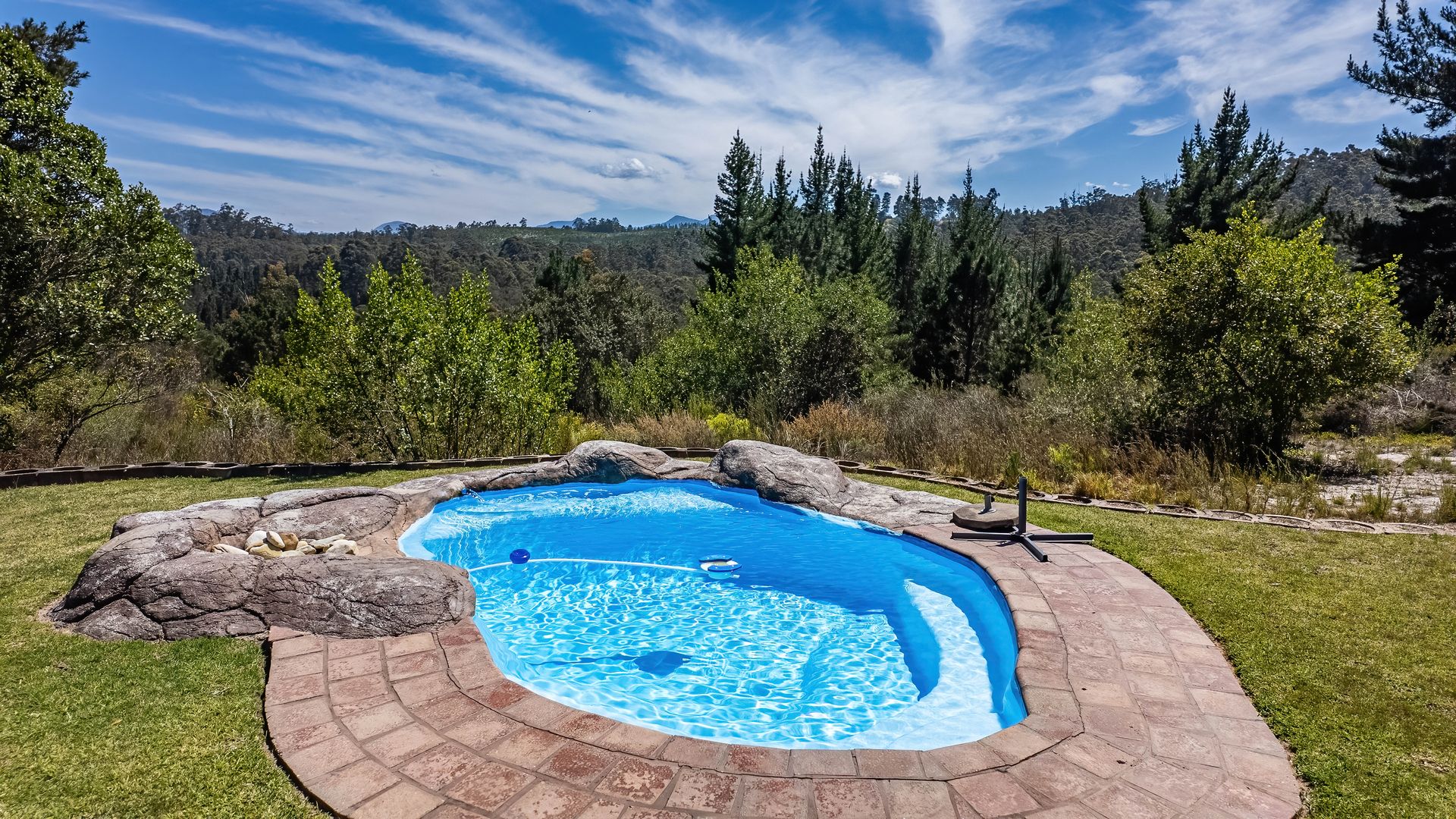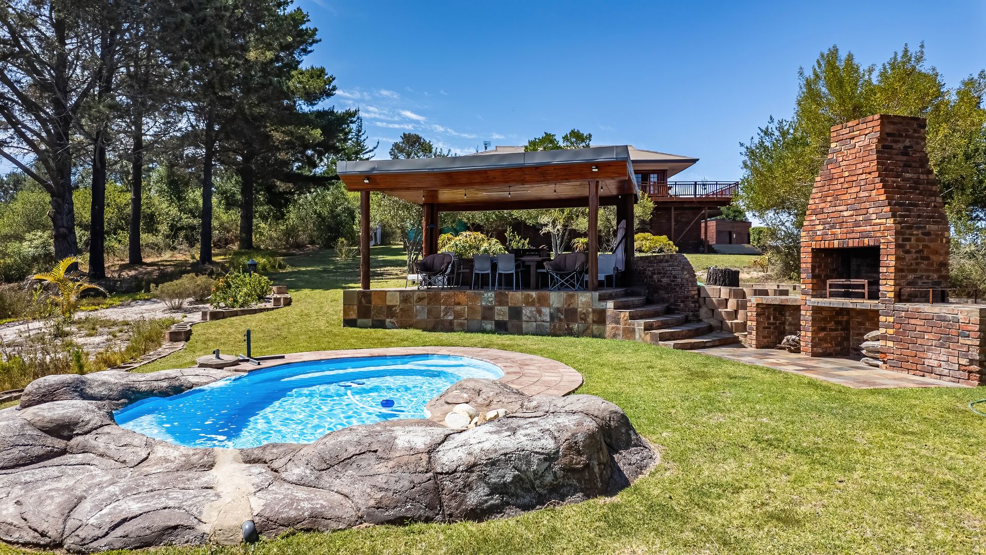 Swimming pool with lapa braai area overlooking the mountains
