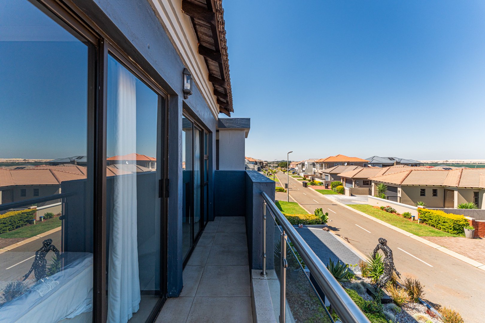 Secure parking is provided by two automated double garages, complemented by four additional guest parking bays. The home showcases premium modern finishes, eco-conscious design elements, and is situated within a highly secure, load-shedding-exempt estate — offering peace of mind and uninterrupted comfort.