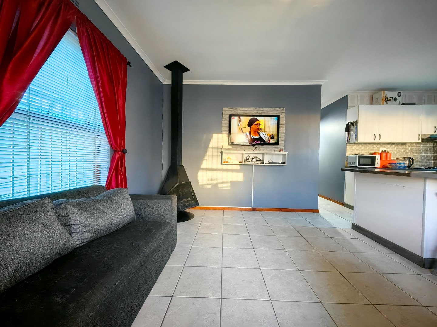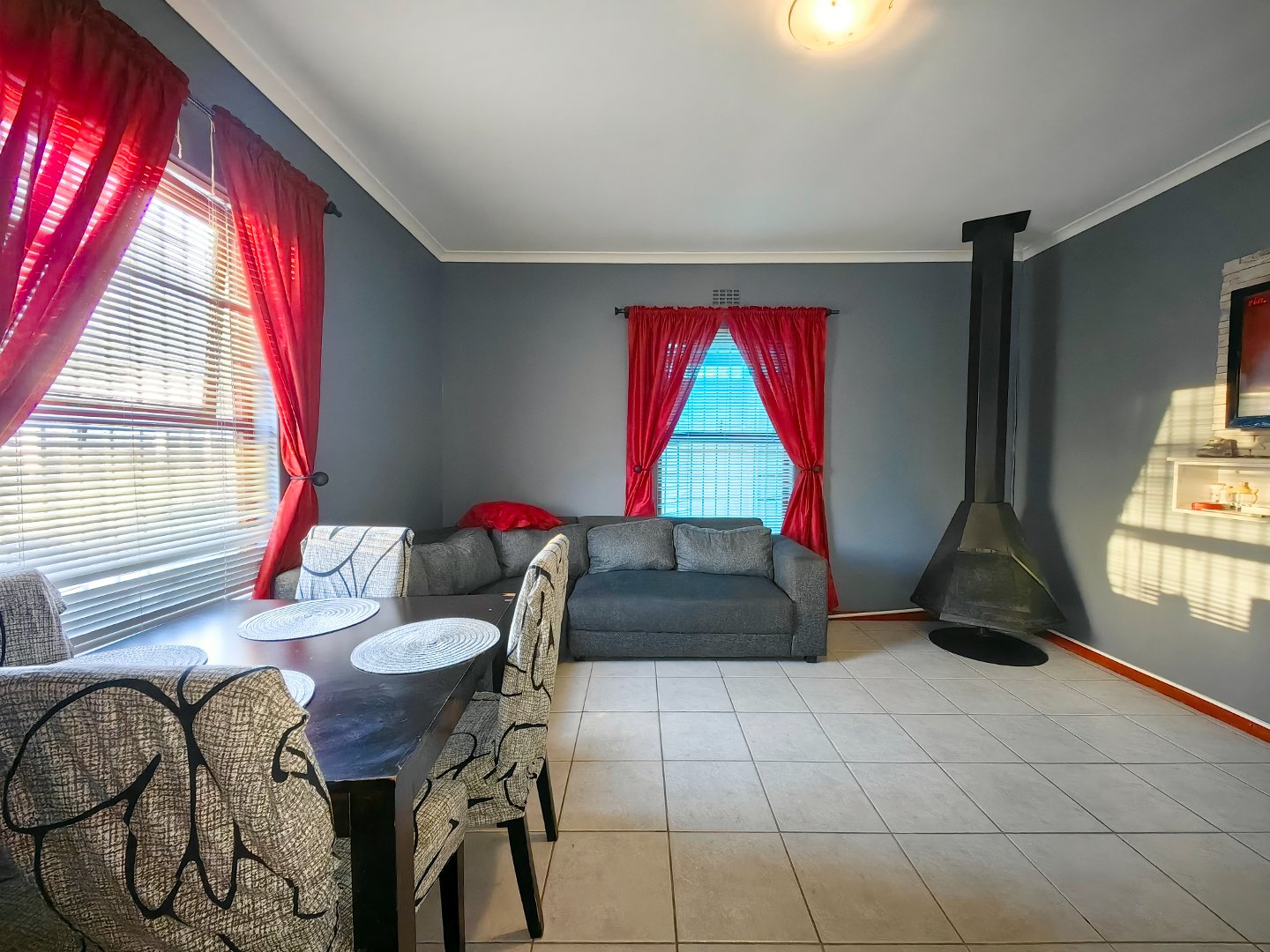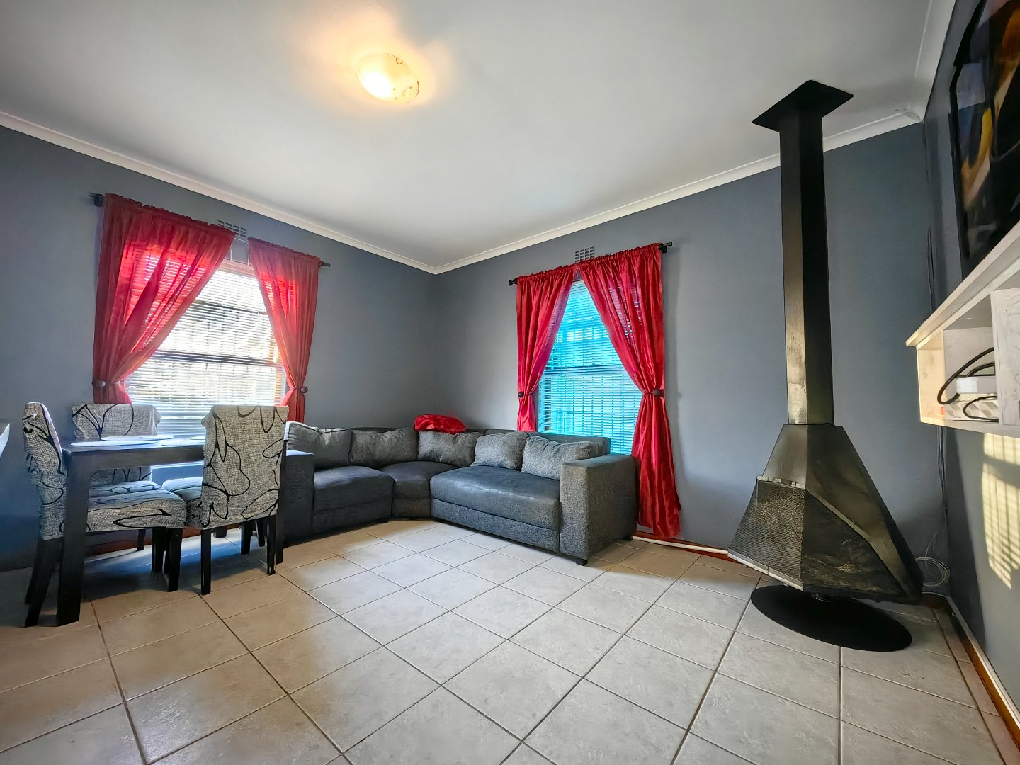- Spacious tiled lounge with fireplace