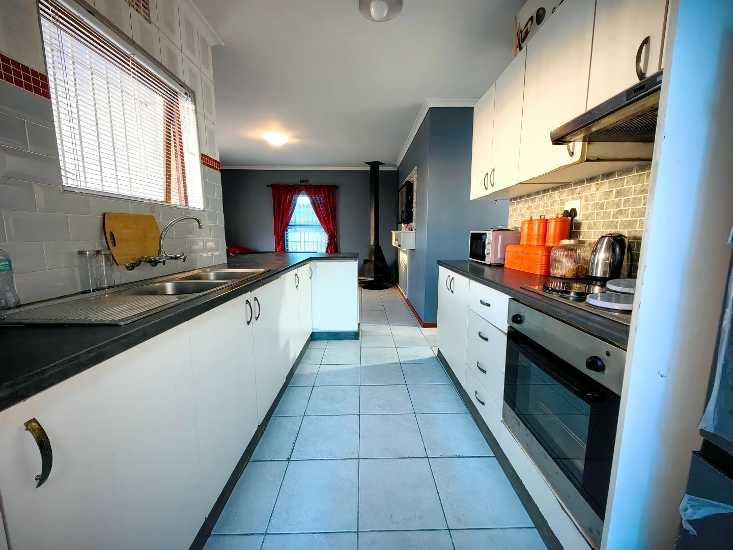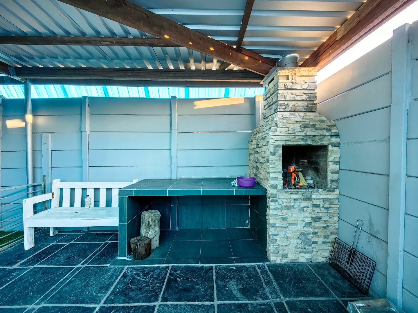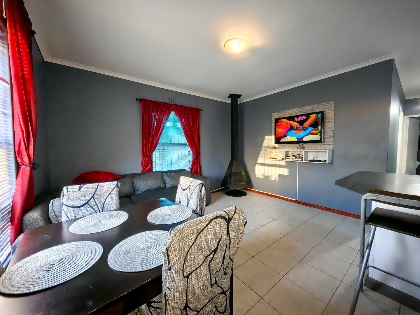 - Spacious tiled lounge with fireplace