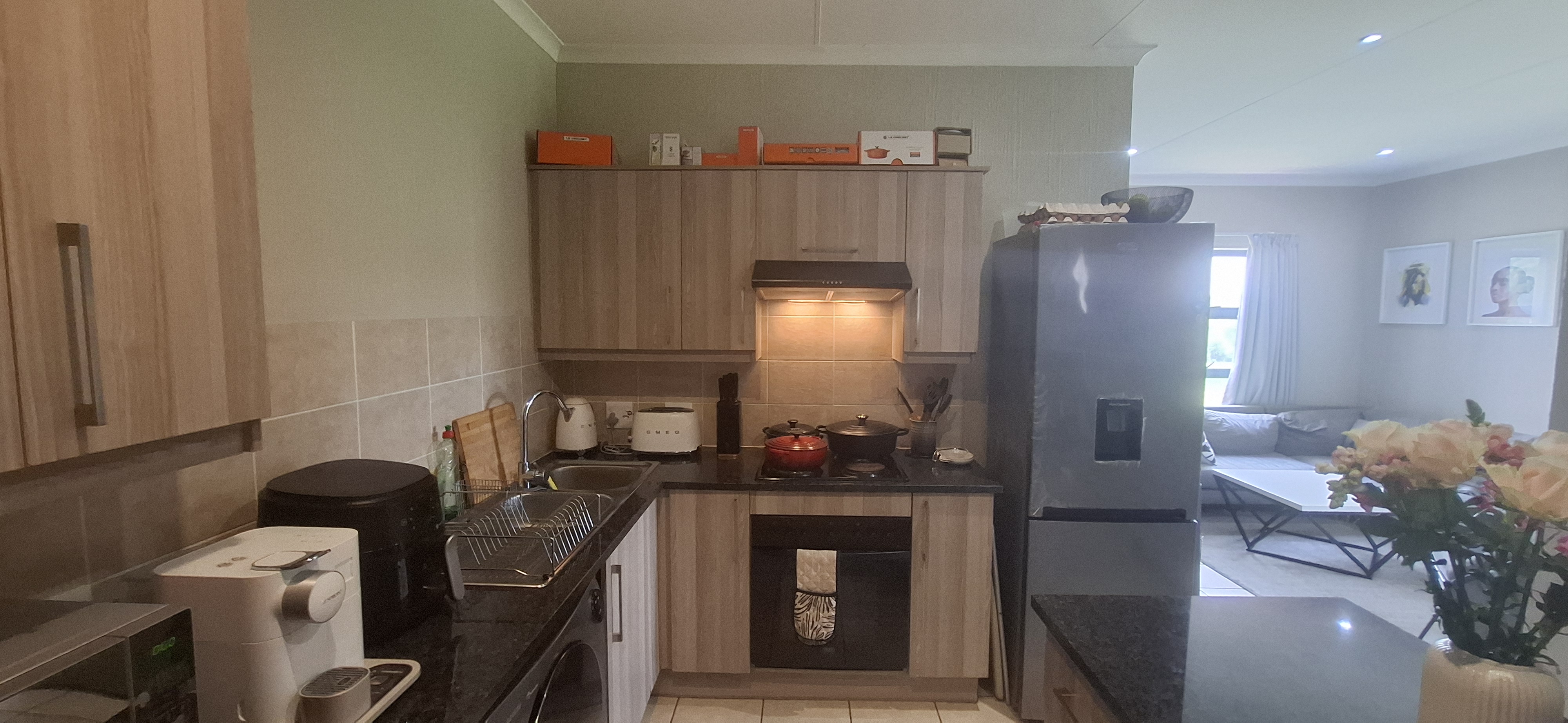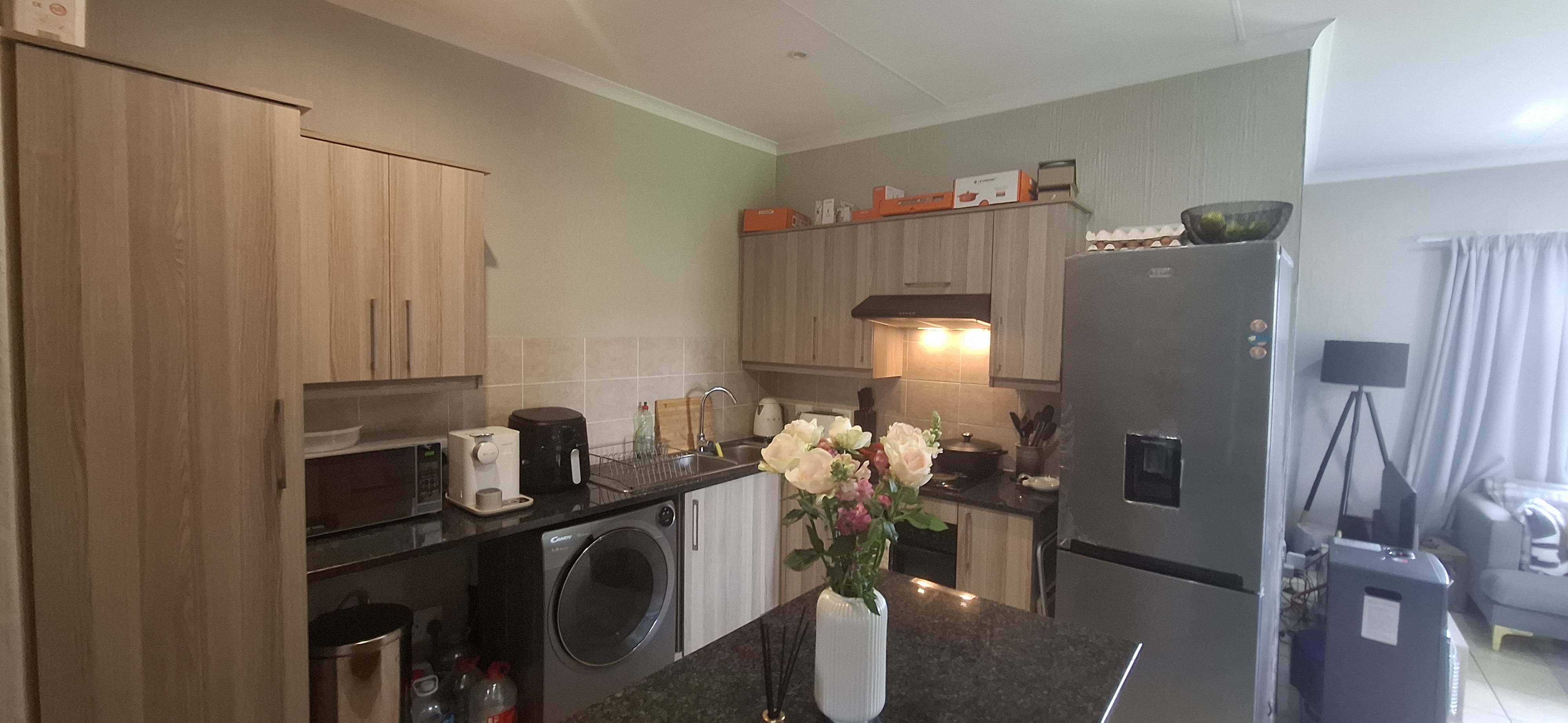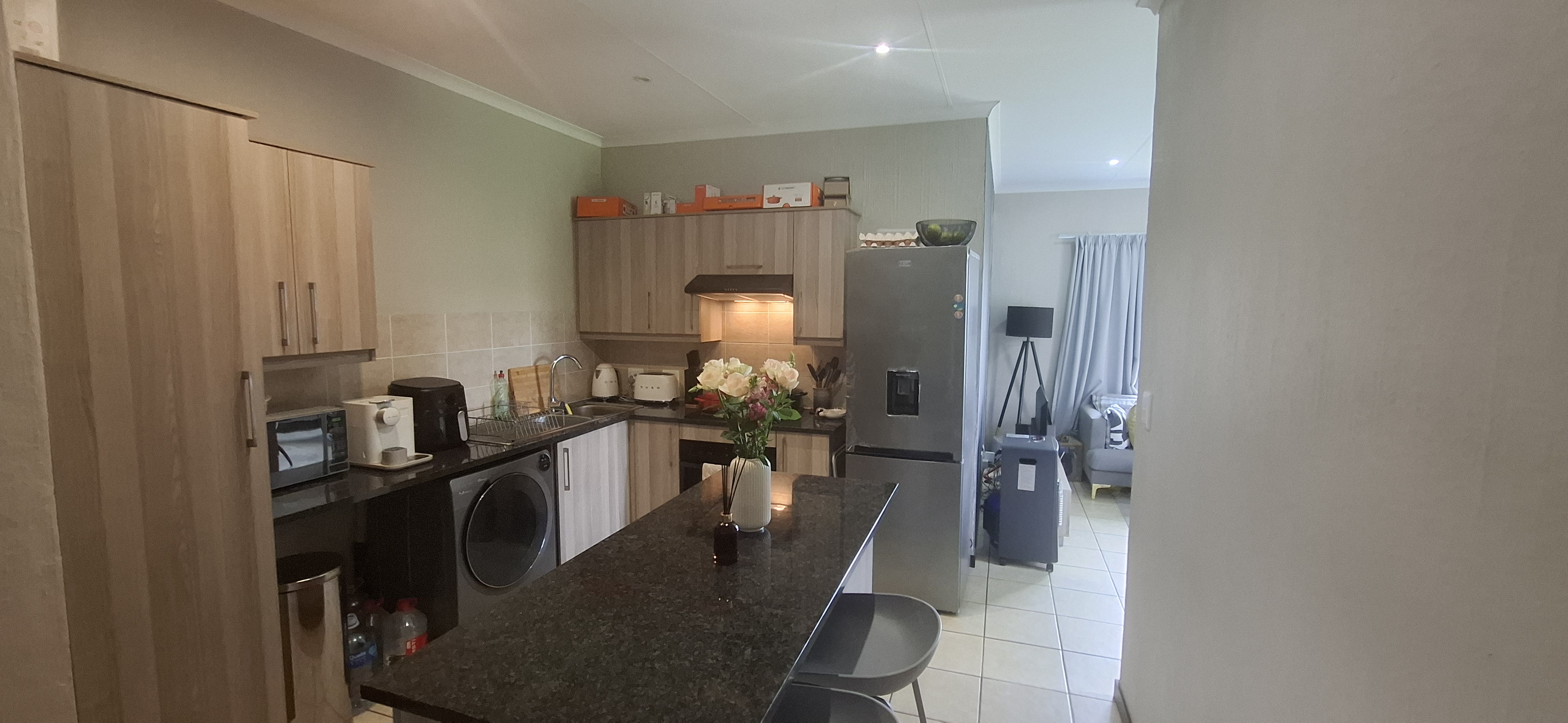 Discover modern living at its best in this stylish top-floor apartment, perfectly designed for comfort and convenience. The open-plan living area flows seamlessly into a contemporary kitchen, featuring granite countertops and a centre island—ideal for cooking and entertaining. This apartment offers two well-sized bedrooms and a full bathroom, making it a great choice for first-time buyers, a small family, or investors. Worried about loadshedding? No need! This unit is equipped with a 3.5KVA inverter system, ensuring uninterrupted power when you need it most. Additional features include: Prepaid electricity and a water meter 24-hour security One carport with ample visitors’ parking Close to major amenities and schools Don’t delay—call us today to arrange your viewing!