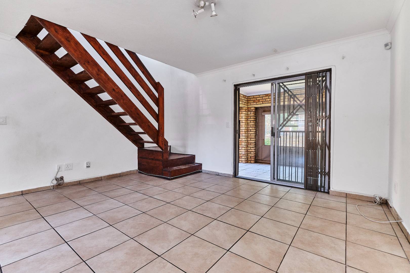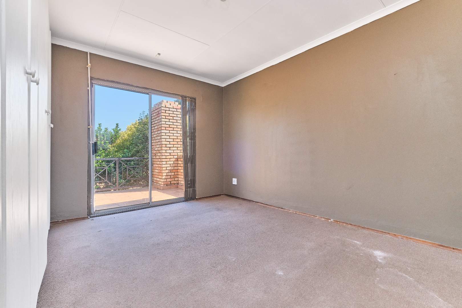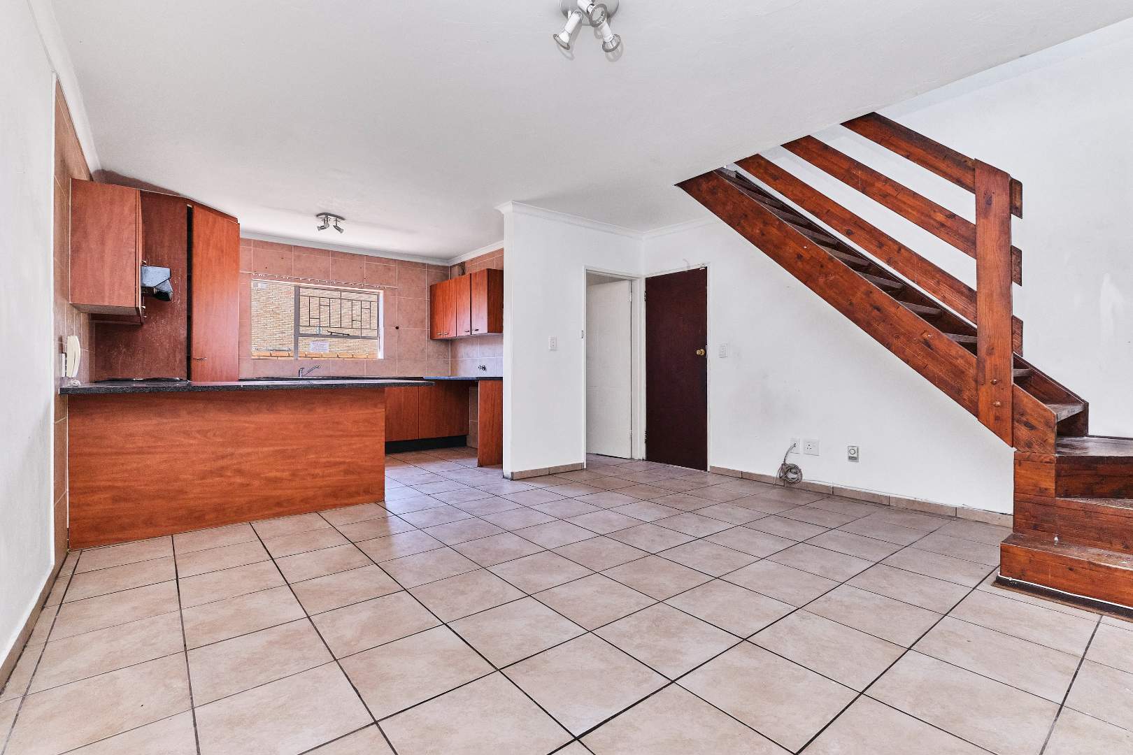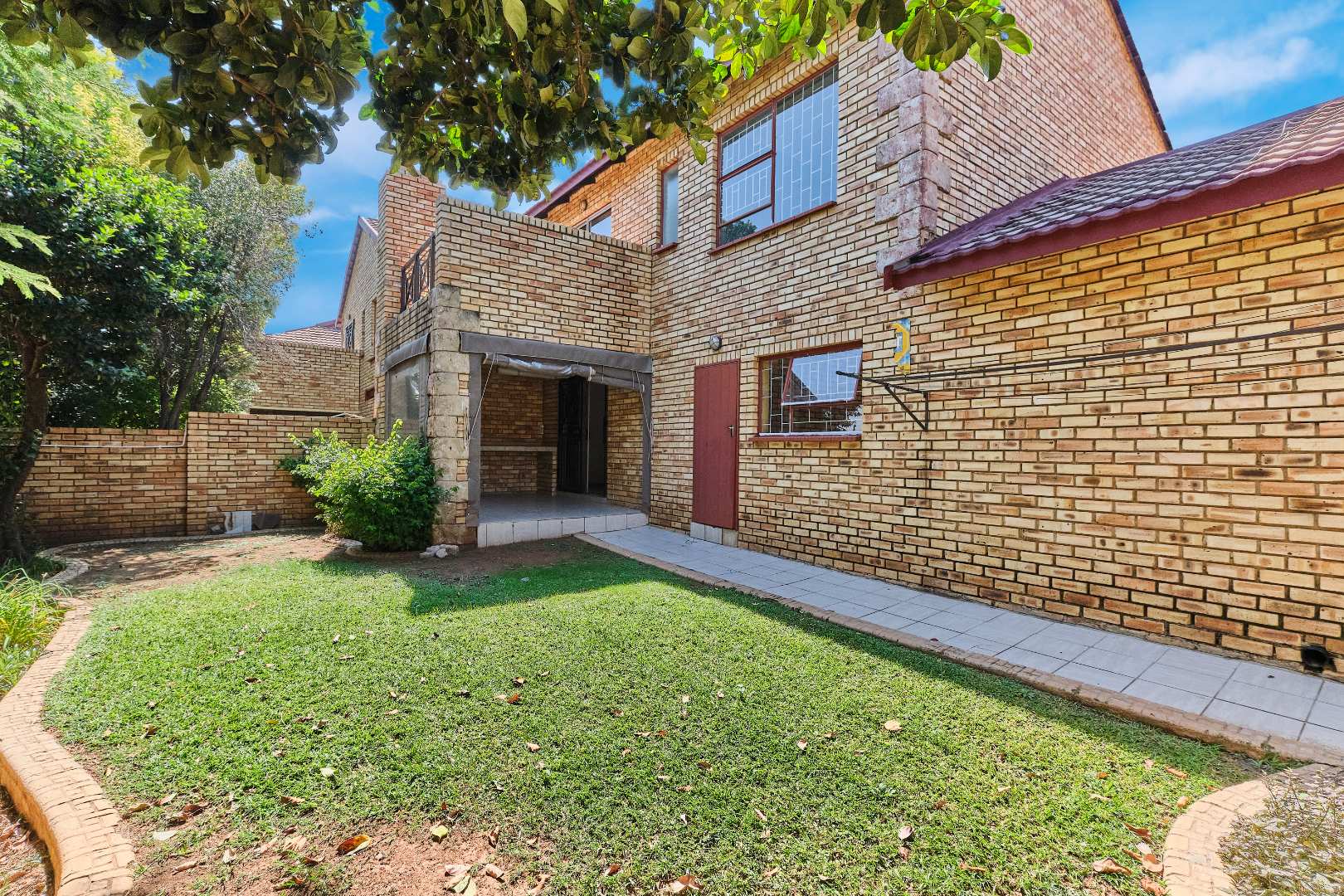 Downstairs, you will find a guest toilet, an open-plan lounge, and a kitchen (with plenty of cupboards) leading out to a patio (with a braai area) facing a well-maintained garden.