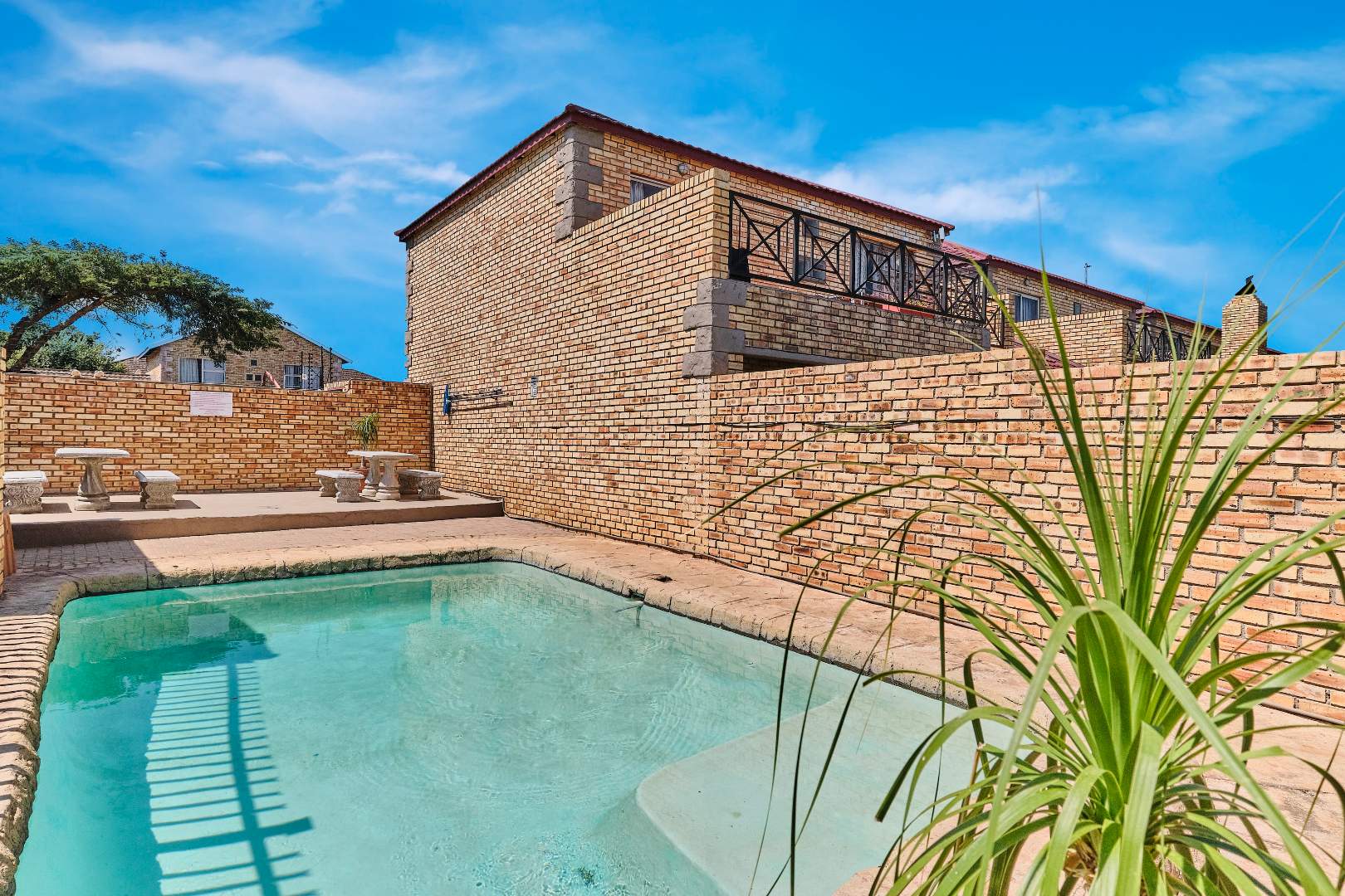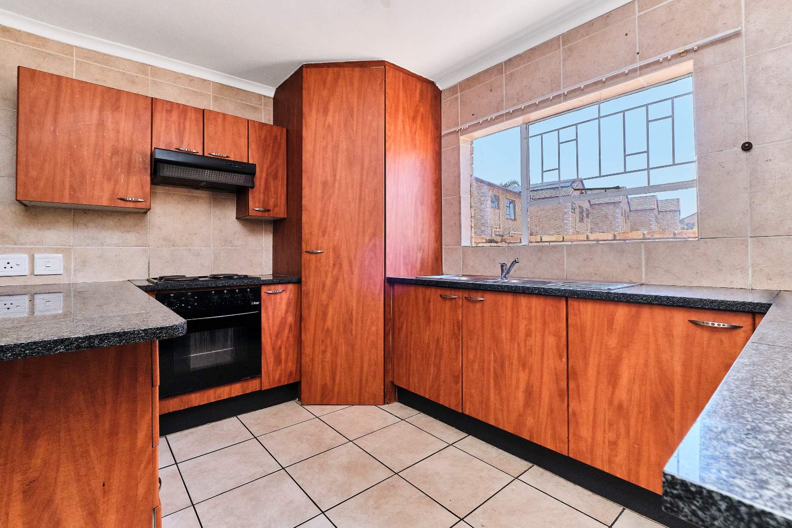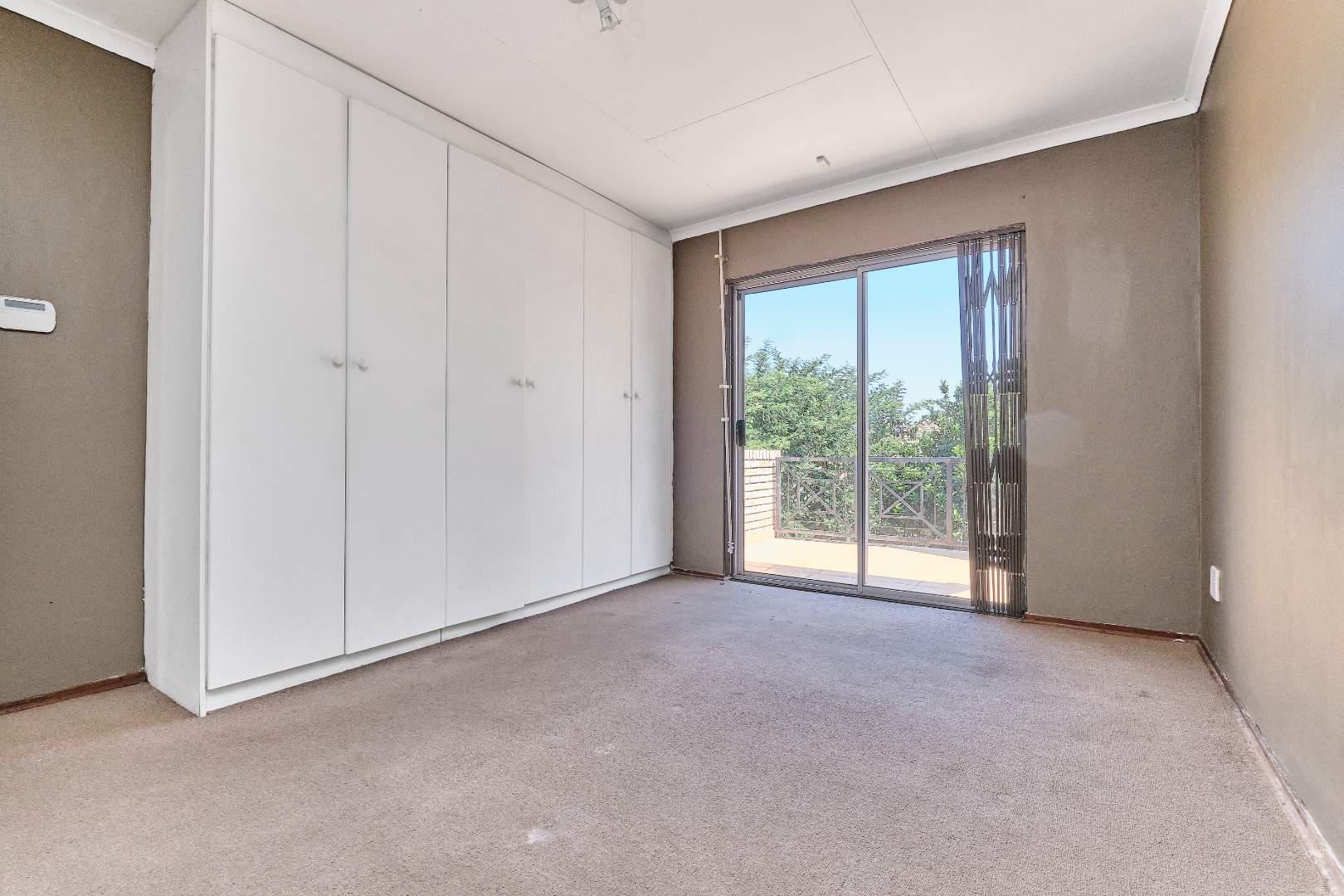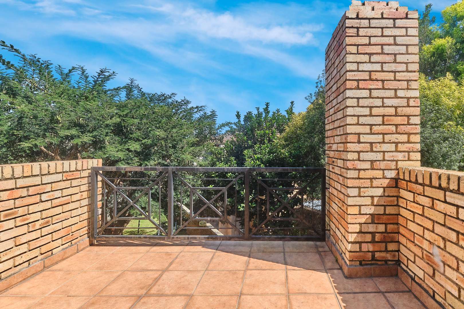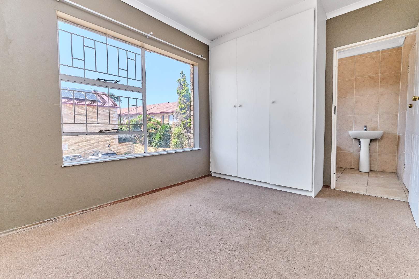 Downstairs, you will find a guest toilet, an open-plan lounge, and a kitchen (with plenty of cupboards) leading out to a patio (with a braai area) facing a well-maintained garden.