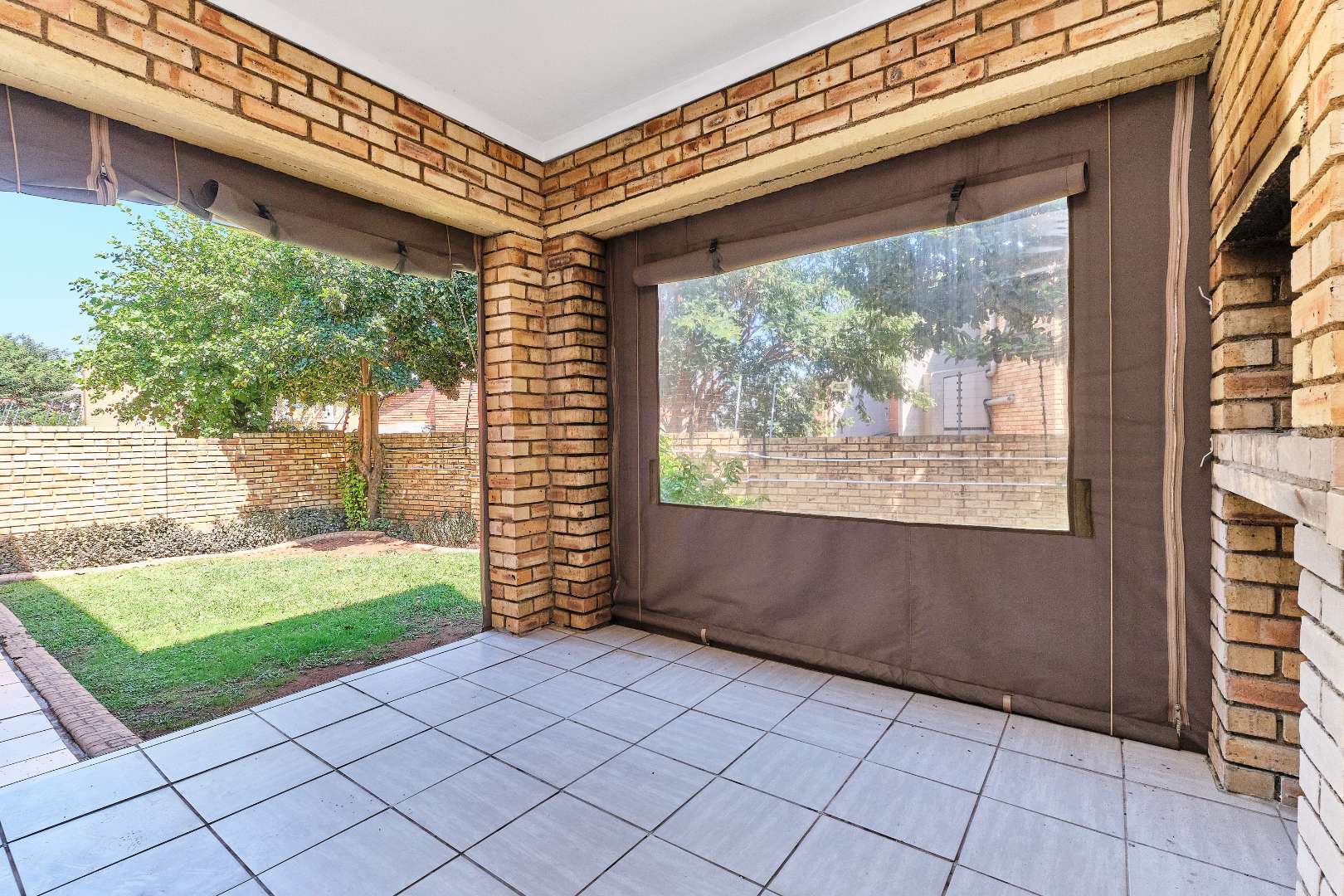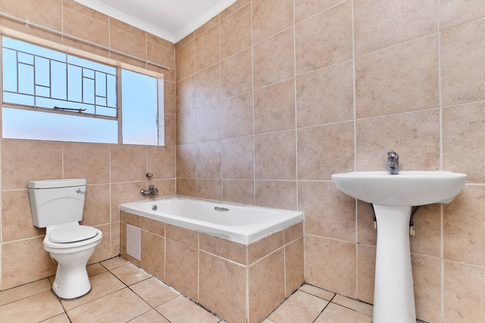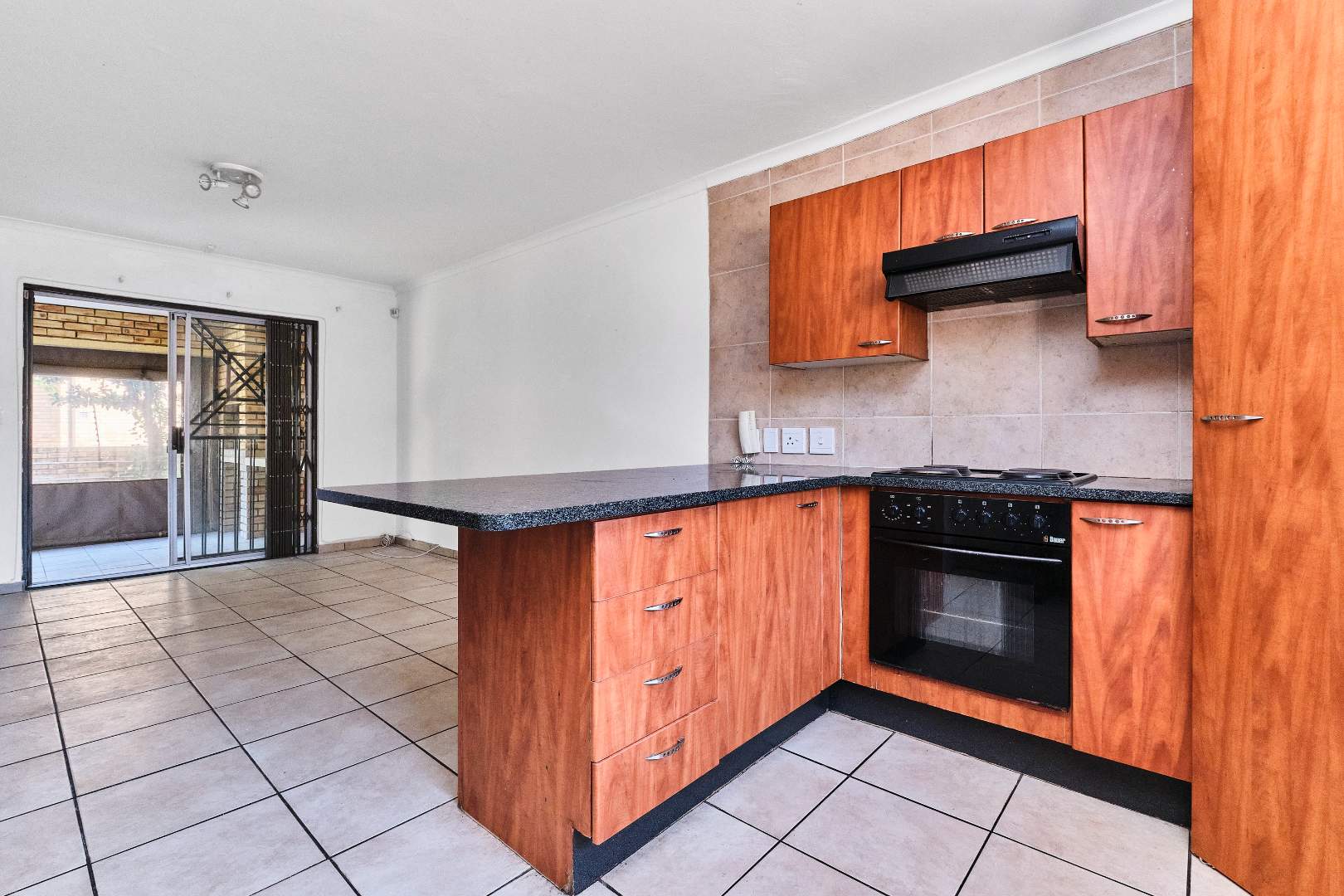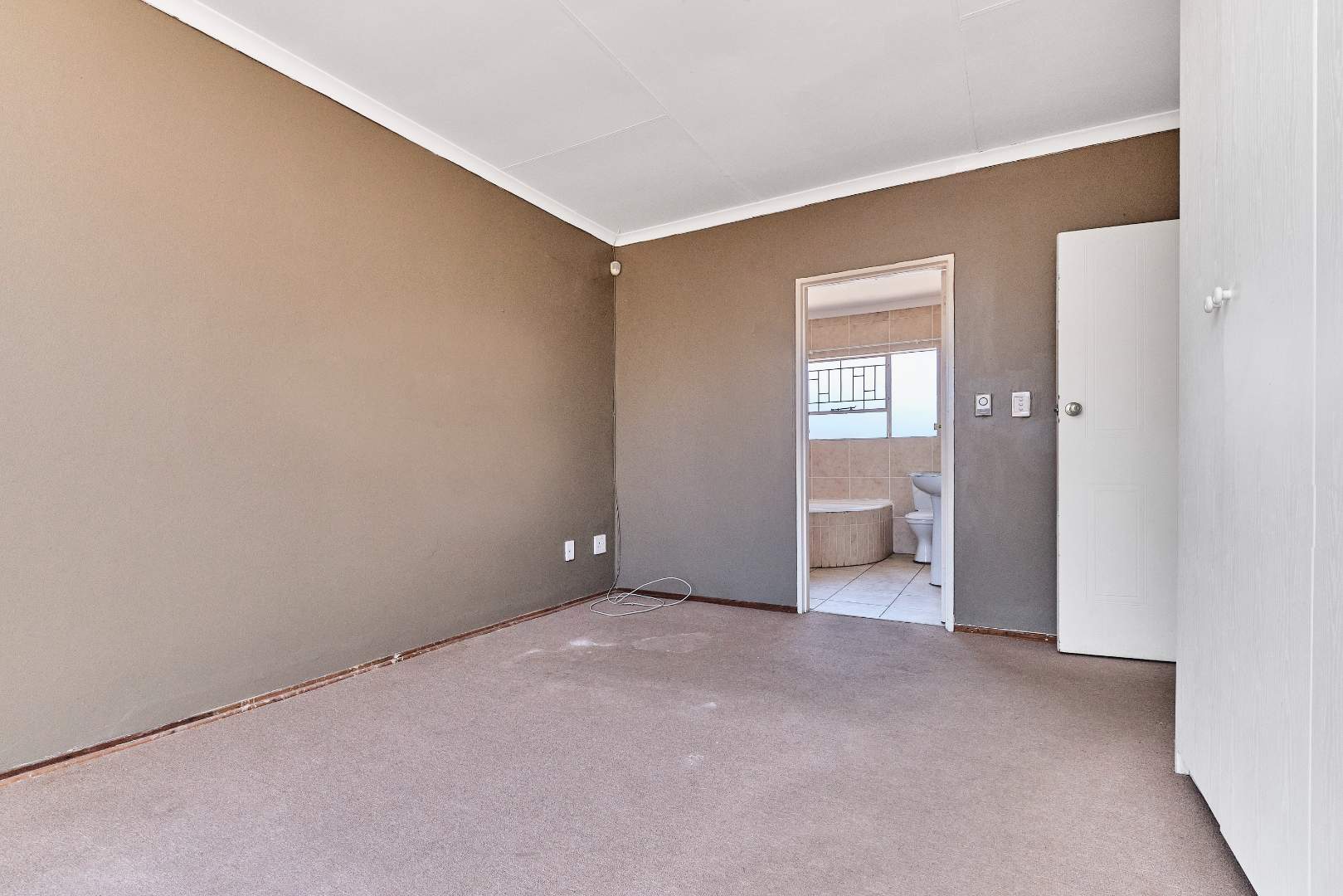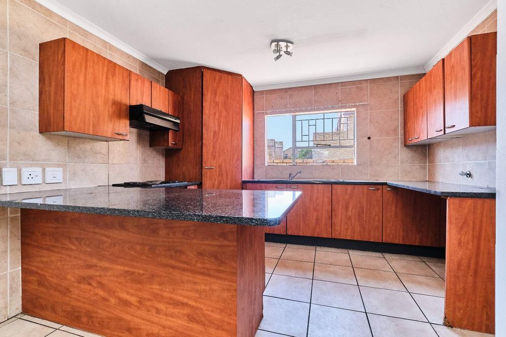 Downstairs, you will find a guest toilet, an open-plan lounge, and a kitchen (with plenty of cupboards) leading out to a patio (with a braai area) facing a well-maintained garden.