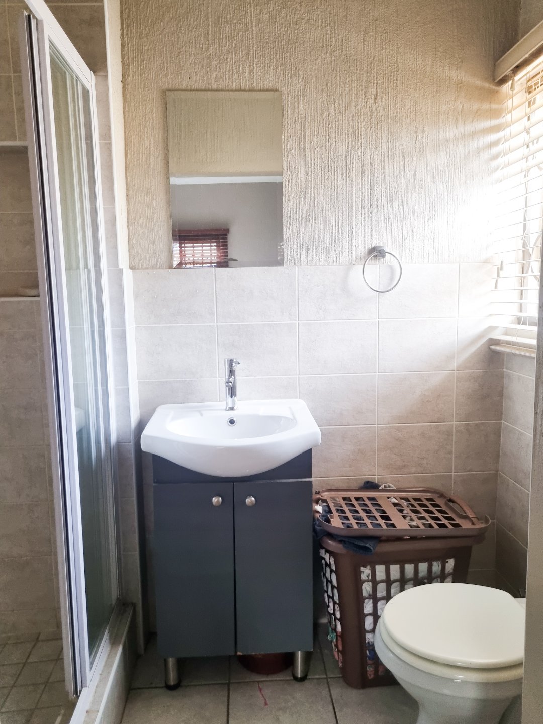 The main bedroom is an en-suite bathroom with a shower, basin and toilet