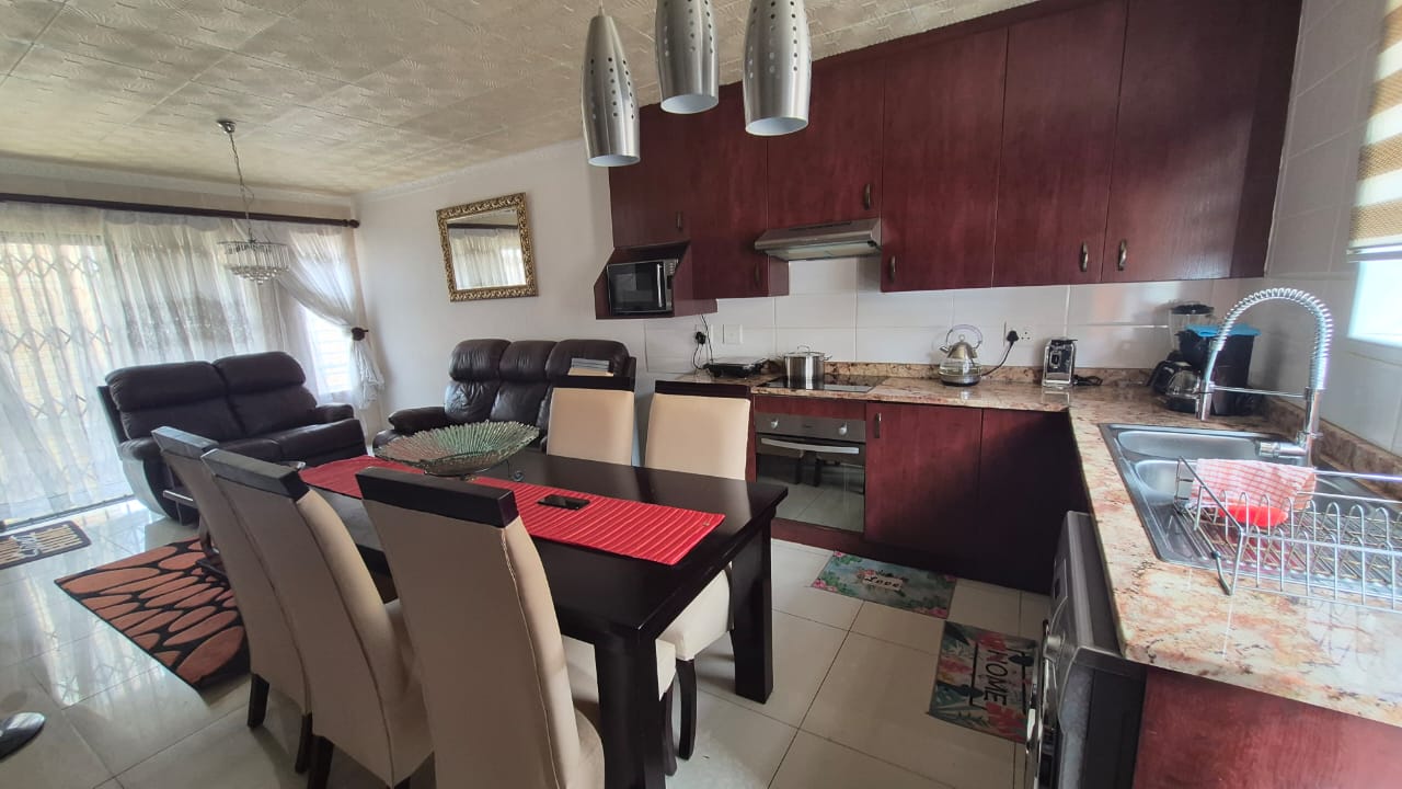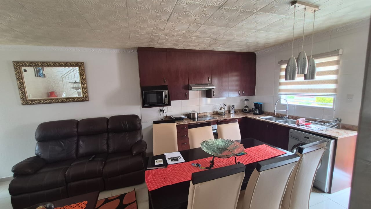 This charming corner-unit townhouse offers space, comfort, and modern finishes in a secure, well-maintained complex. The home features a modern granite-top kitchen with porcelain tiles, fitted built-in cupboards, a pantry cupboard, and a glass-top stove with an extractor fan. The open-plan lounge flows seamlessly through a sliding door to a private, pet-friendly wrap-around garden (1 small dog permitted), ideal for relaxing or entertaining.