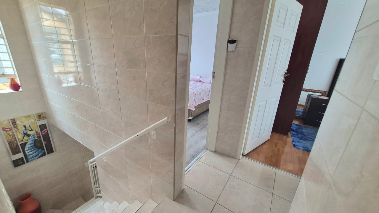 A guest toilet is conveniently located downstairs. Upstairs you’ll find three well-sized bedrooms and two bathrooms. The main bedroom is exceptionally spacious, easily accommodating a king-size bed, and offers ample cupboard space with an en-suite bathroom. The townhouse is beautifully tiled throughout and includes a fully tiled double automated garage with fitted built-in cupboards. The garage provides direct access to the private garden, which is serviced weekly. The unit is fibre-ready and offers excellent security.
