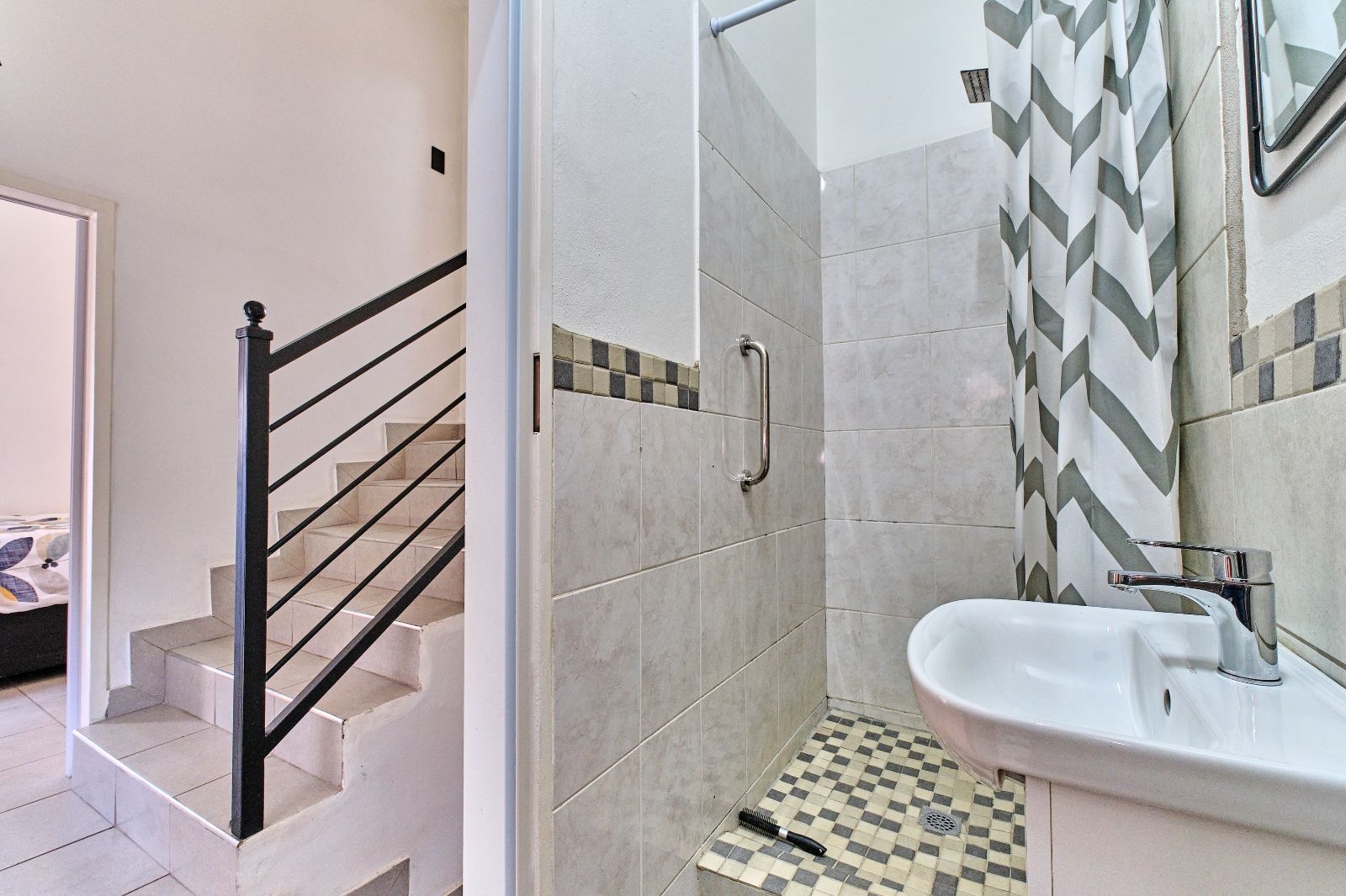 2 Bathrooms - Downstairs guest bathroom with a shower, basin, and toilet; upstairs bathroom on suite with a bath, basin, and toilet