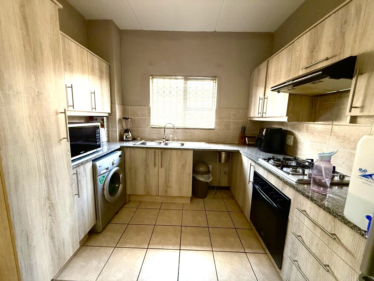 This home is ground floor with a spacious garden. The home features a modern kitchen with ample cupboards. The open lounge area flows to a covered patio with a built in hanging washing line, the covered patio leading to a beautiful garden-ideal for children to play.