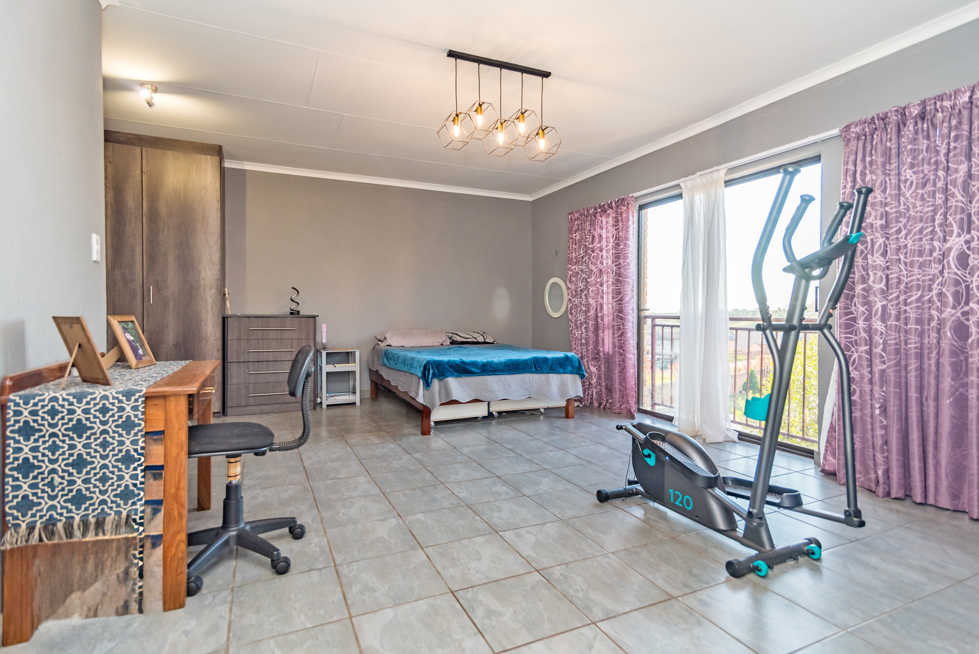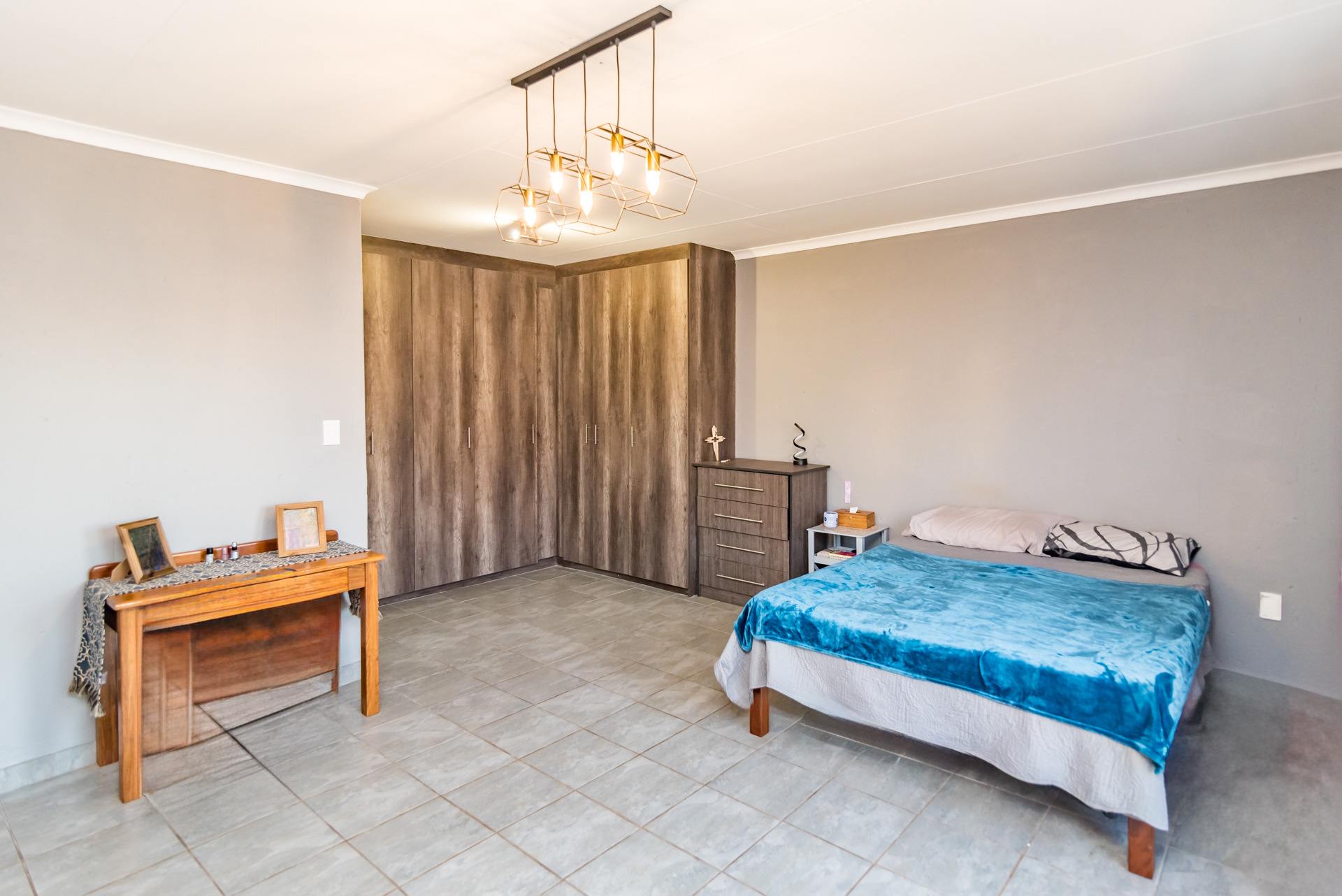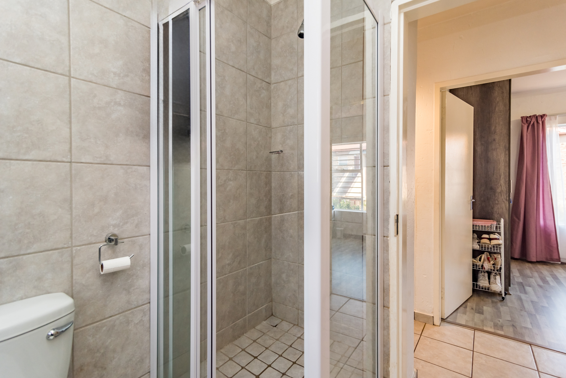 Upstairs, you’ll discover the impressive main bedroom. This carpeted space is truly your sanctuary. Its generous size is complemented by loads of built-in cupboards and a sliding door that opens to a charming Juliet balcony. The en-suite bathroom showcases a spacious shower with a luxurious rain shower head.