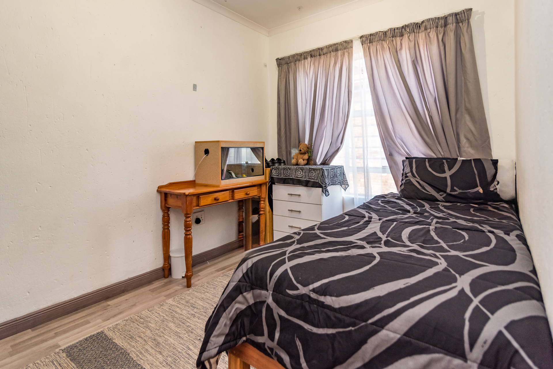 The two additional bedrooms are very cosy and offer carpets and built-in cupboards. These rooms are serviced by a modern full bathroom.