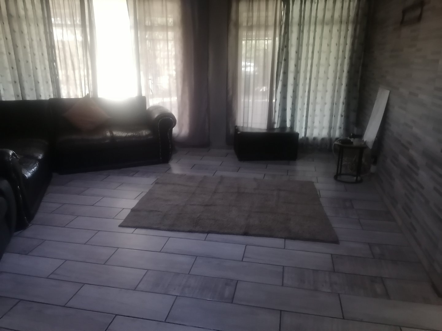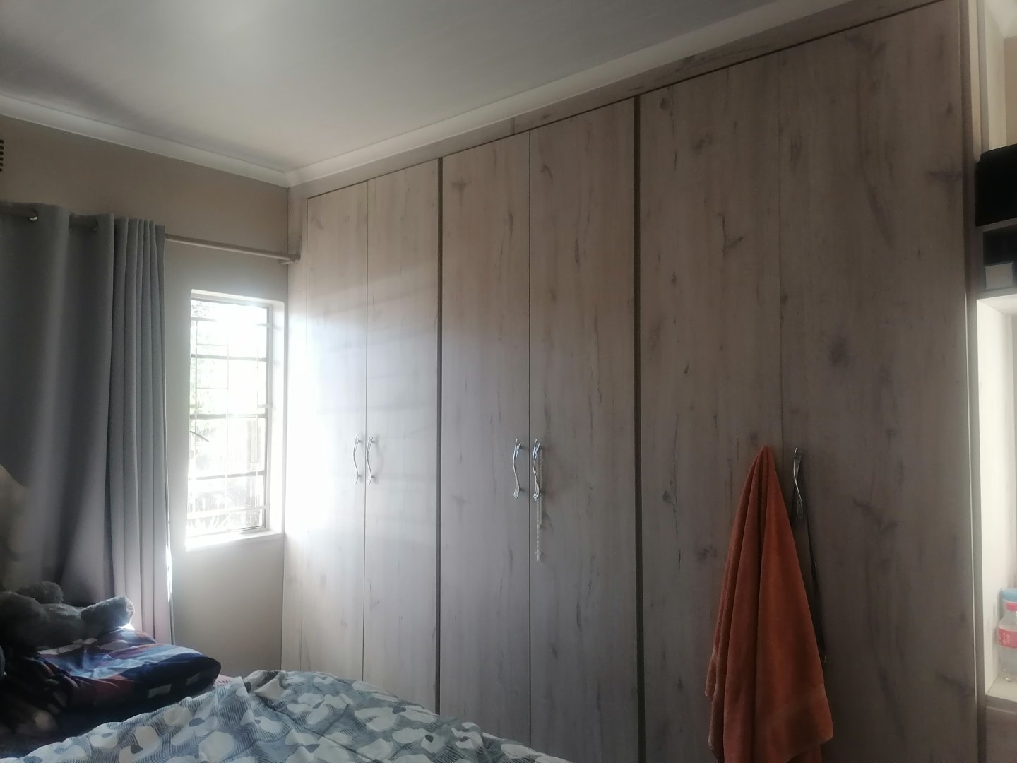 ??? 3 Bedrooms with built-in cupboards, tiled floors, and curtain rails.