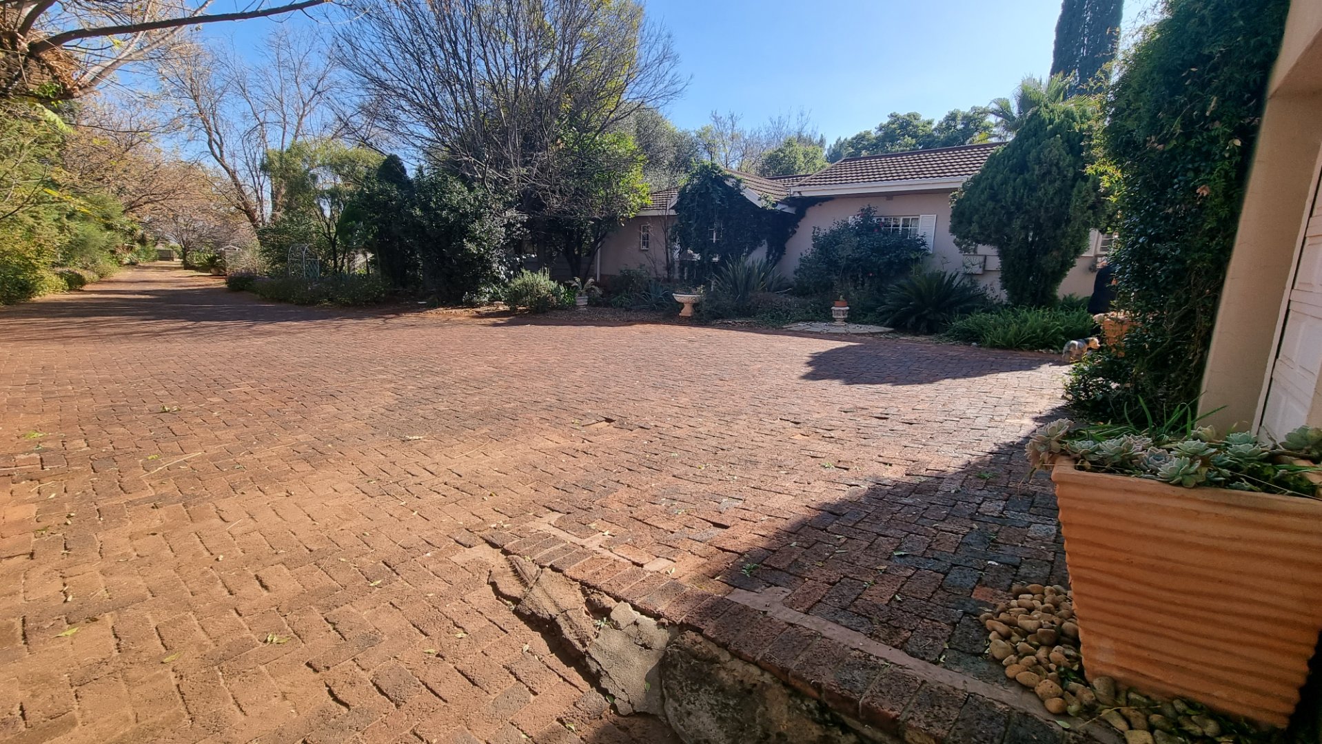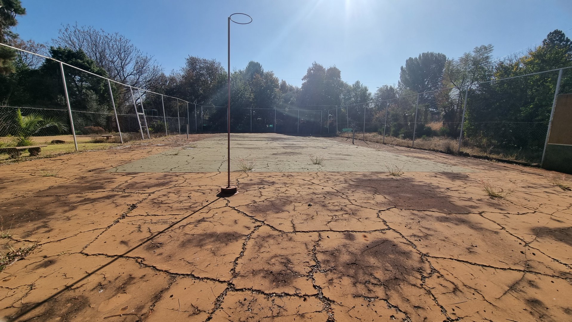 - Tennis court that needs refurbishment.